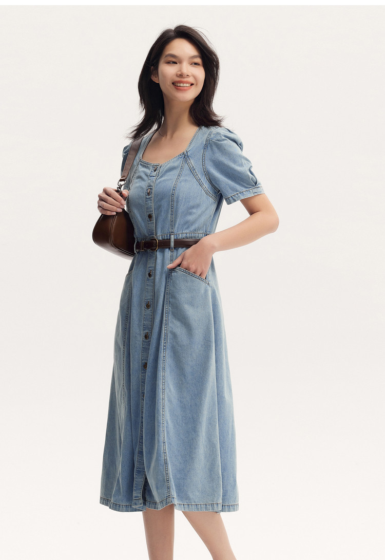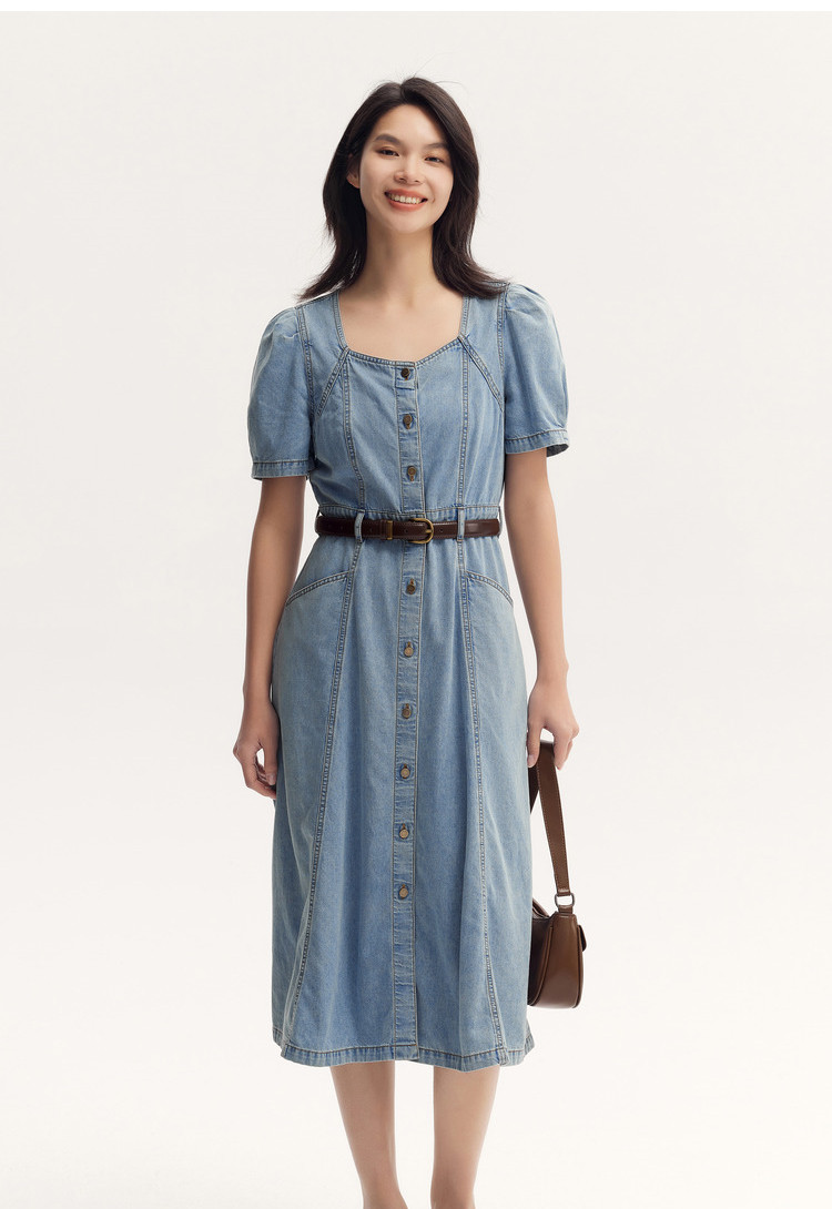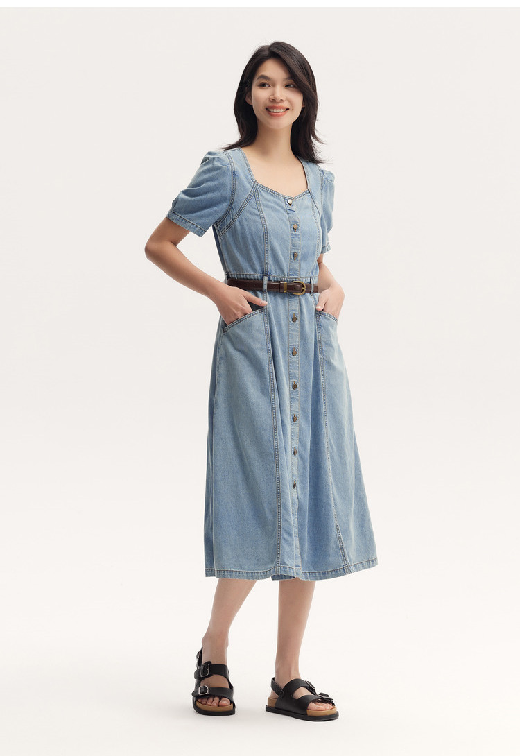 Semir, джинсовое джинсовое платье, милый летний приталенный ремень, длинная юбка, придает объем