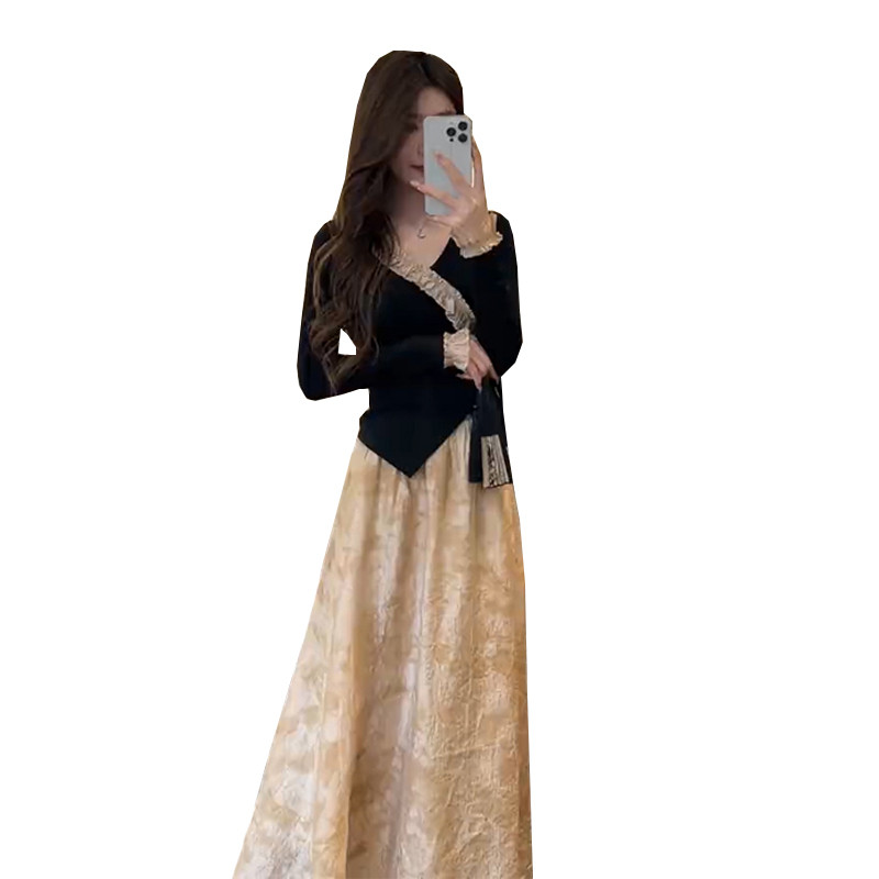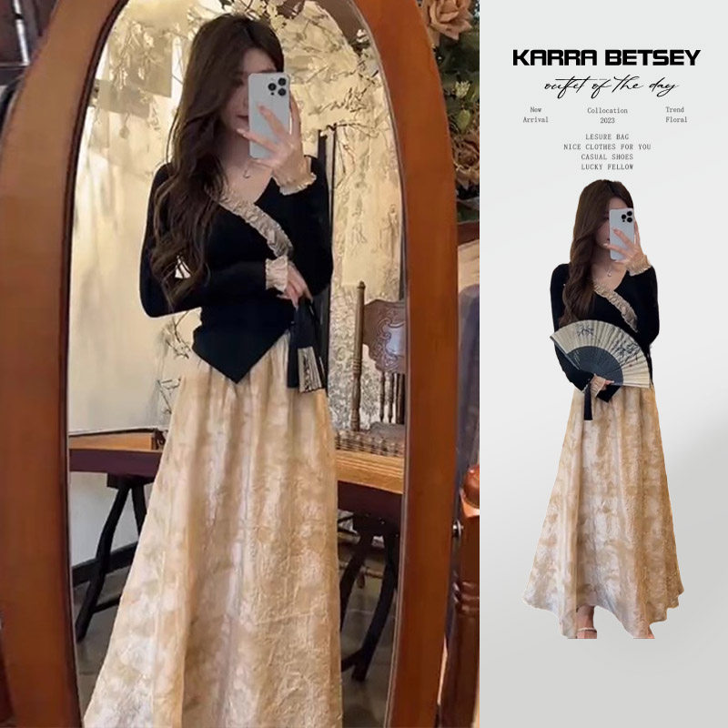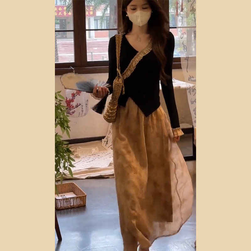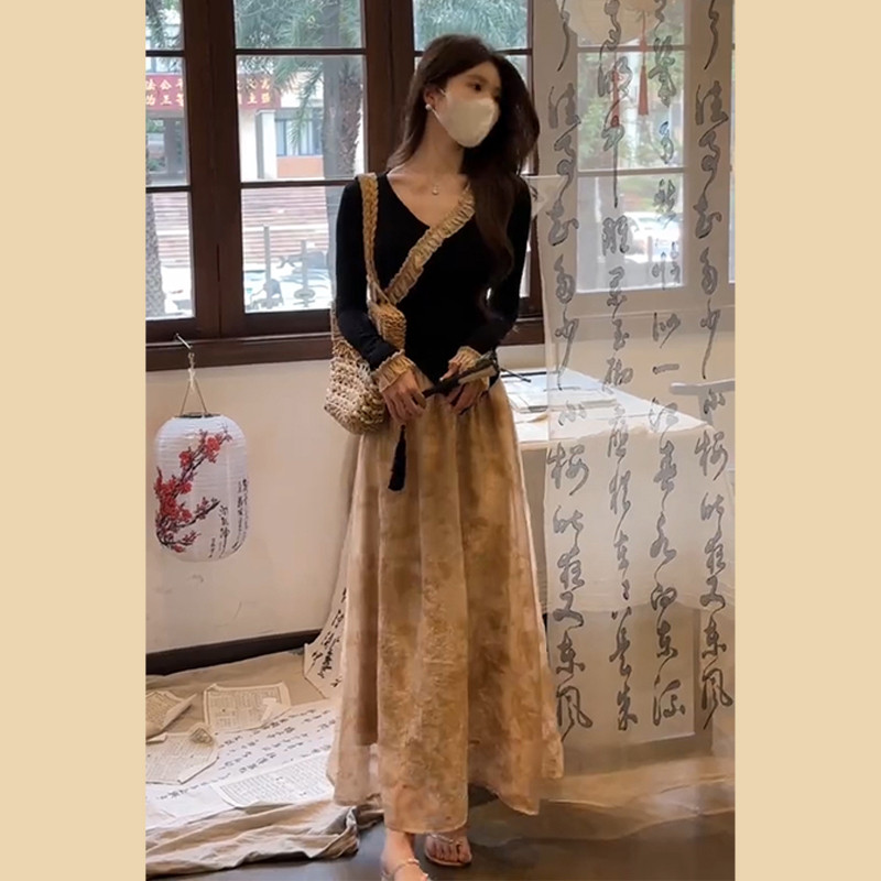 Осенний комплект, платье, длинная юбка, китайский стиль