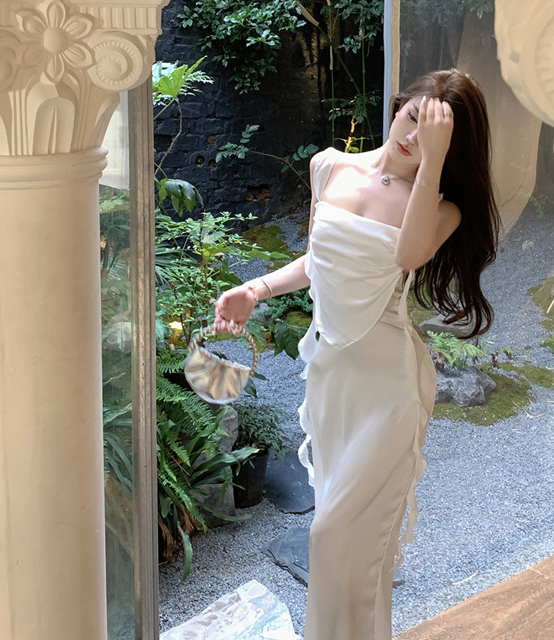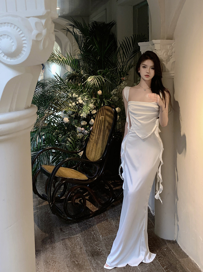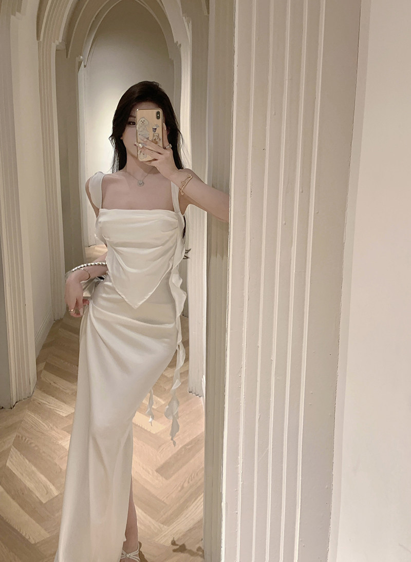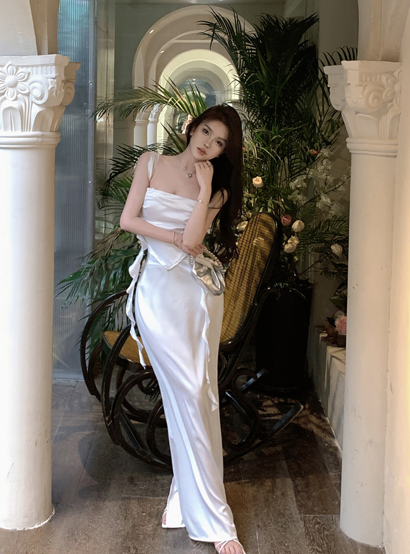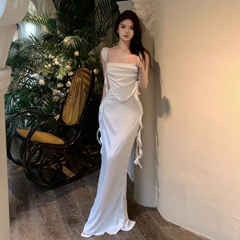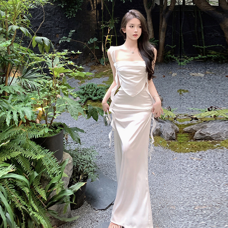 Сексуальное весеннее вечернее платье, длинная юбка, французский стиль, с акцентом на бедрах