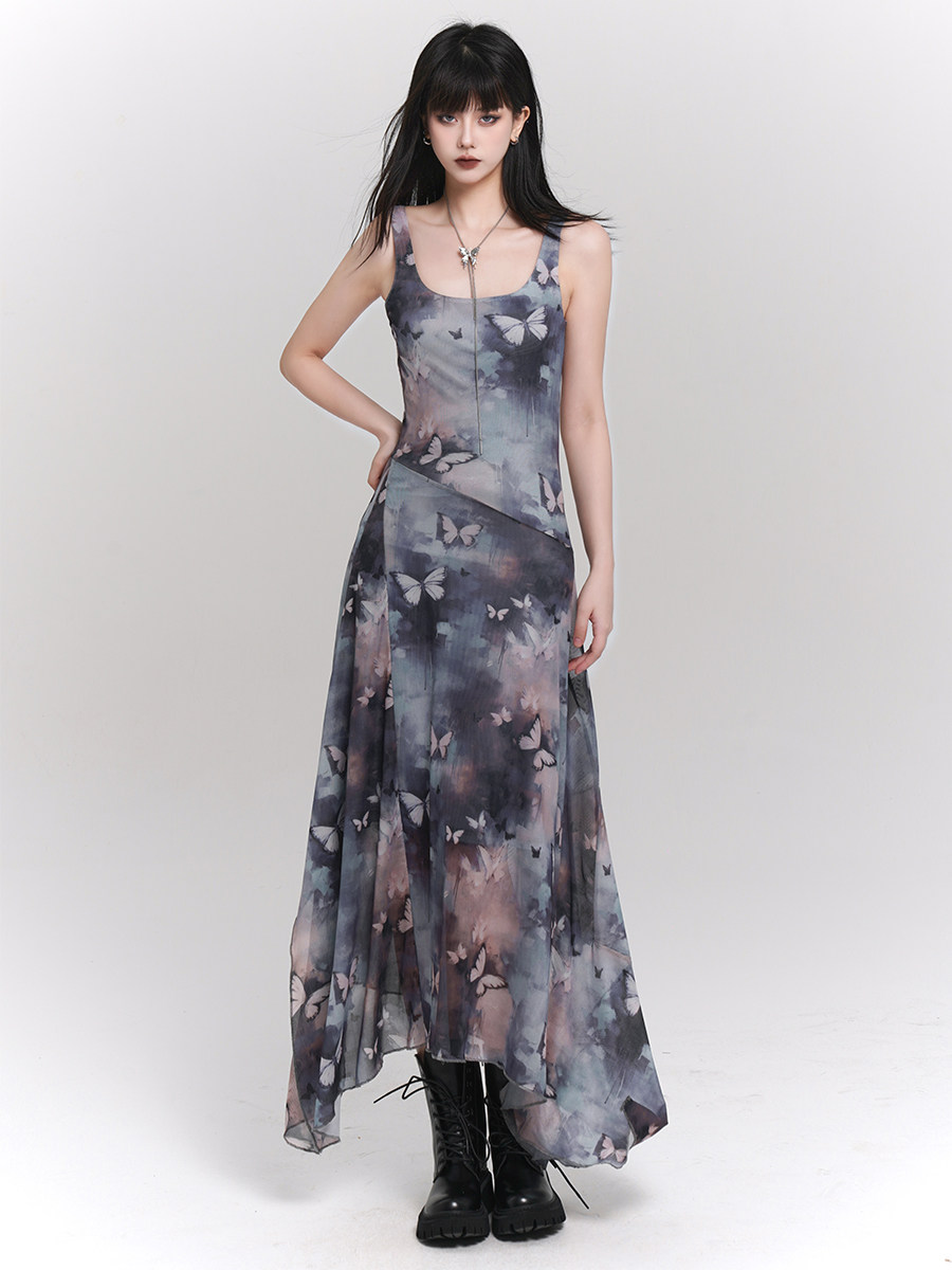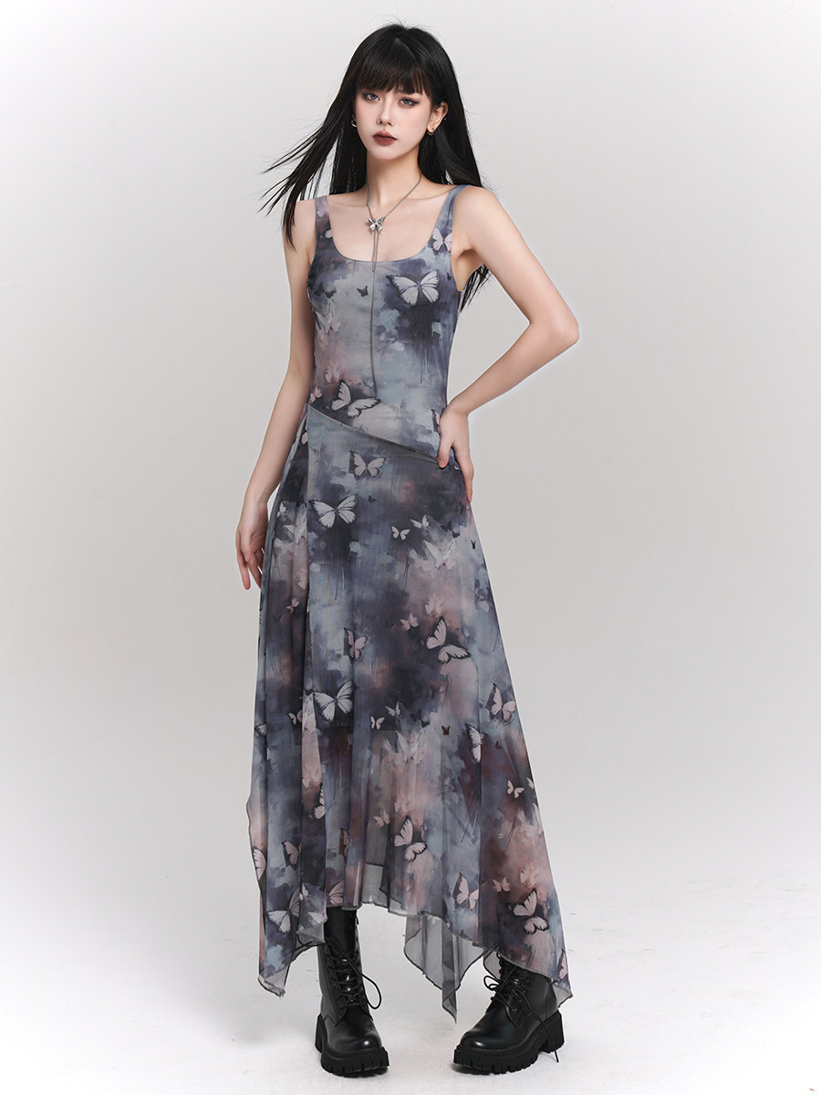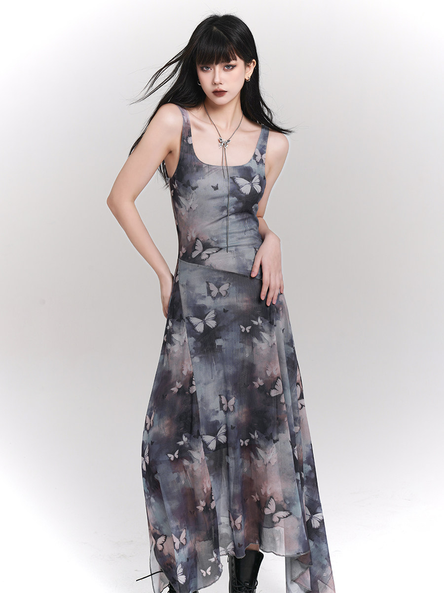 Красивое сетчатое платье на подтяжках с бабочкой и чернилами для девочек-призраков для женщин. Юбка подходит для фотографий на берегу моря.