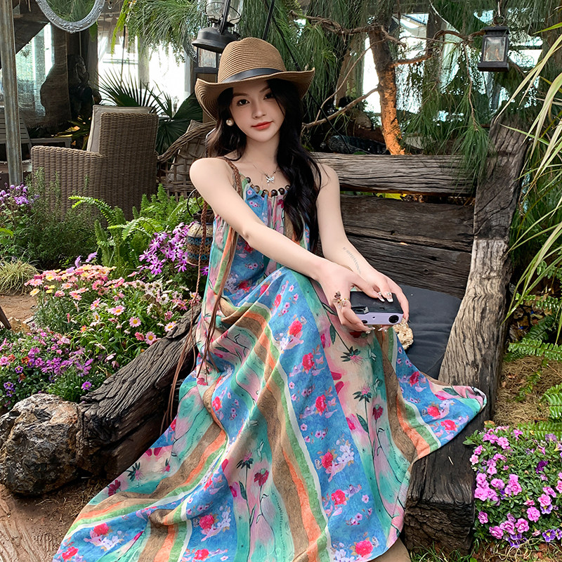 Этническая длинная юбка, цветочный принт, в цветочек, французский стиль, стиль бохо, этнический стиль