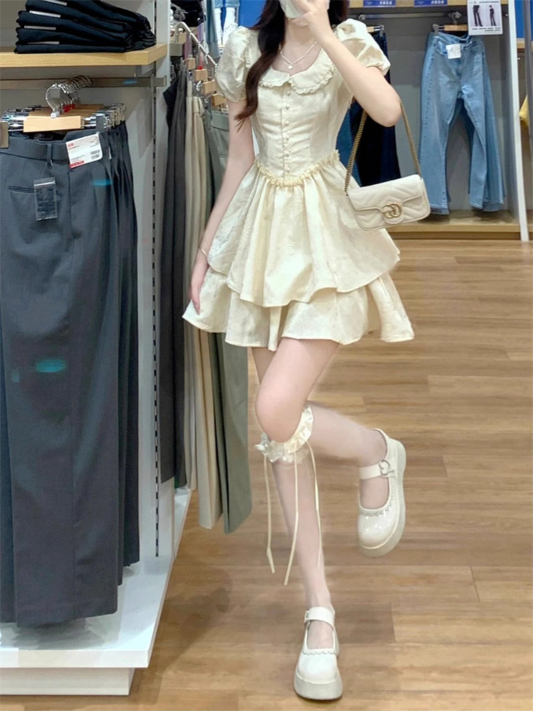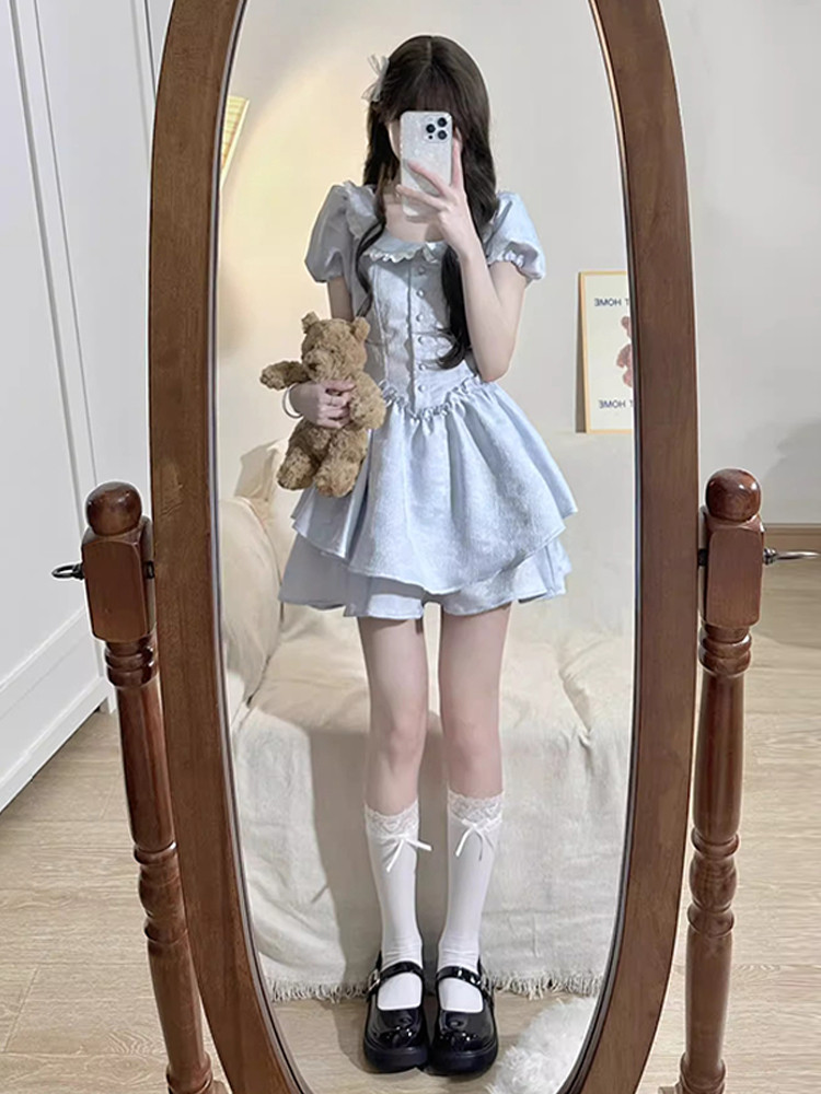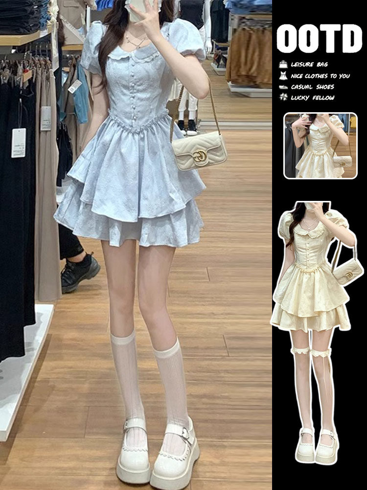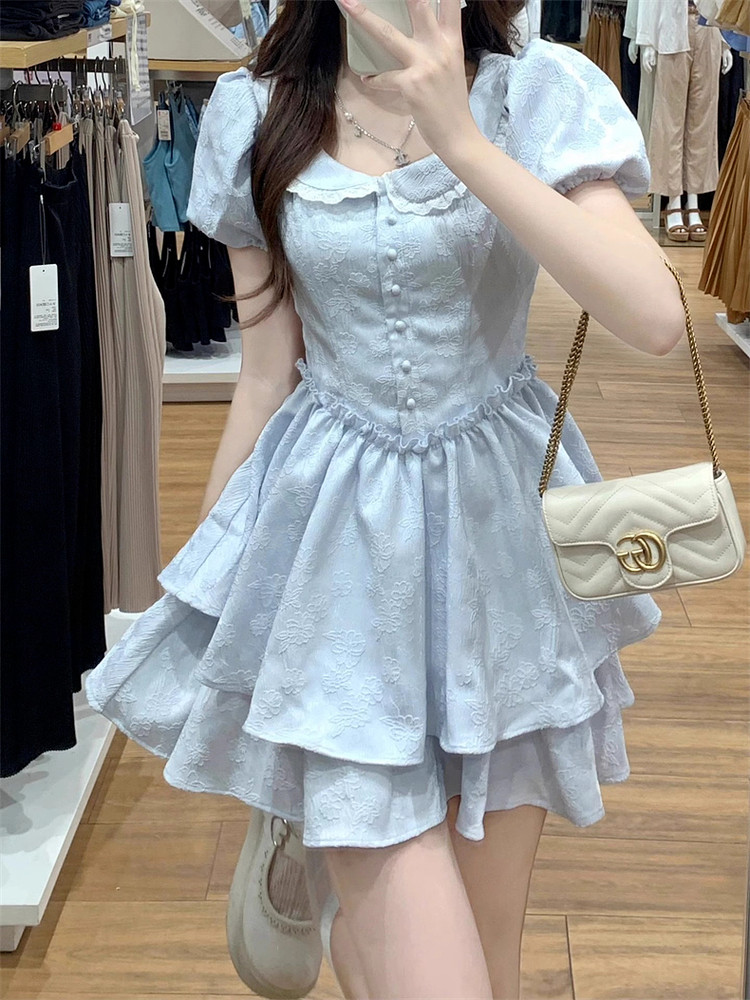 Синее летнее платье, юбка для принцессы, французский стиль, подходит для подростков, юбка-пачка