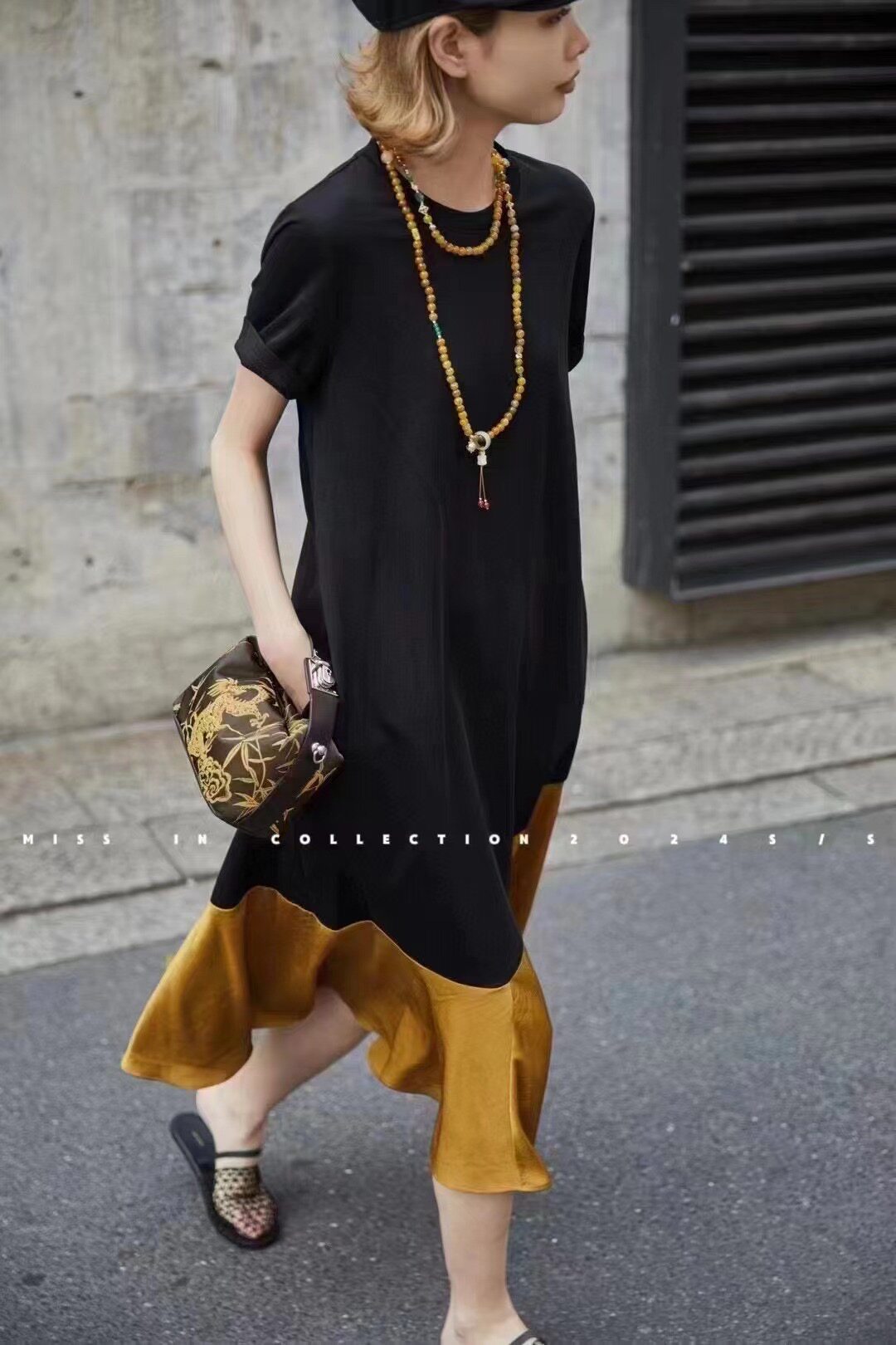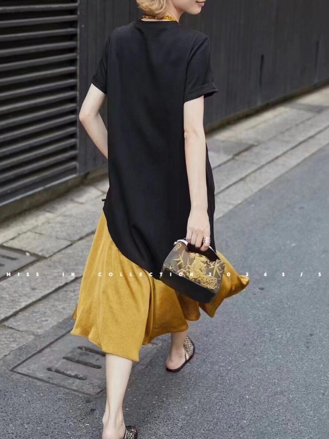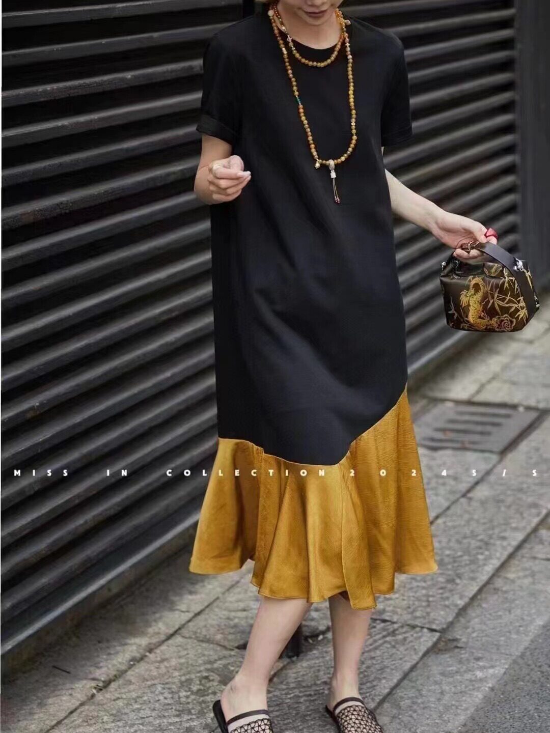 Весеннее платье, длинная юбка, короткий рукав, европейский стиль, тренд сезона, премиум класс, по фигуре, оверсайз