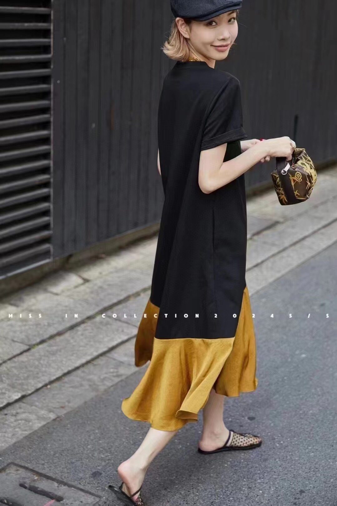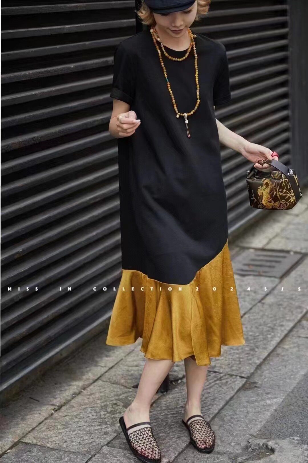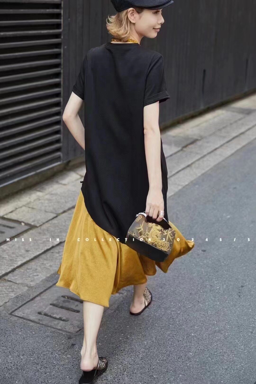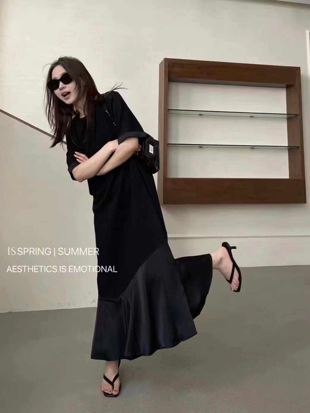 Весеннее платье, длинная юбка, короткий рукав, европейский стиль, тренд сезона, премиум класс, по фигуре, оверсайз