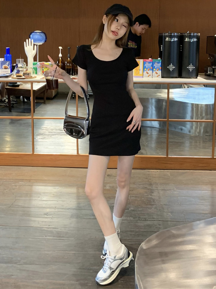 Платье, эластичная трикотажная мини-юбка, короткий рукав, облегающий крой, с акцентом на бедрах