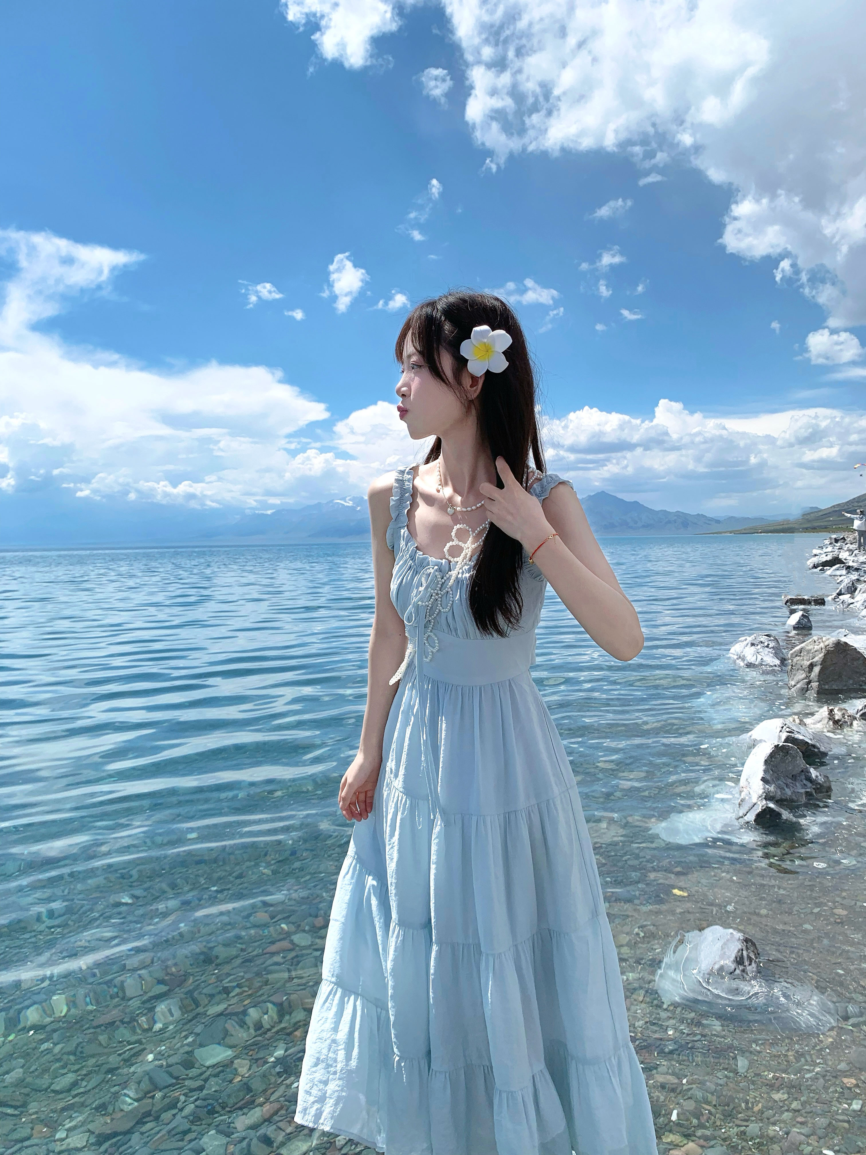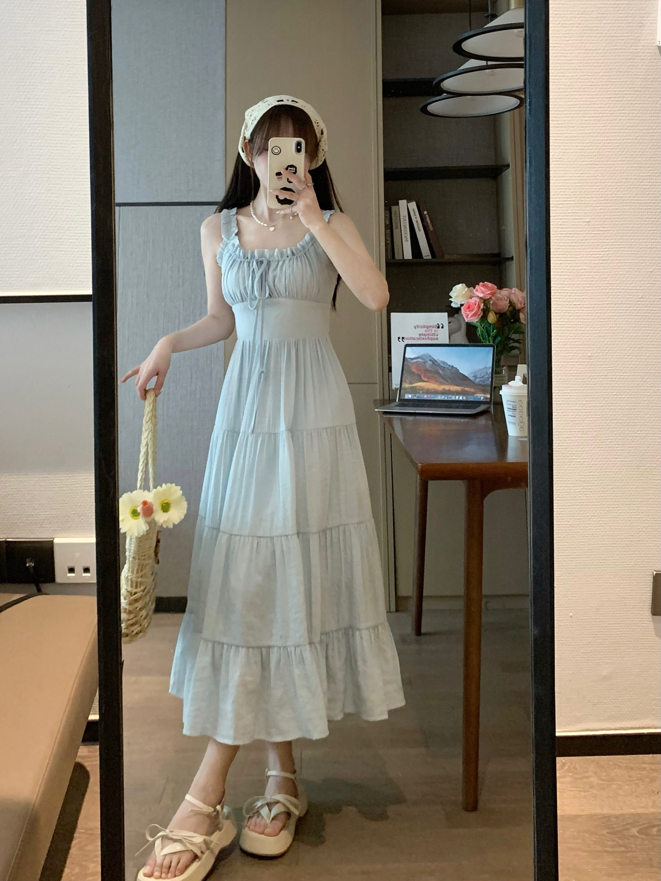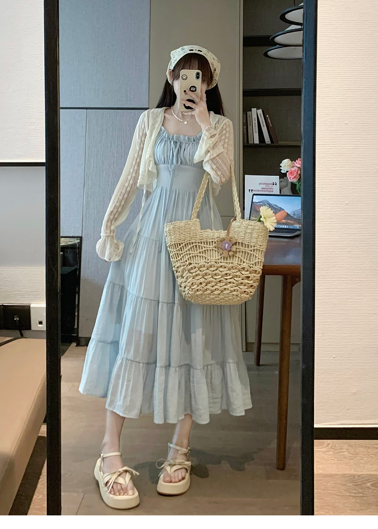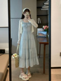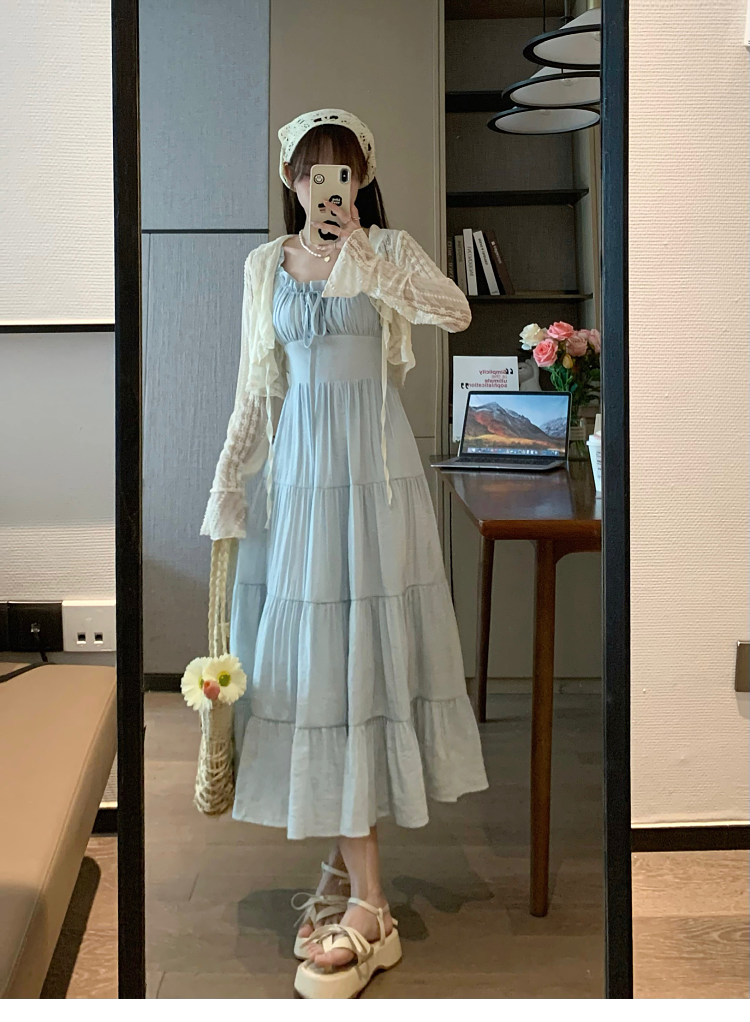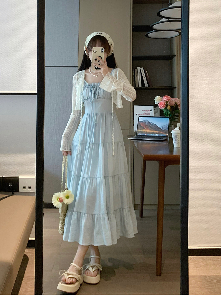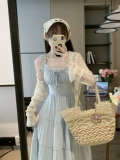 Приталенный дизайнерский корсет, синяя длинная юбка, платье, тренд сезона