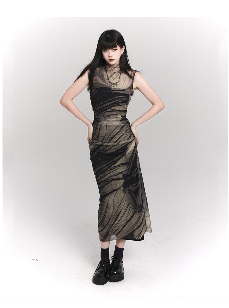 Призрачное летнее небольшое дизайнерское платье без рукавов