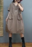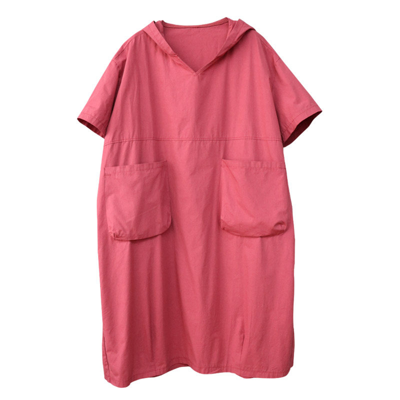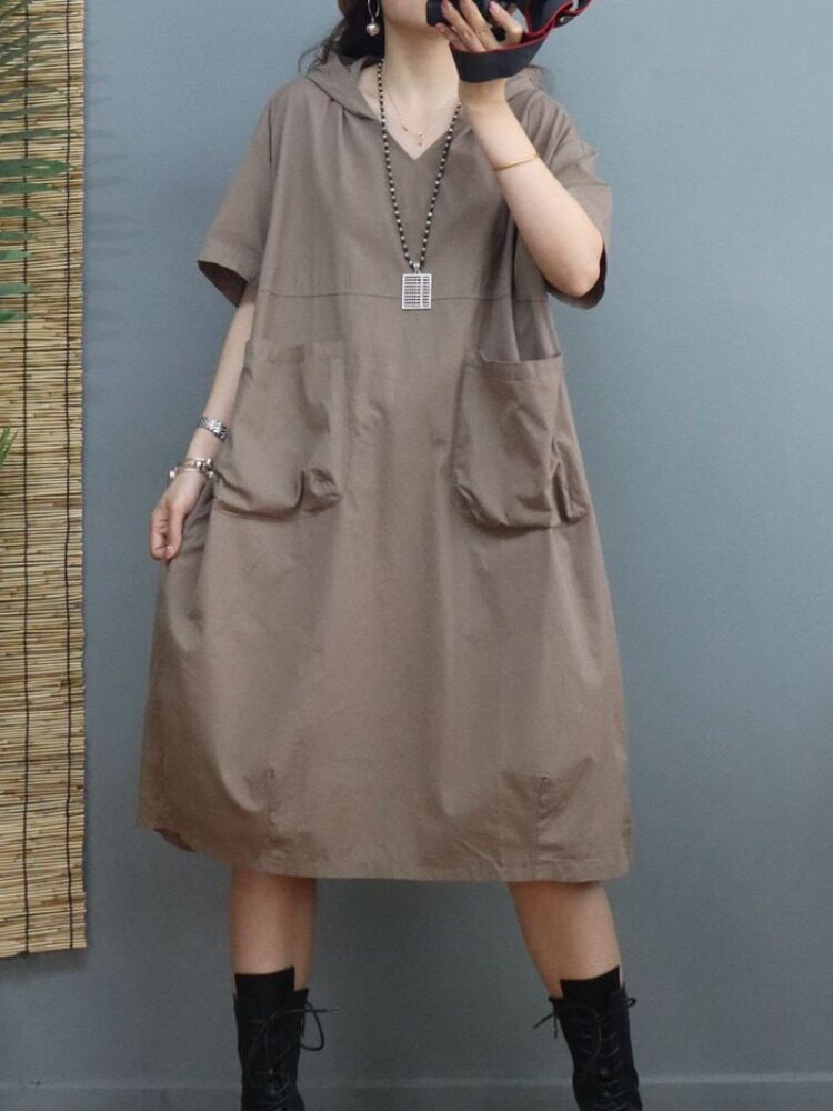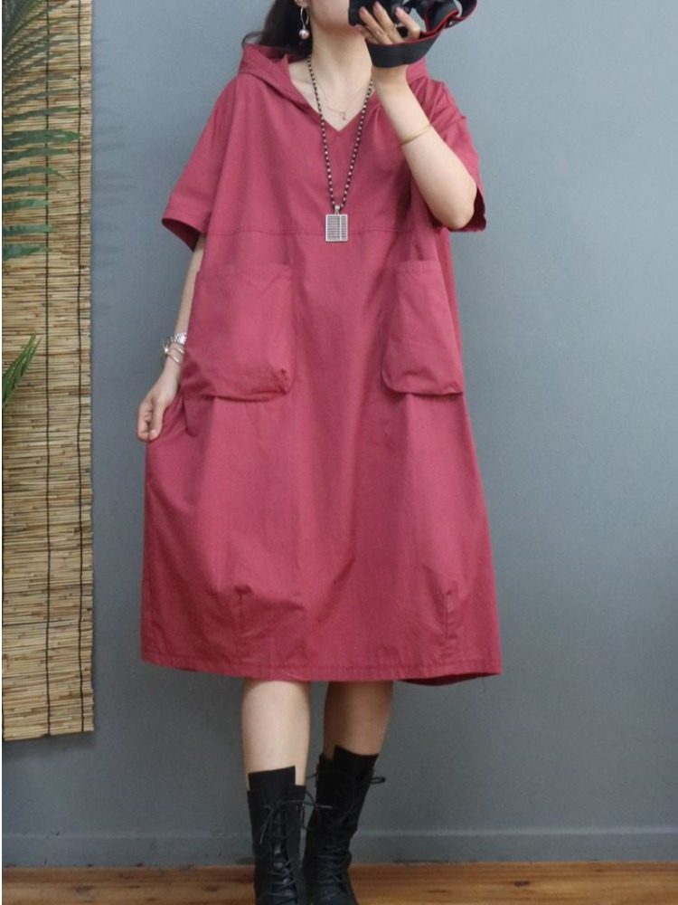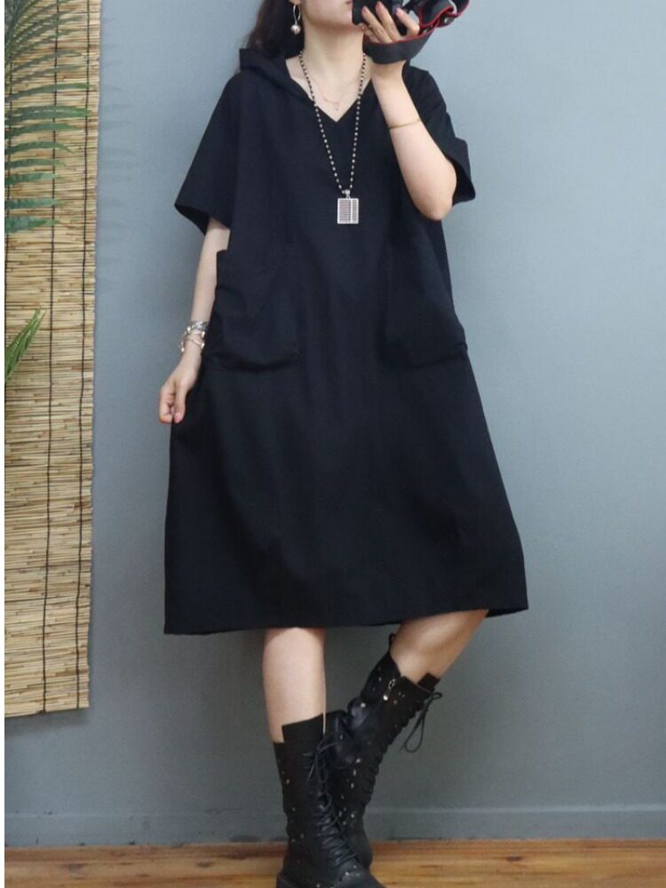Платье, летняя толстовка с капюшоном, длинная юбка для отдыха, в корейском стиле, V-образный вырез, по фигуре, оверсайз, средней длины