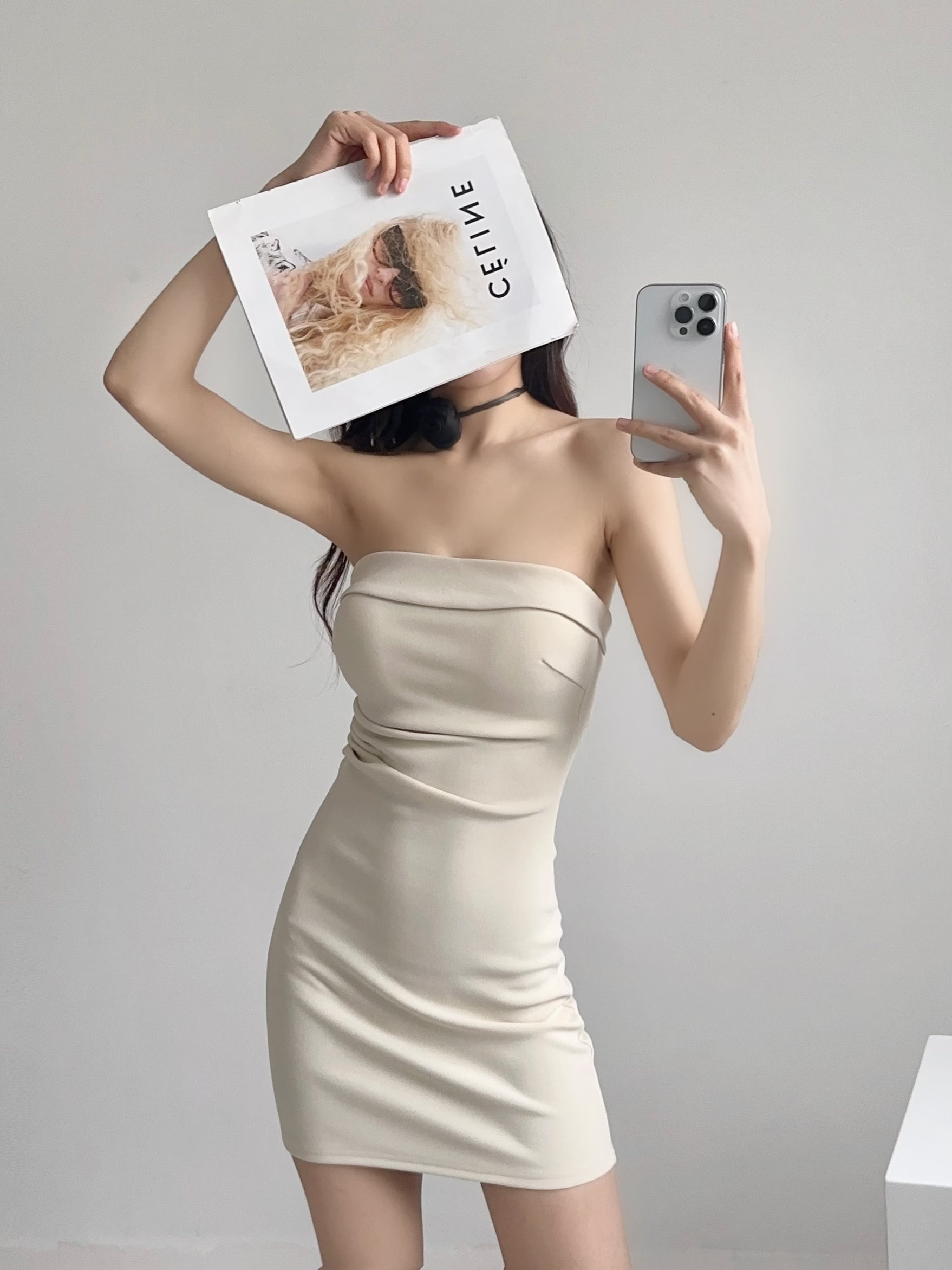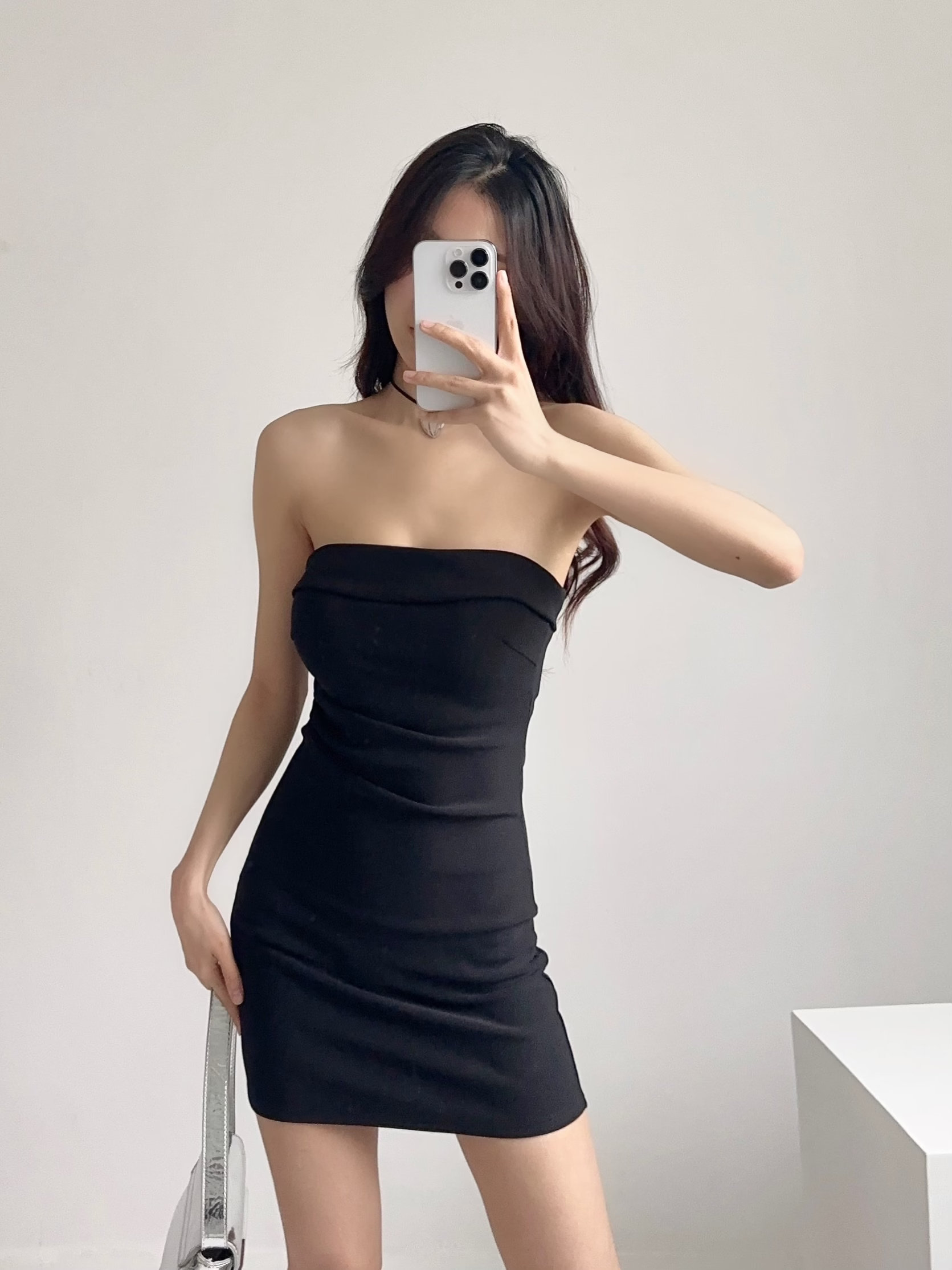 Топ без лямок, нагрудная сумка, дизайнерская юбка, европейский стиль, открытые плечи, с акцентом на бедрах, тренд сезона, А-силуэт