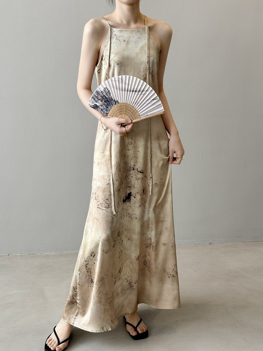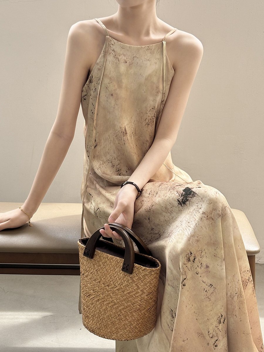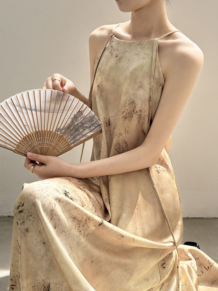 Бретели, светлое платье, длинная юбка, китайский стиль