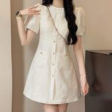 Милое летнее белое платье, приталенный корсет, французский стиль, в стиле Шанель, подходит для подростков, А-силуэт