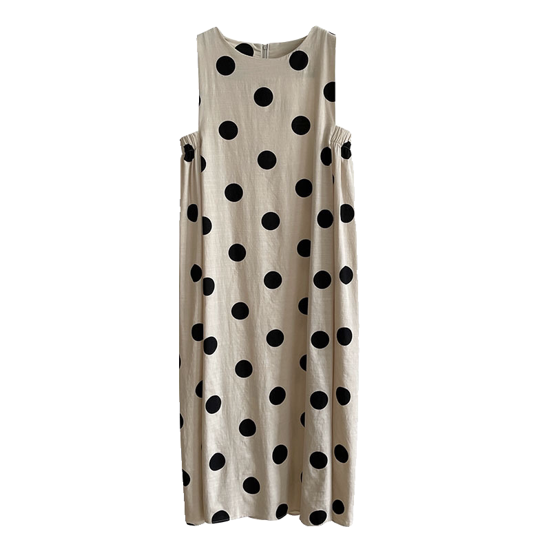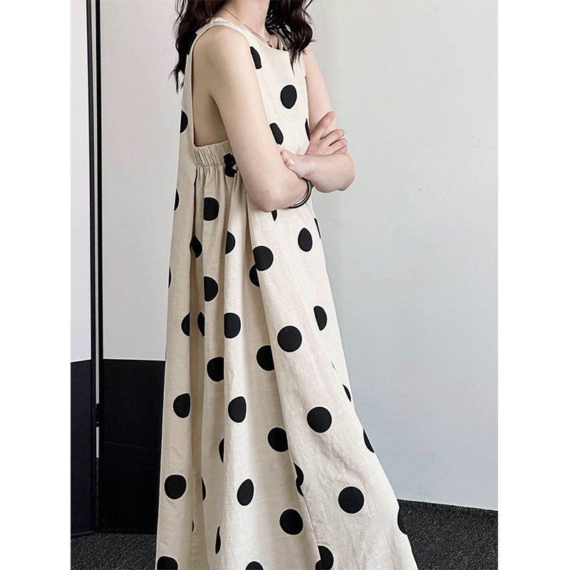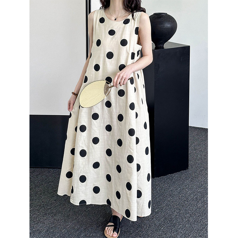 Платье, жилет без рукавов, длинная юбка, из хлопка и льна