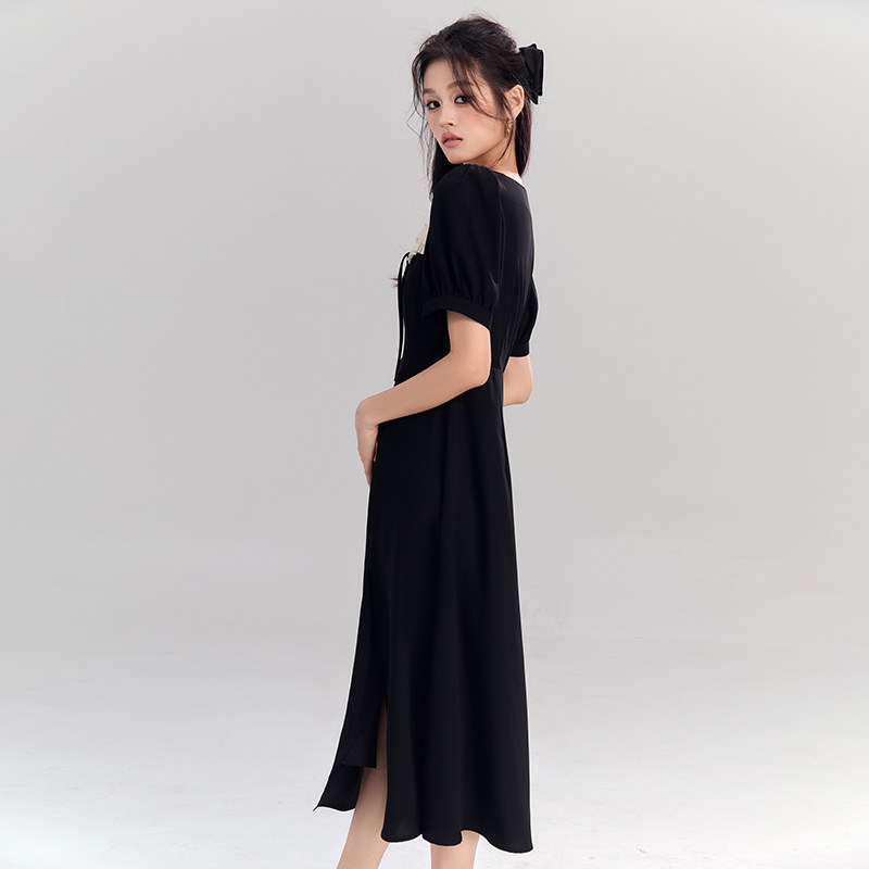 Летнее платье, ретро приталенный корсет, длинная юбка, французский стиль, квадратный вырез, средней длины