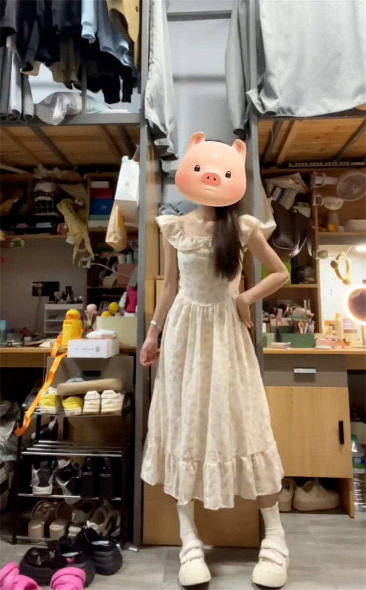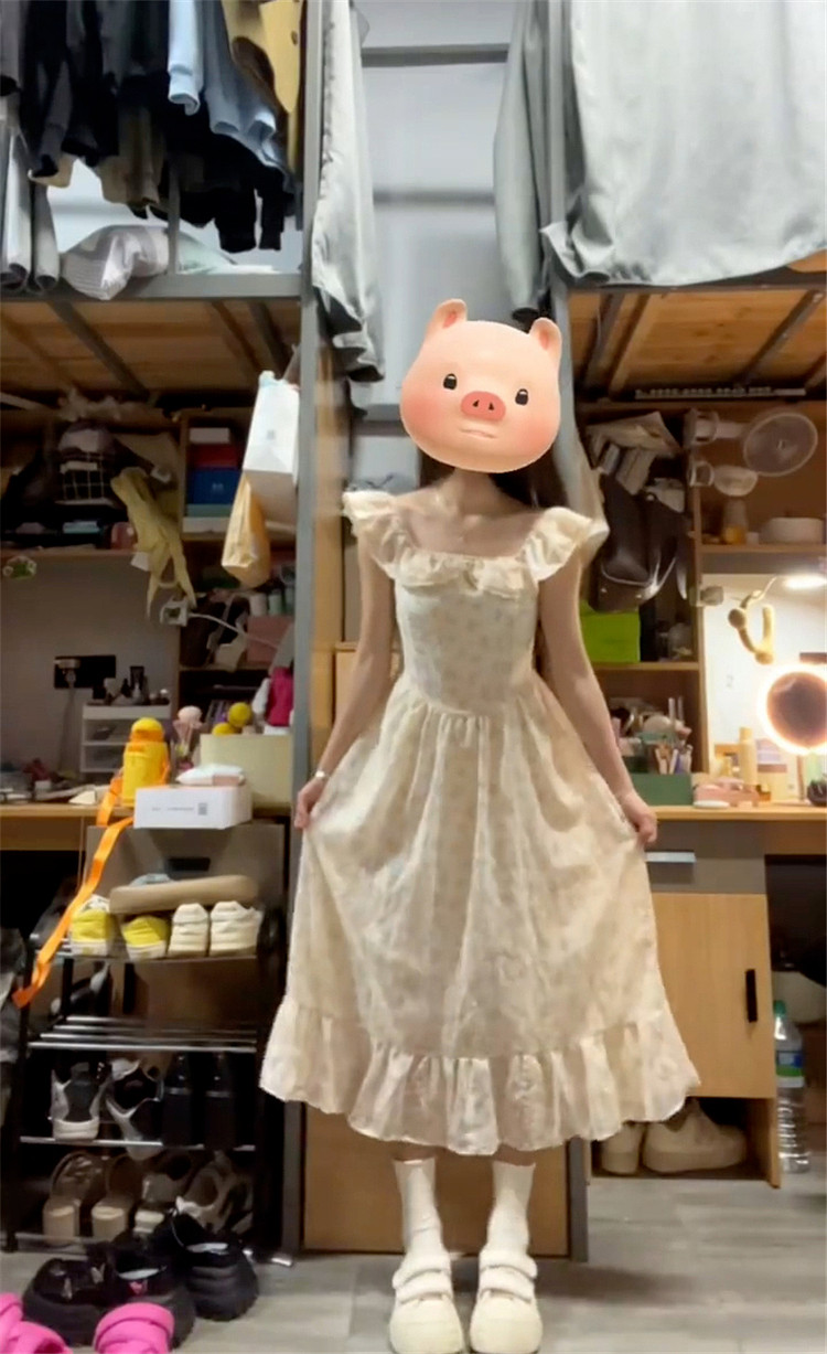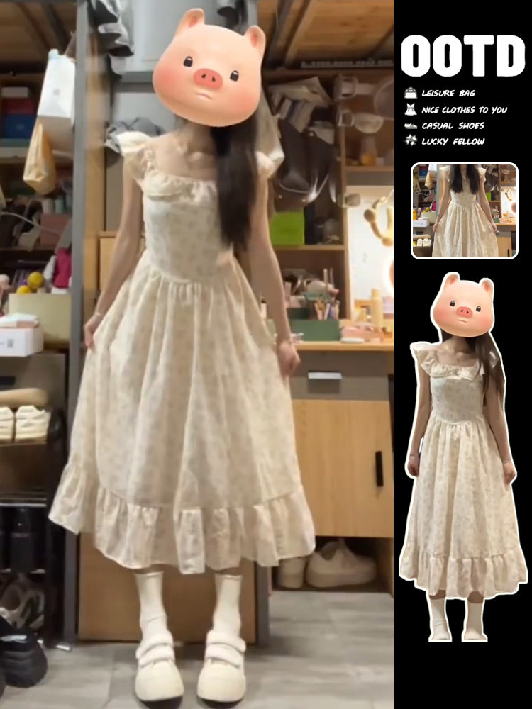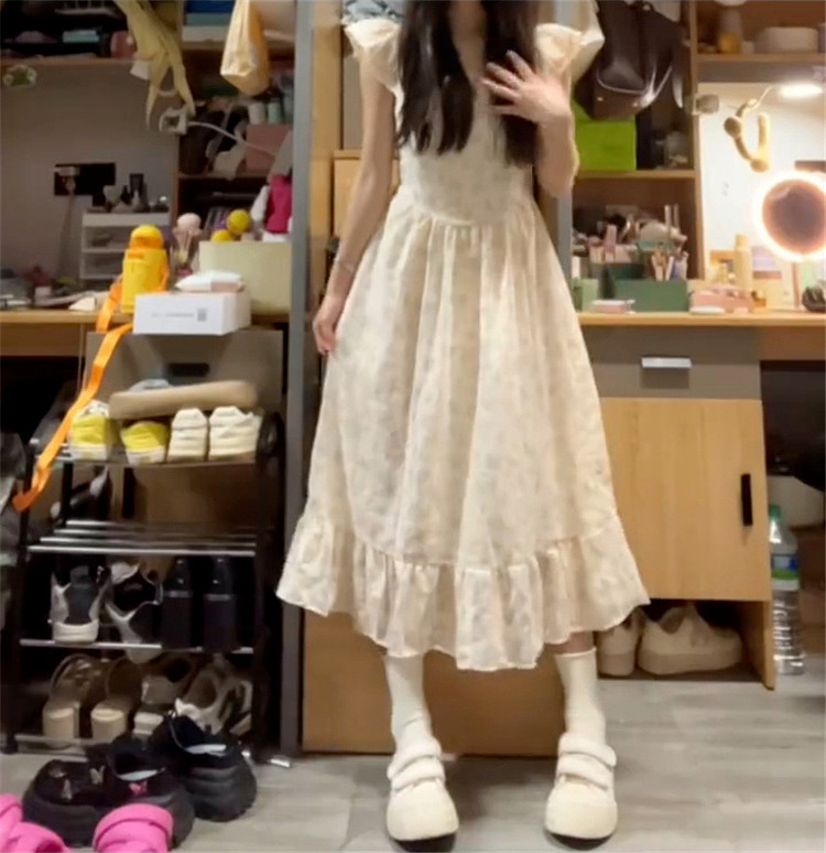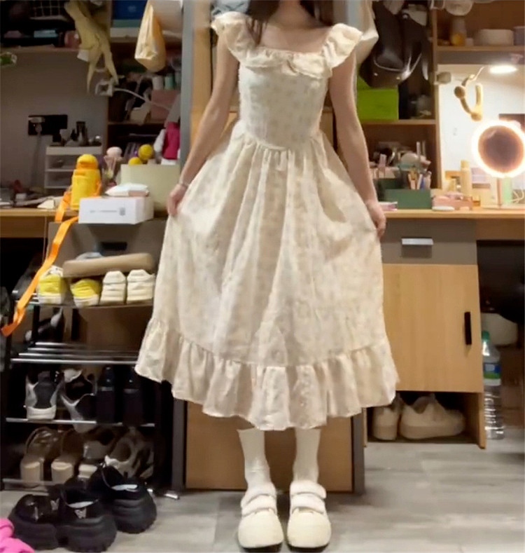Летнее платье, длинная юбка, эффект подтяжки, французский стиль, подходит для подростков