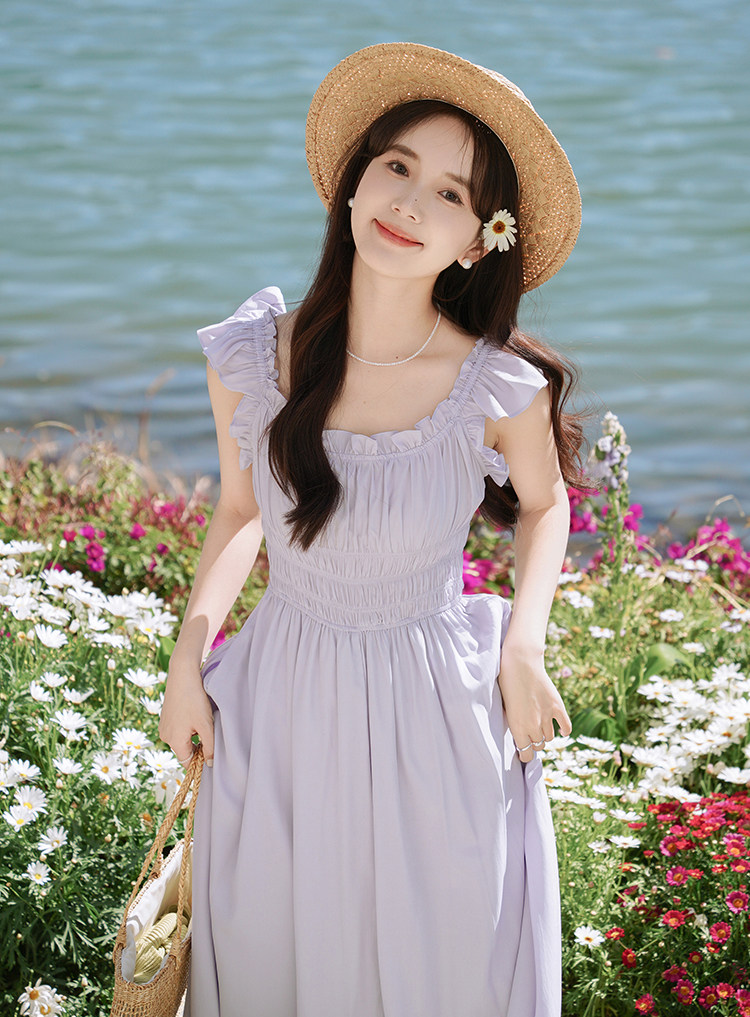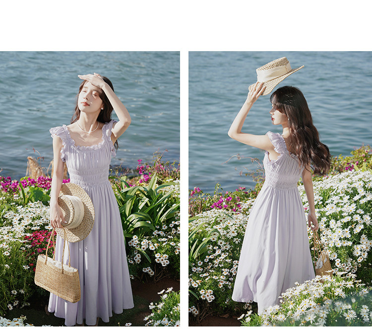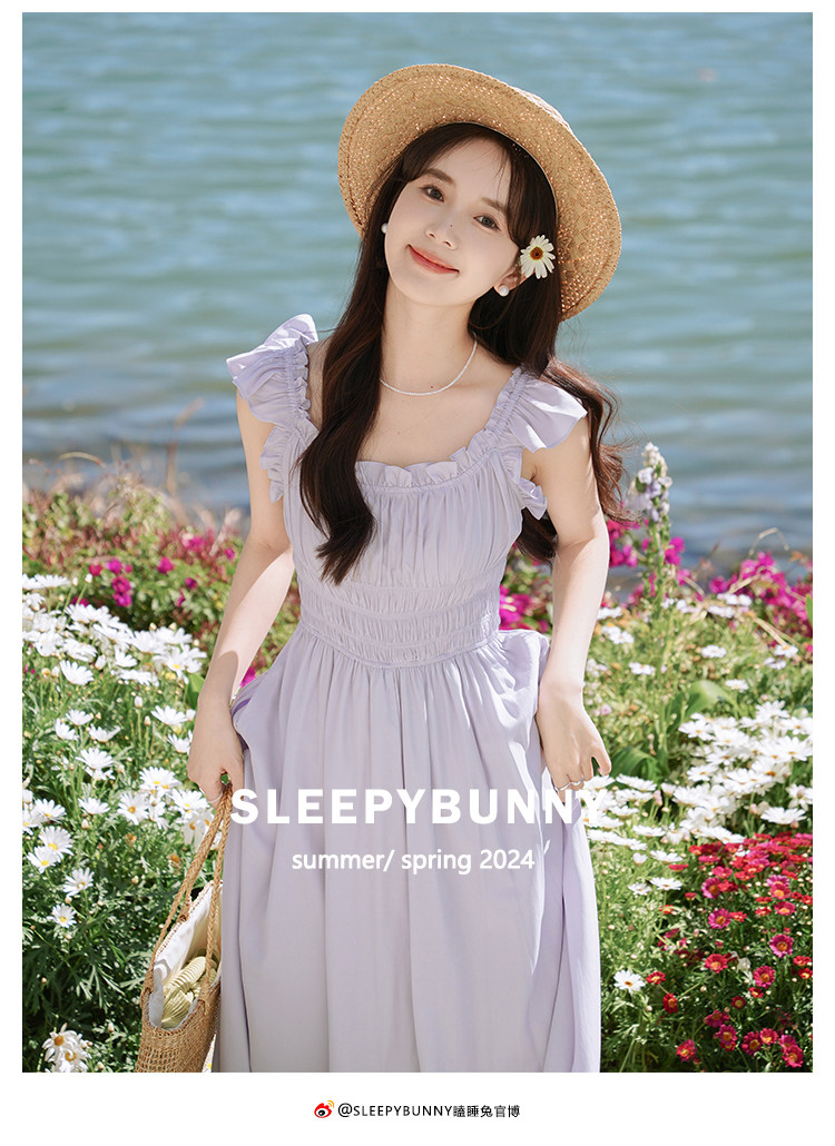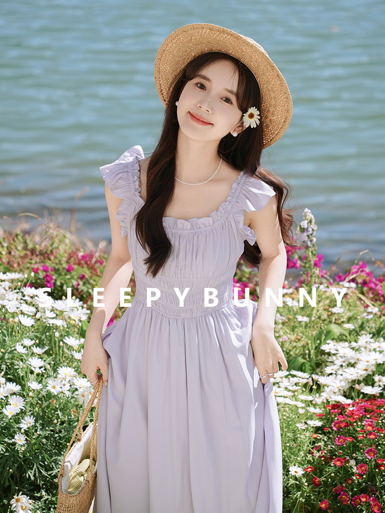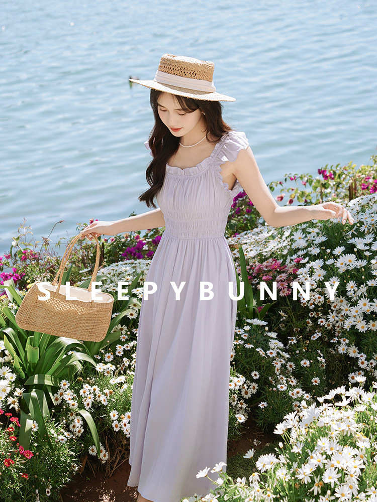瞌睡兔 Милое платье, корсет, сиреневая весенняя длинная юбка, французский стиль, А-силуэт