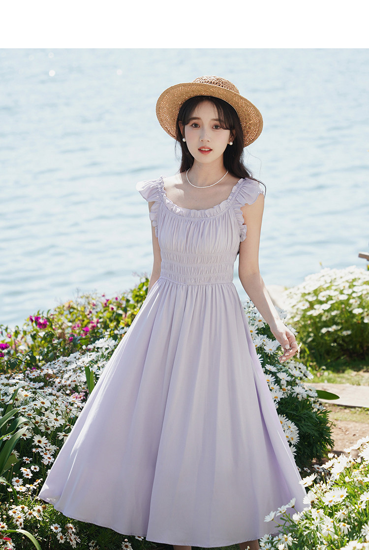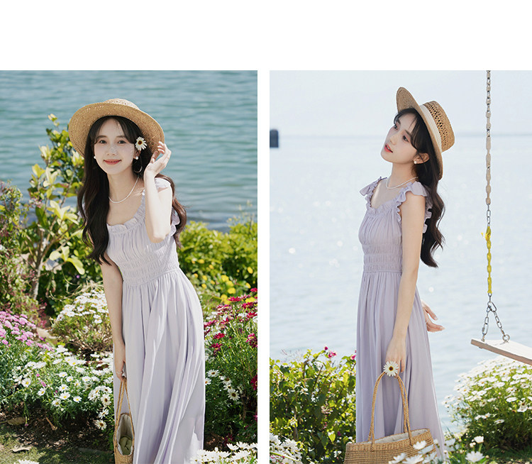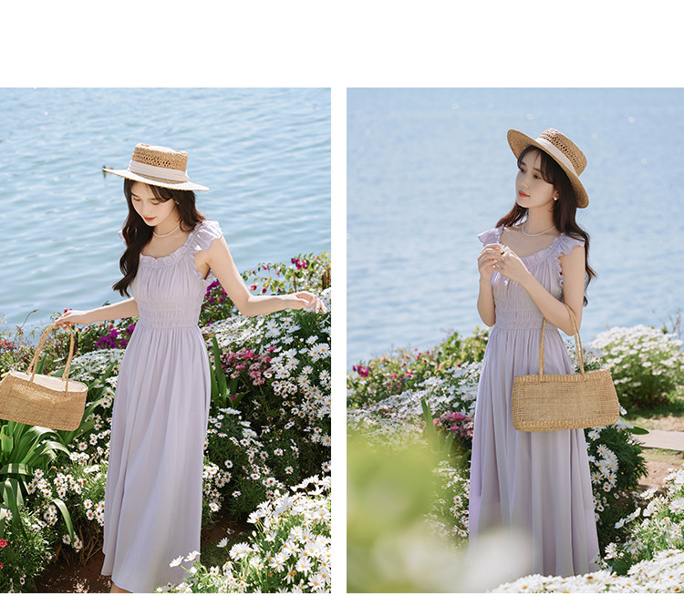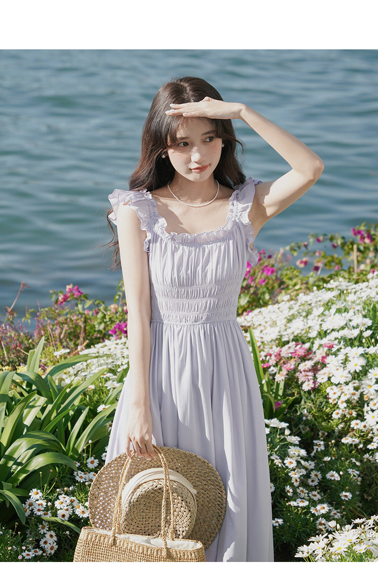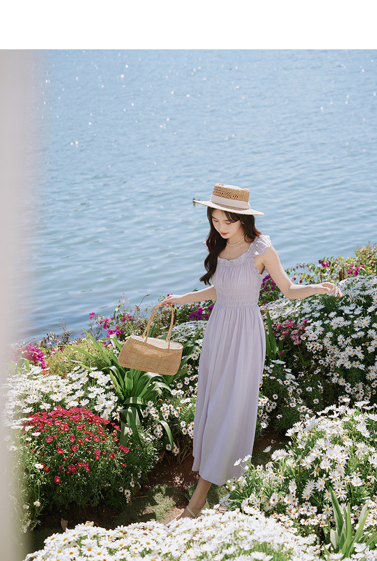 瞌睡兔 Милое платье, корсет, сиреневая весенняя длинная юбка, французский стиль, А-силуэт