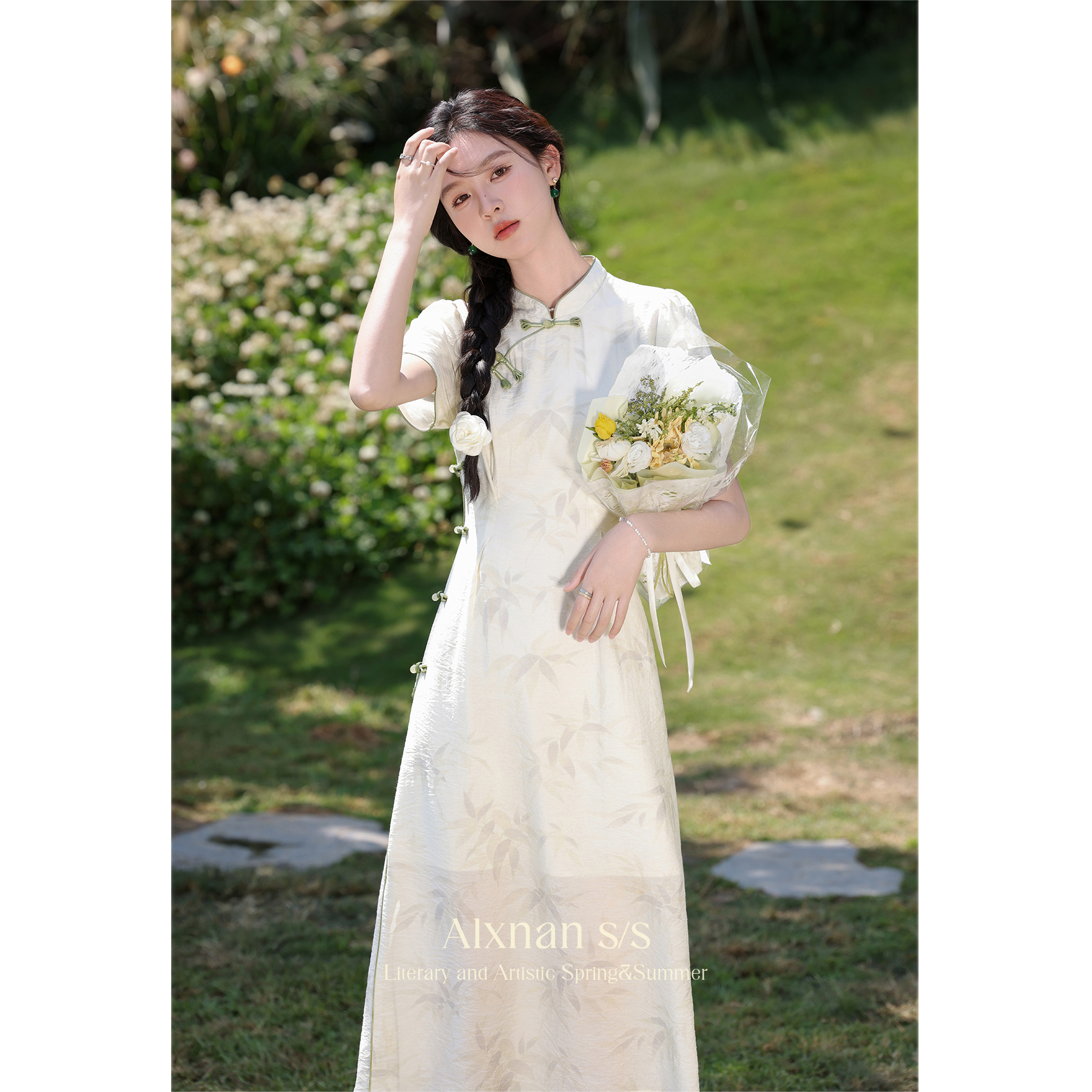 鹿向南 Летнее ципао, юбка, китайский стиль, городской стиль