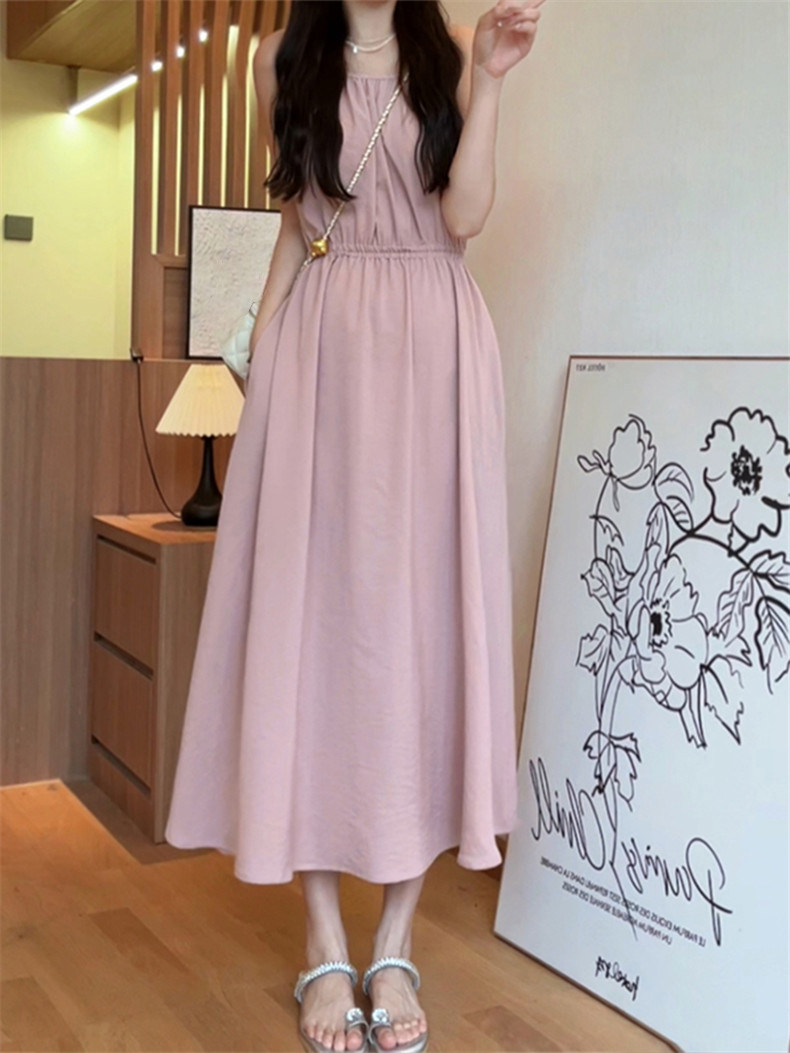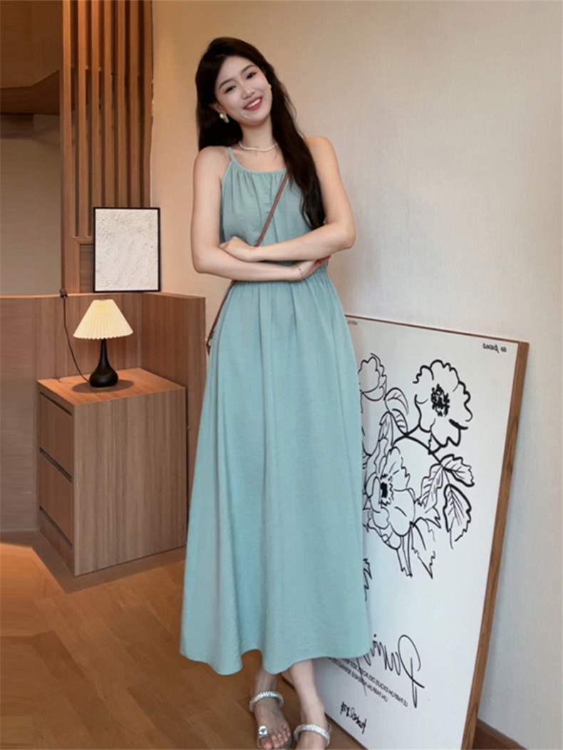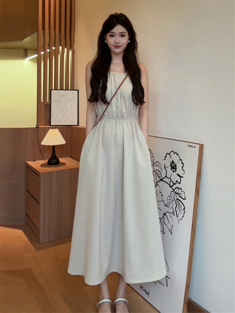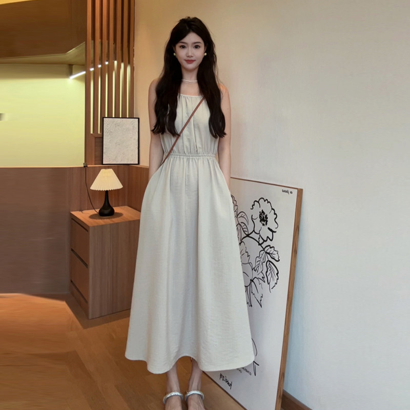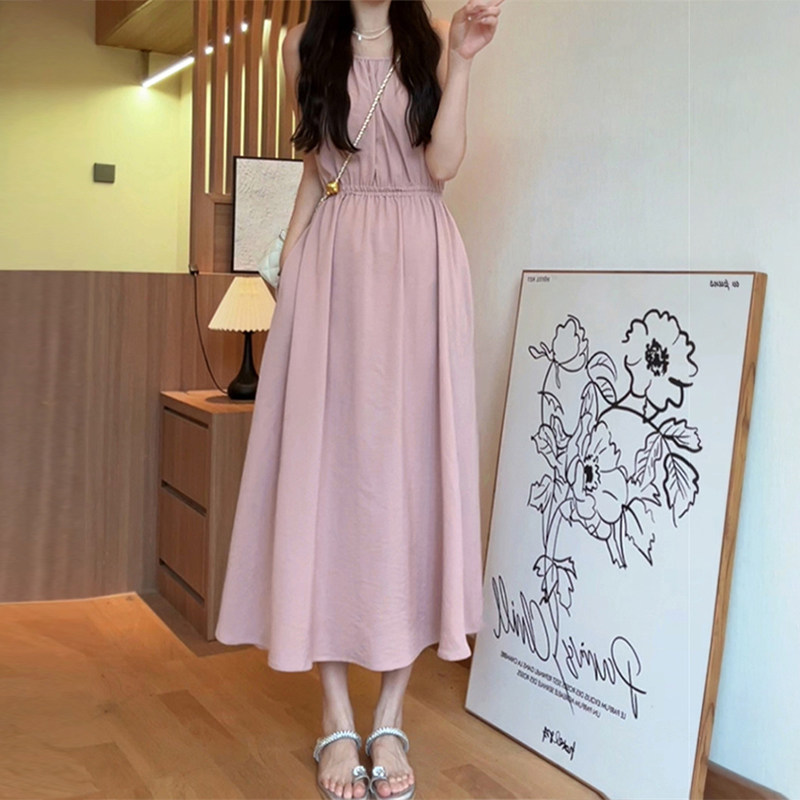 Летняя пляжная длинная юбка без рукавов, эффект подтяжки, подходит для подростков, французский стиль