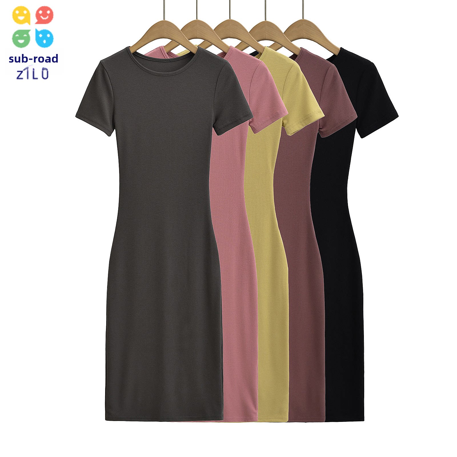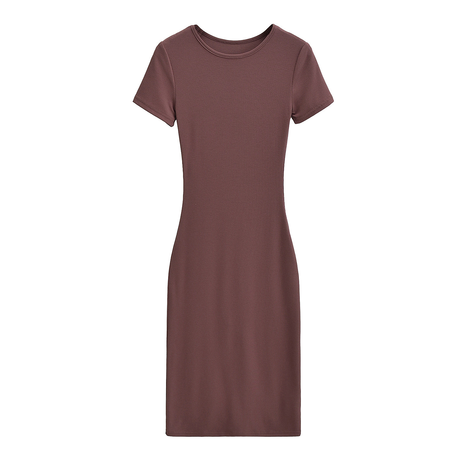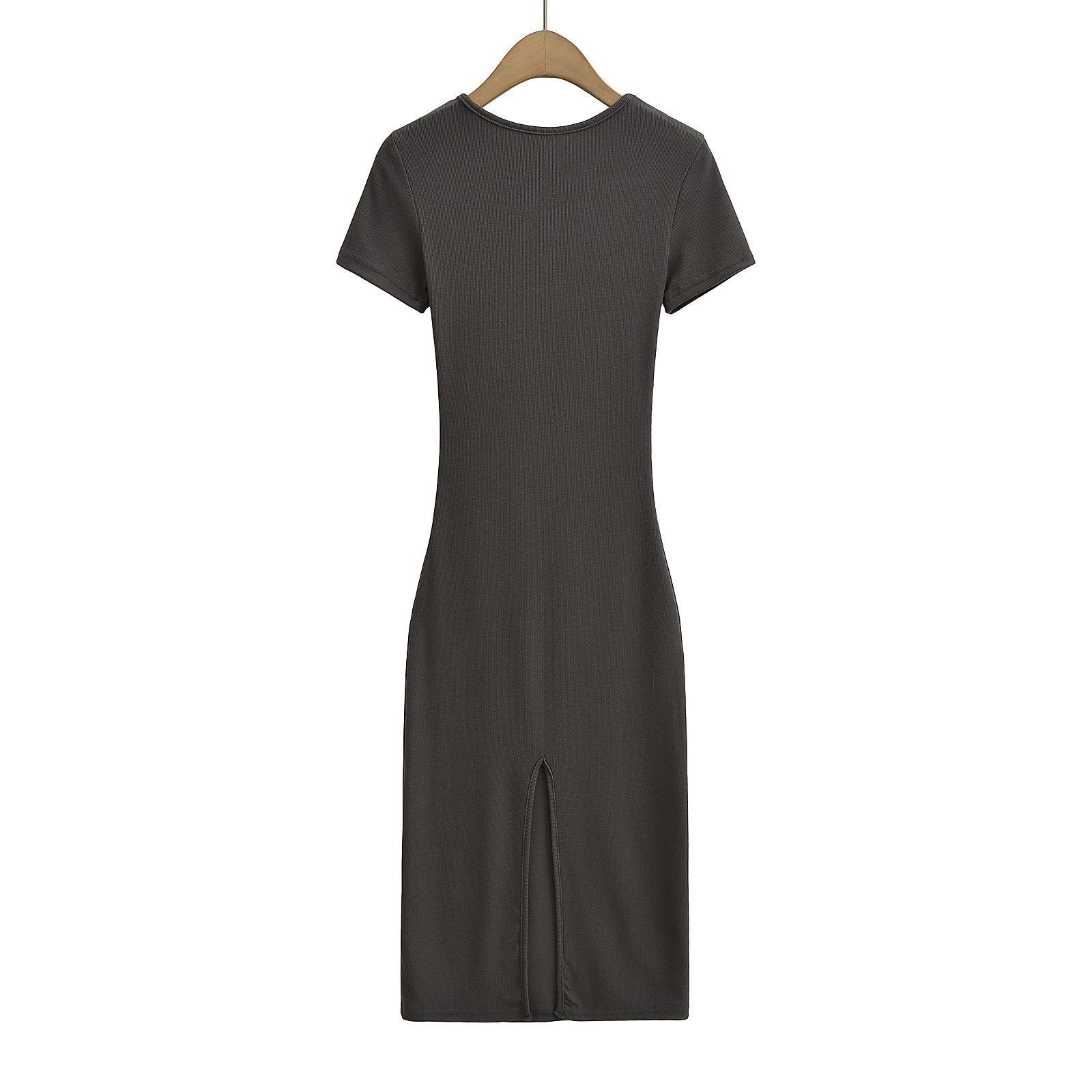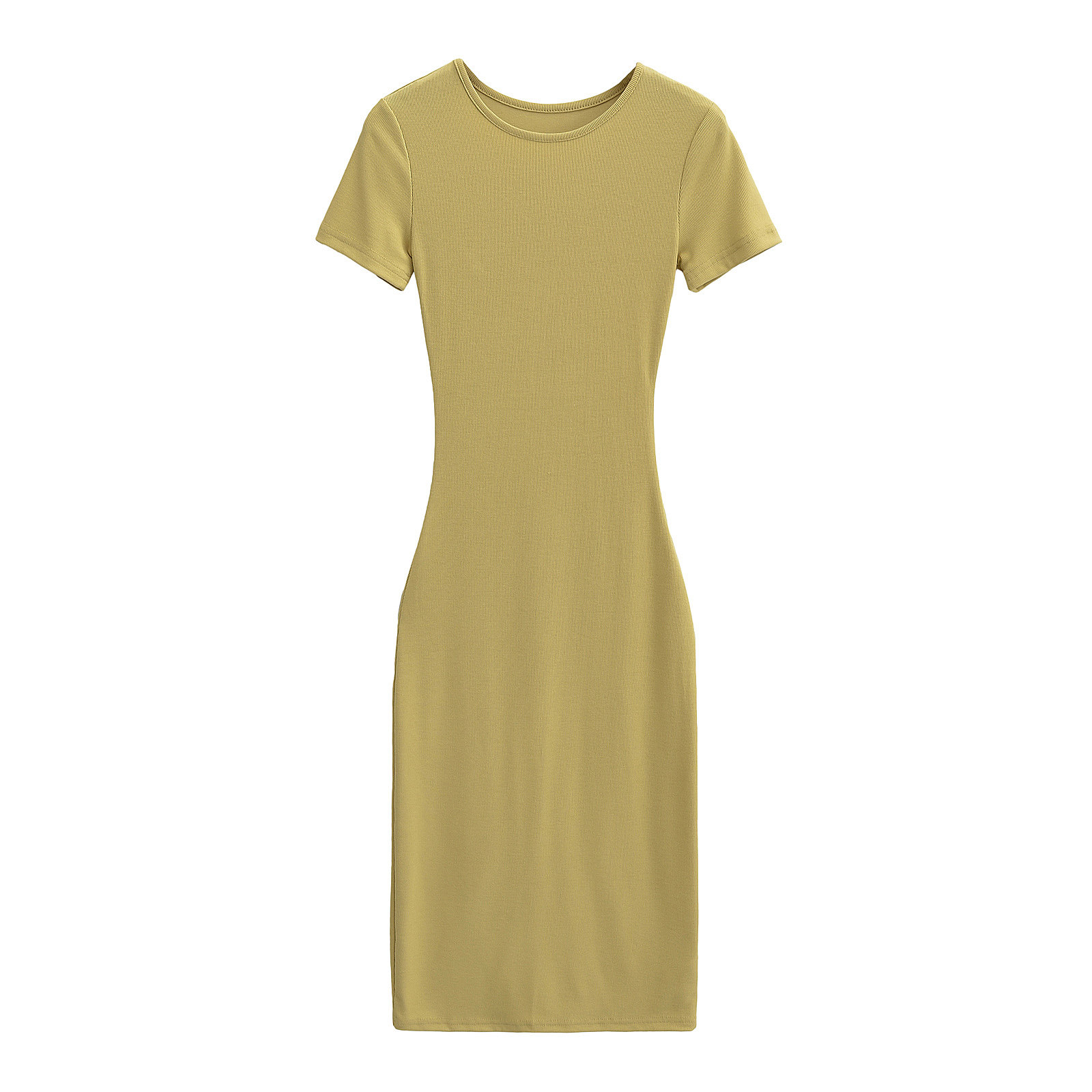 Эластичное платье с коротким рукавом с круглым воротником, европейский стиль, с акцентом на бедрах
