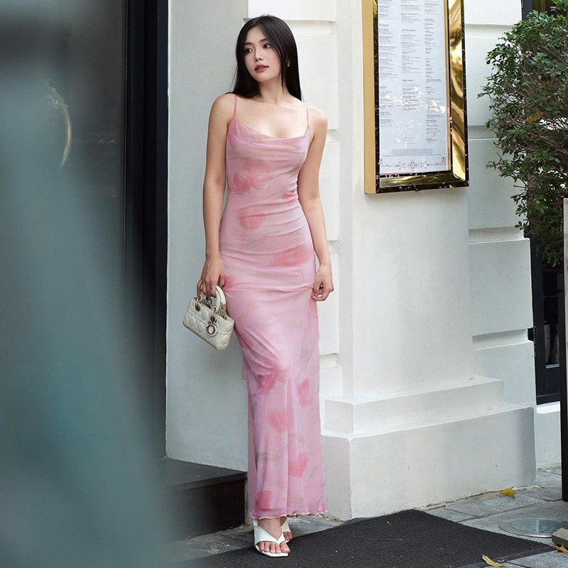 Летняя приталенная длинная юбка, эффект подтяжки, с акцентом на бедрах