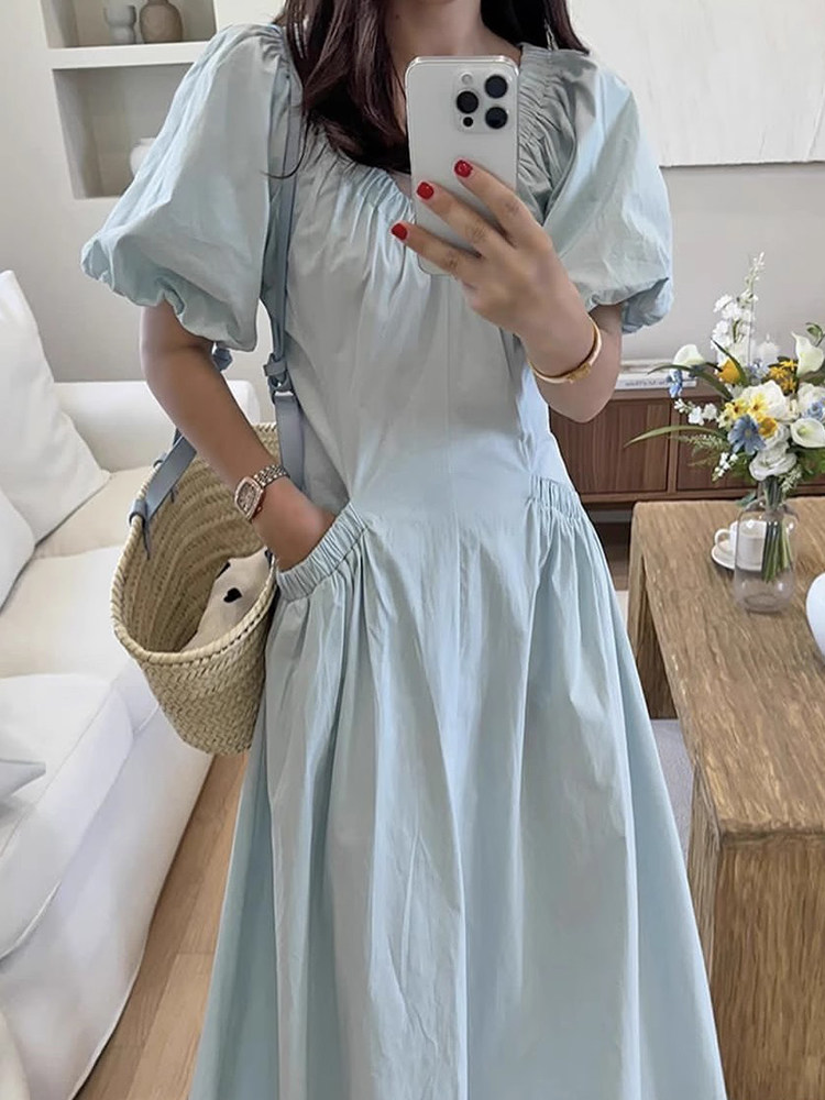 Летний ретро элегантный приталенный корсет, платье, юбка, в корейском стиле, V-образный вырез