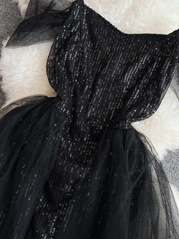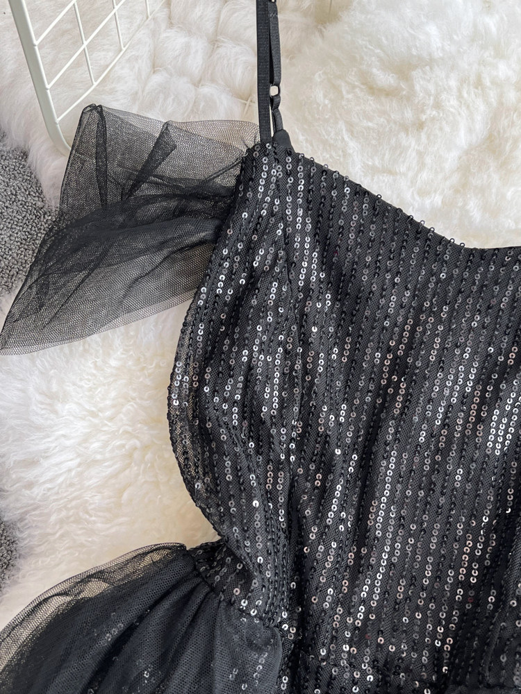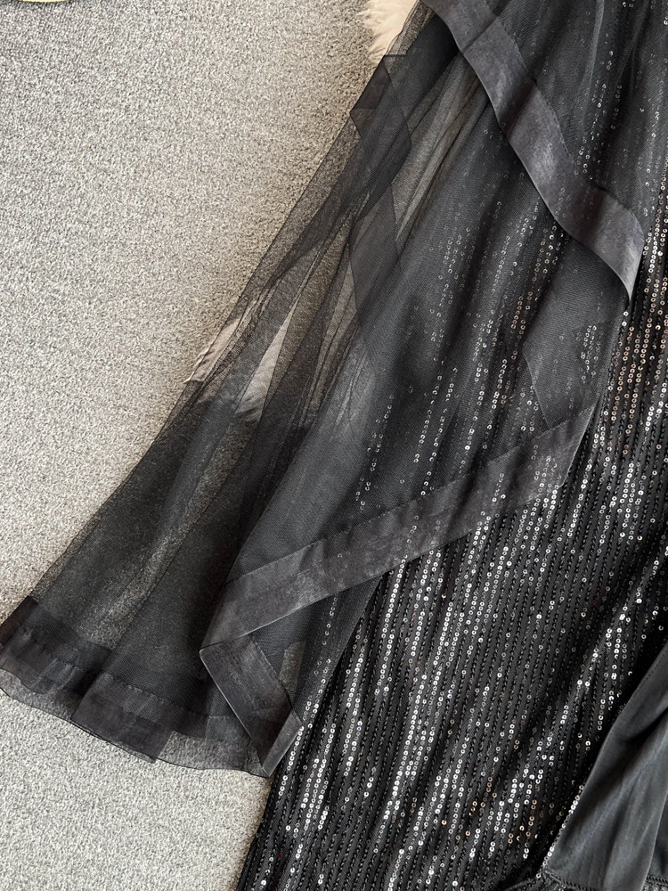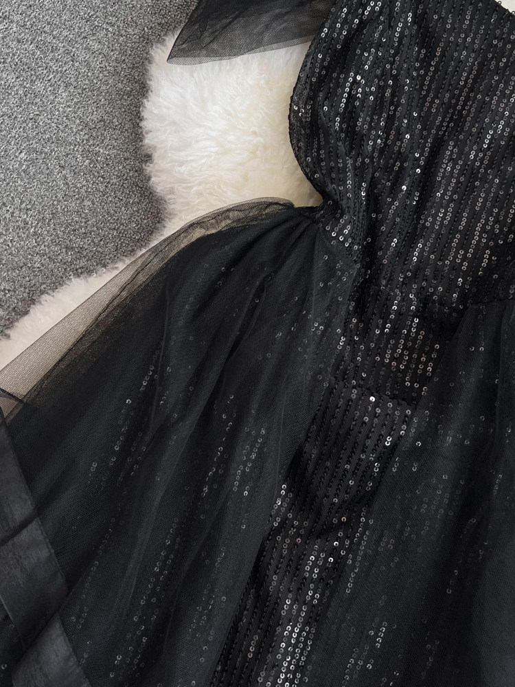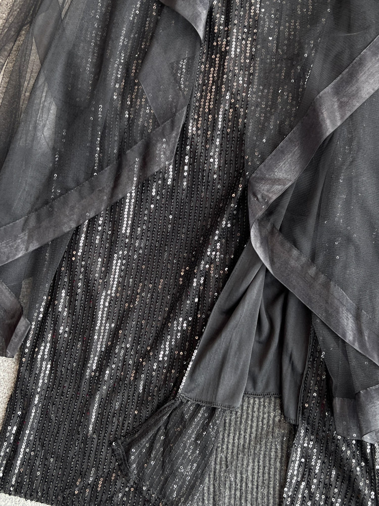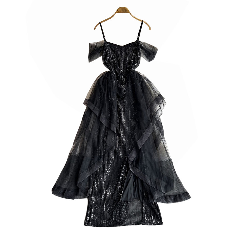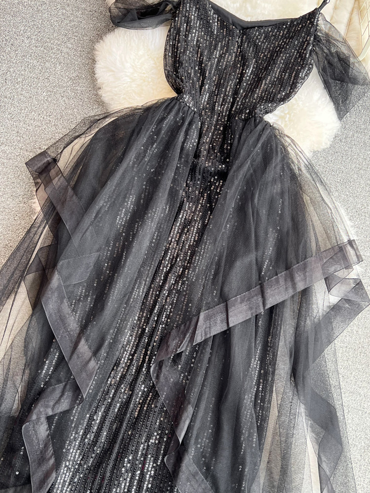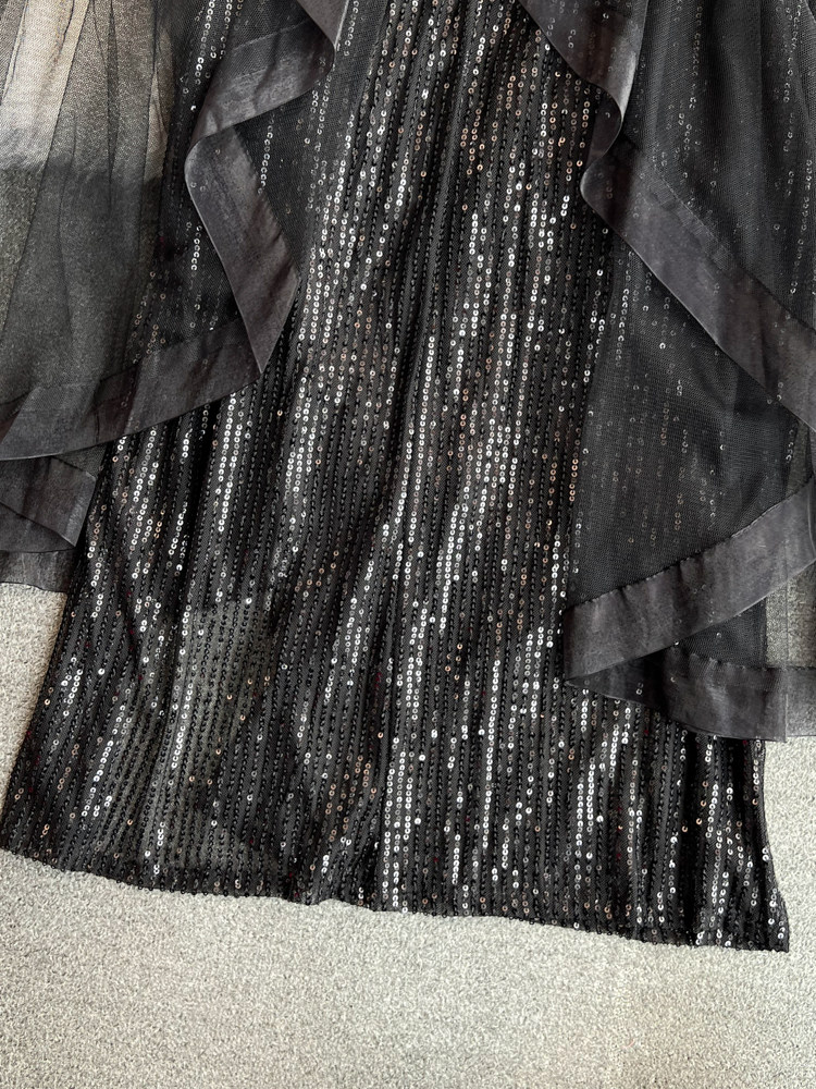 Топ без лямок, черное вечернее платье, блестки для ногтей, крой «рыбий хвост»