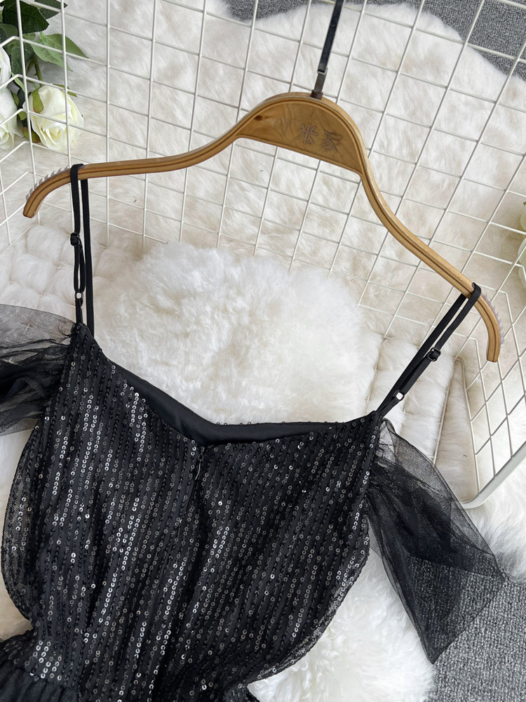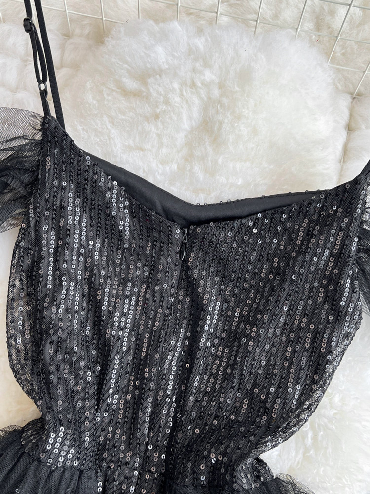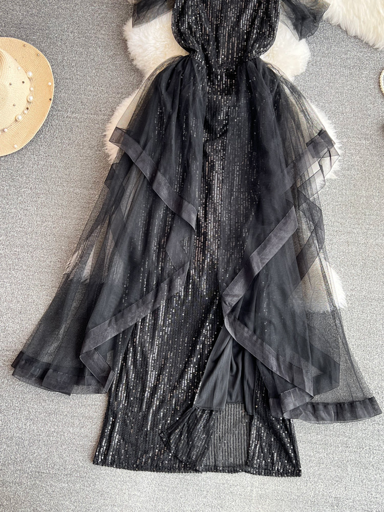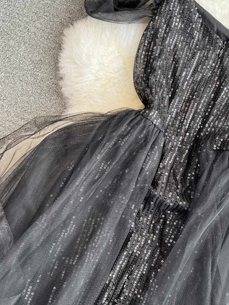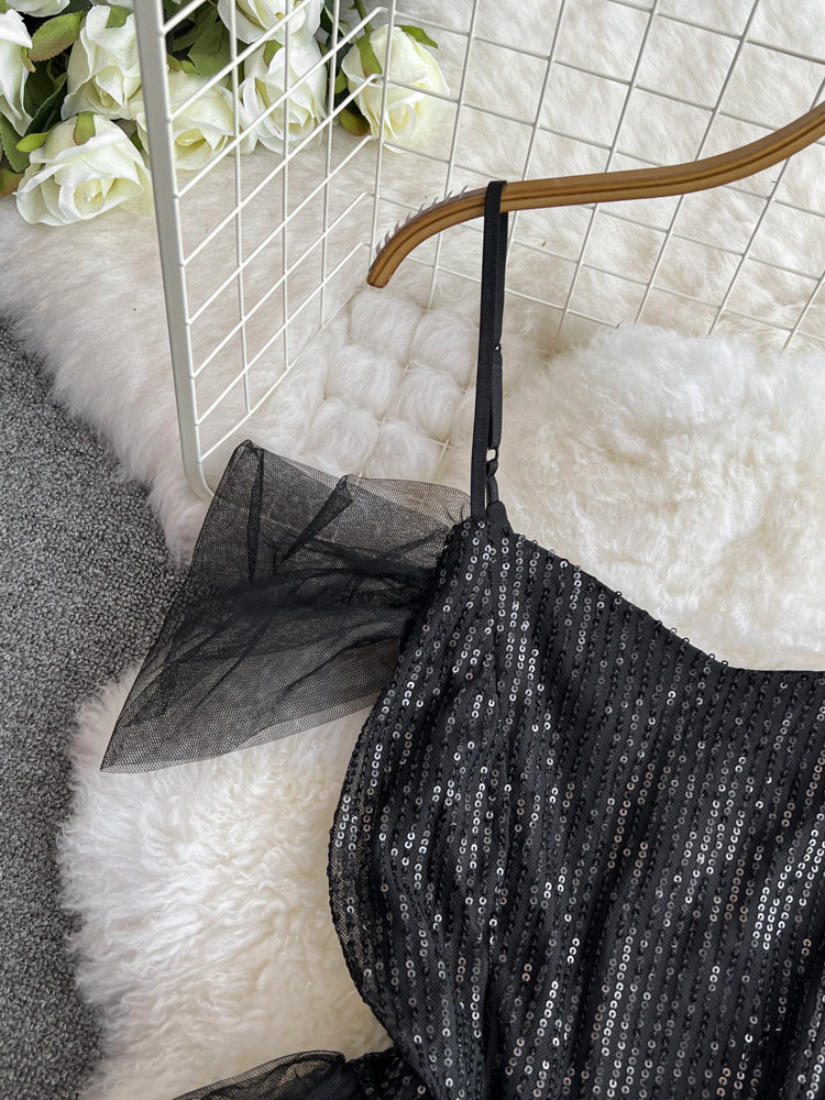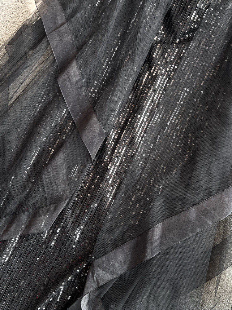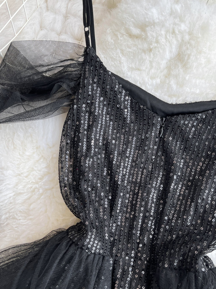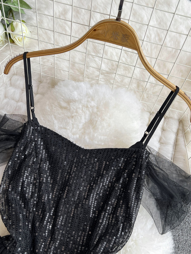 Топ без лямок, черное вечернее платье, блестки для ногтей, крой «рыбий хвост»