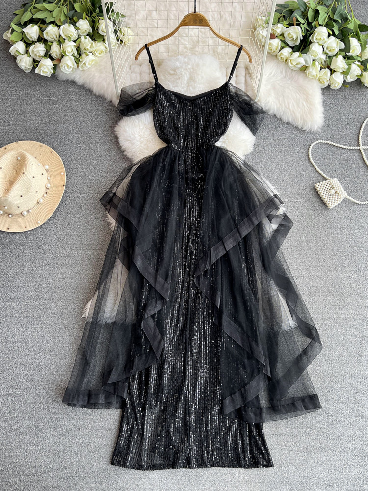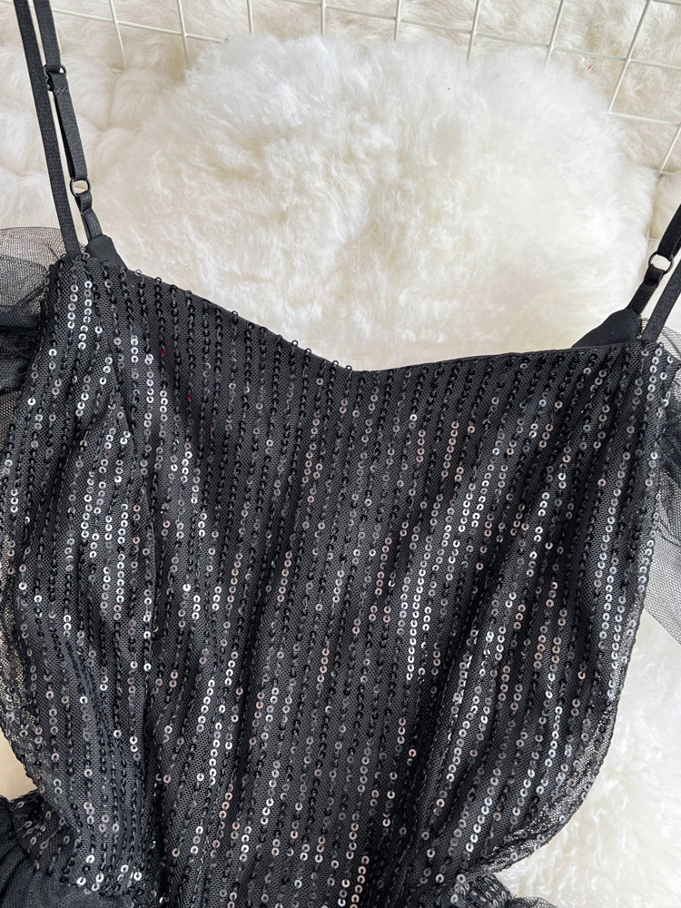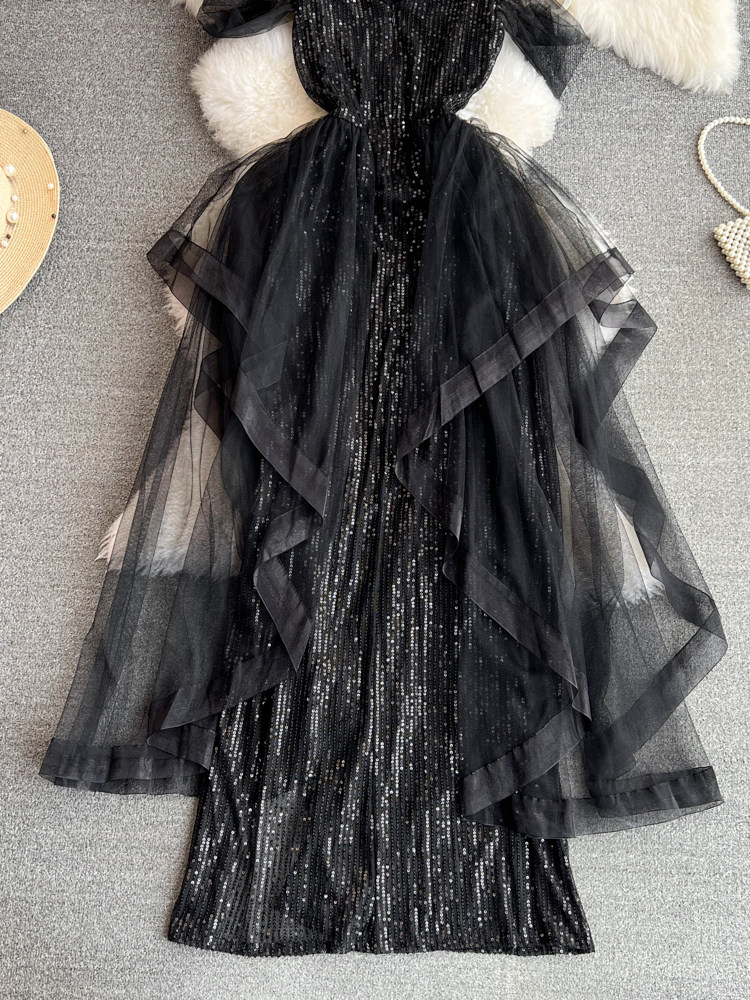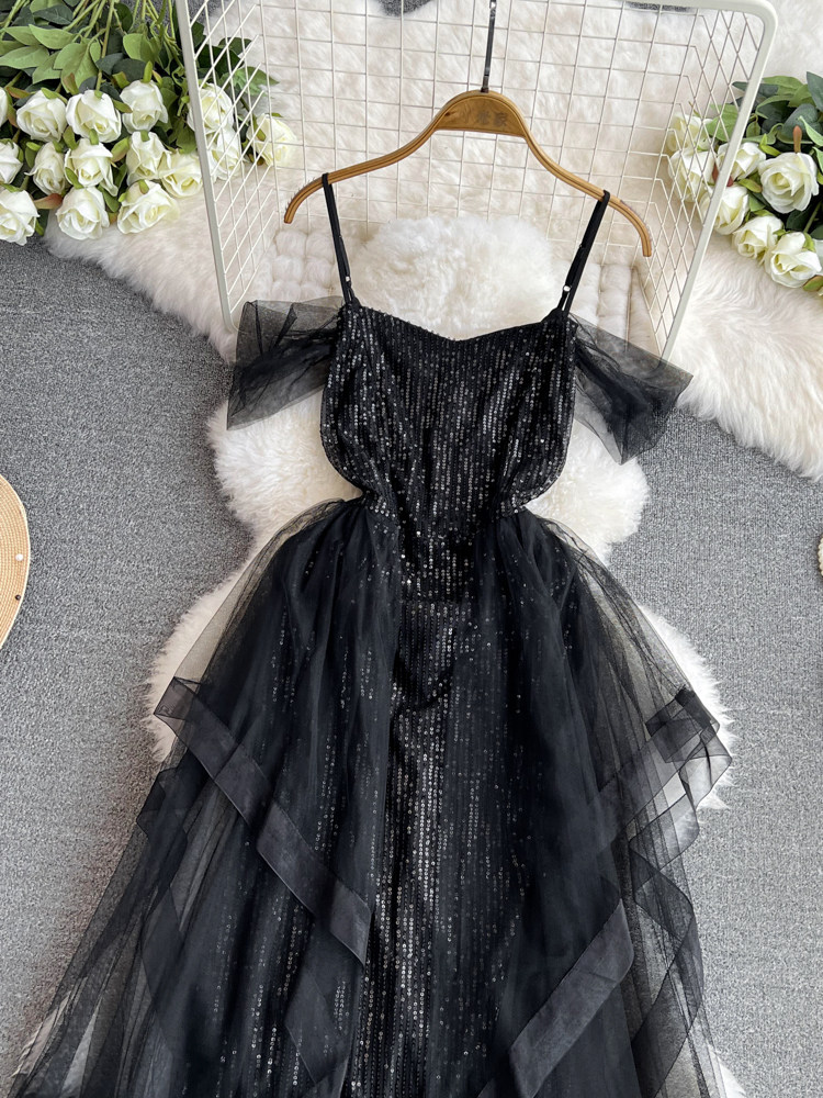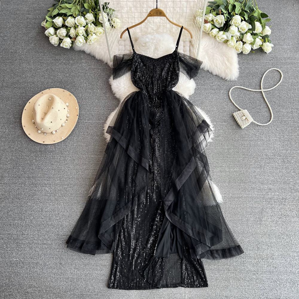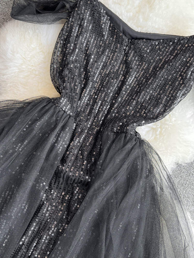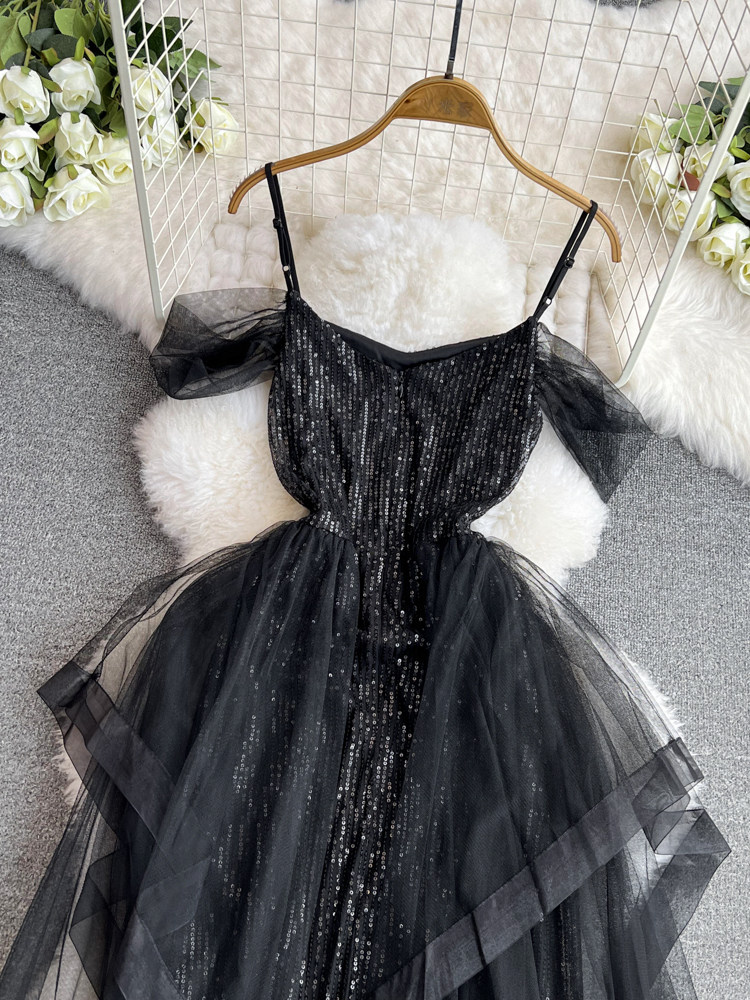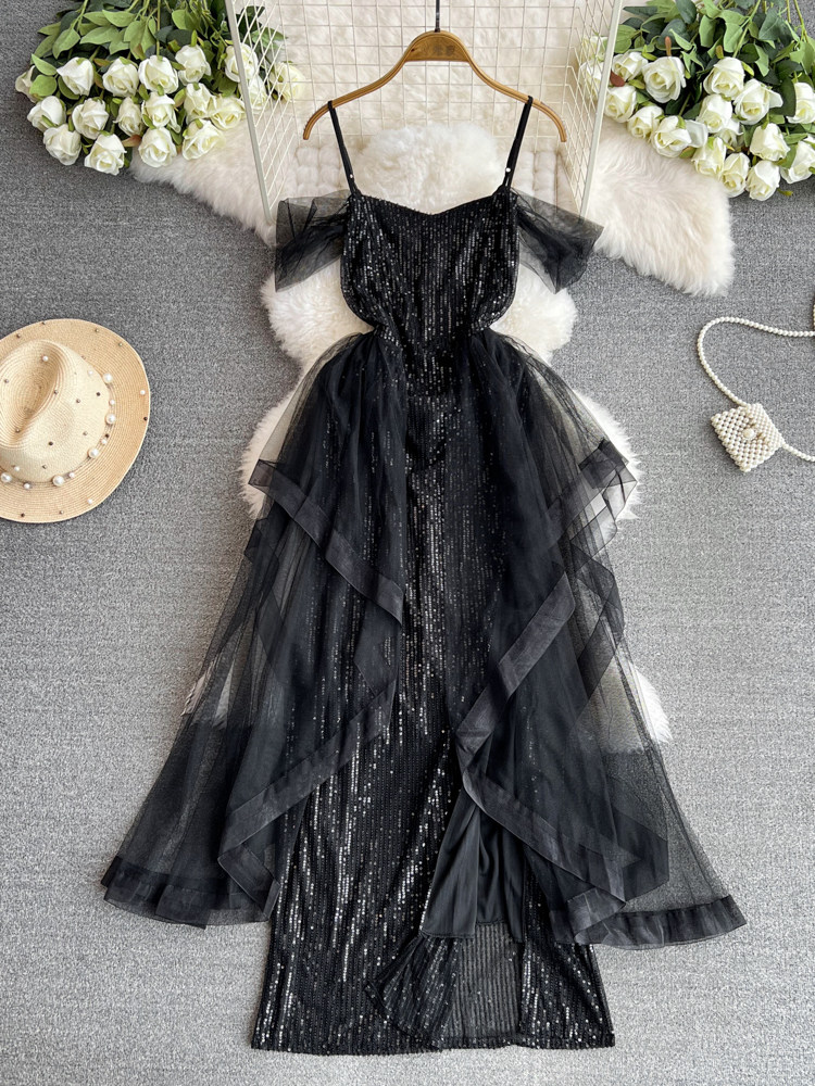 Топ без лямок, черное вечернее платье, блестки для ногтей, крой «рыбий хвост»