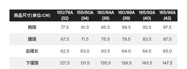 | Размер: | 150/76A (32), 155/80A (34), 160/84A (36), 160/88A (38), 165/92A (40), 165/96A (42) |