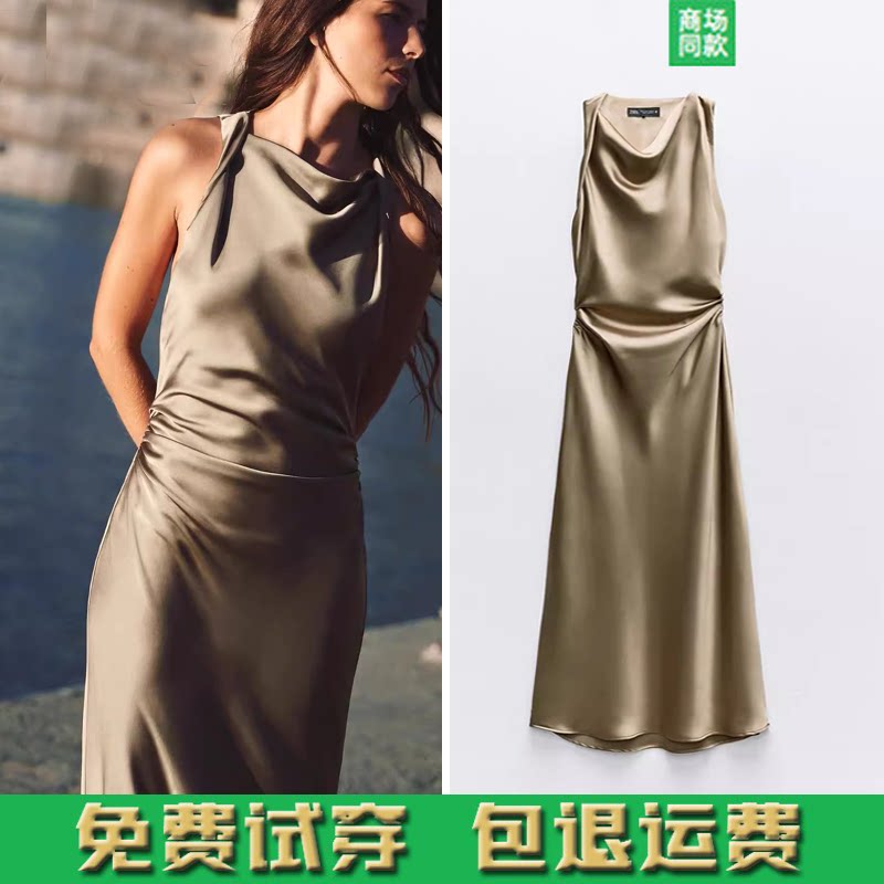 Женское сексуальное шелковое атласное платье миди без рукавов 8372090 2124305