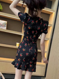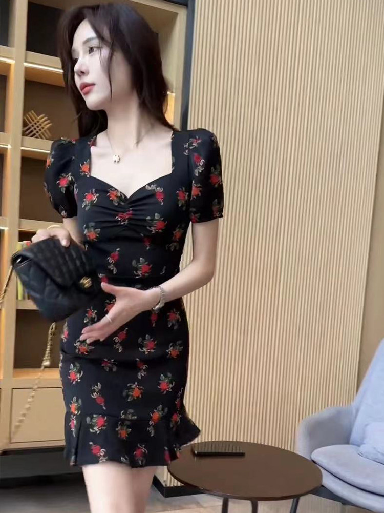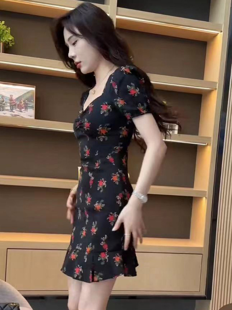 Платье, летний приталенный ростомер, юбка, V-образный вырез, в западном стиле, 2024 года, облегающий крой