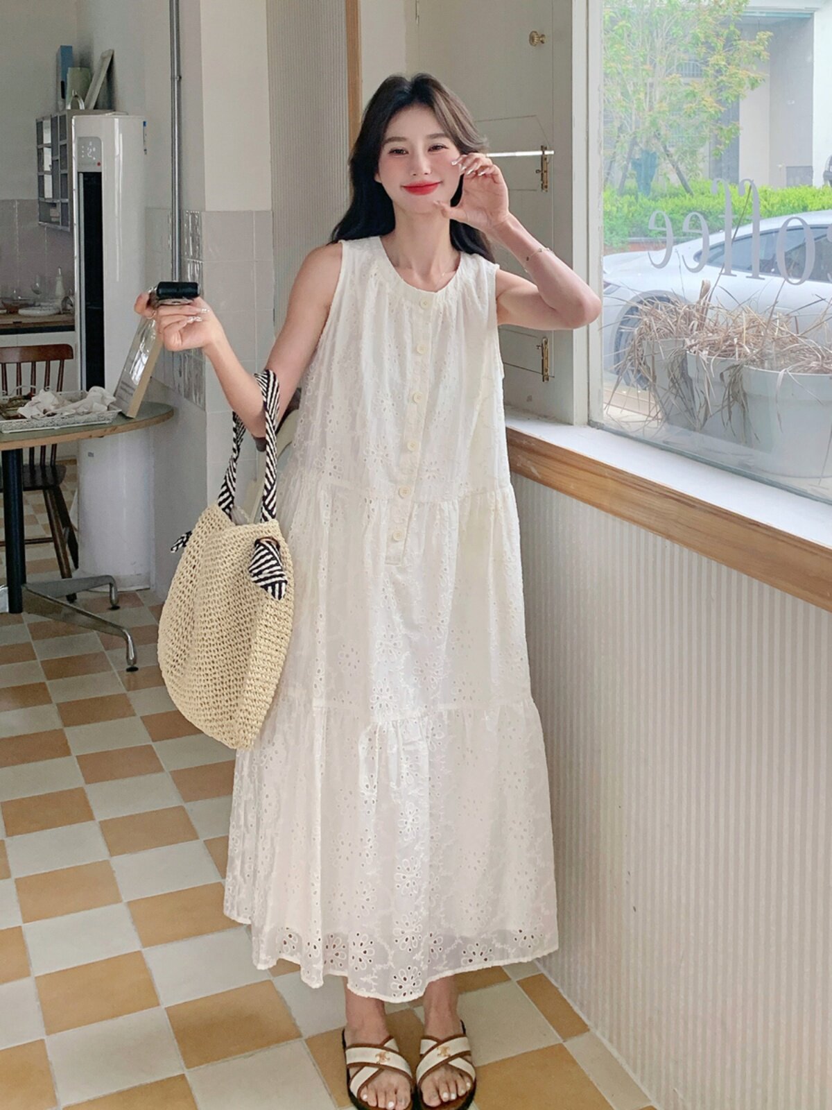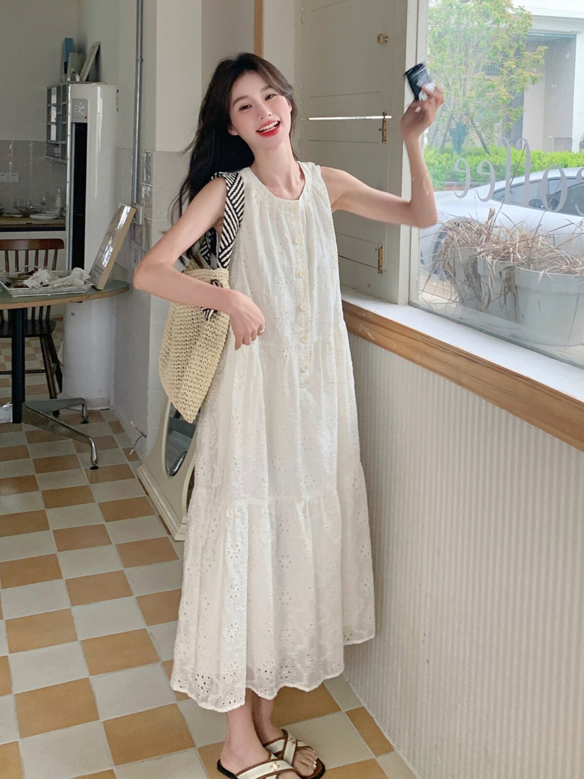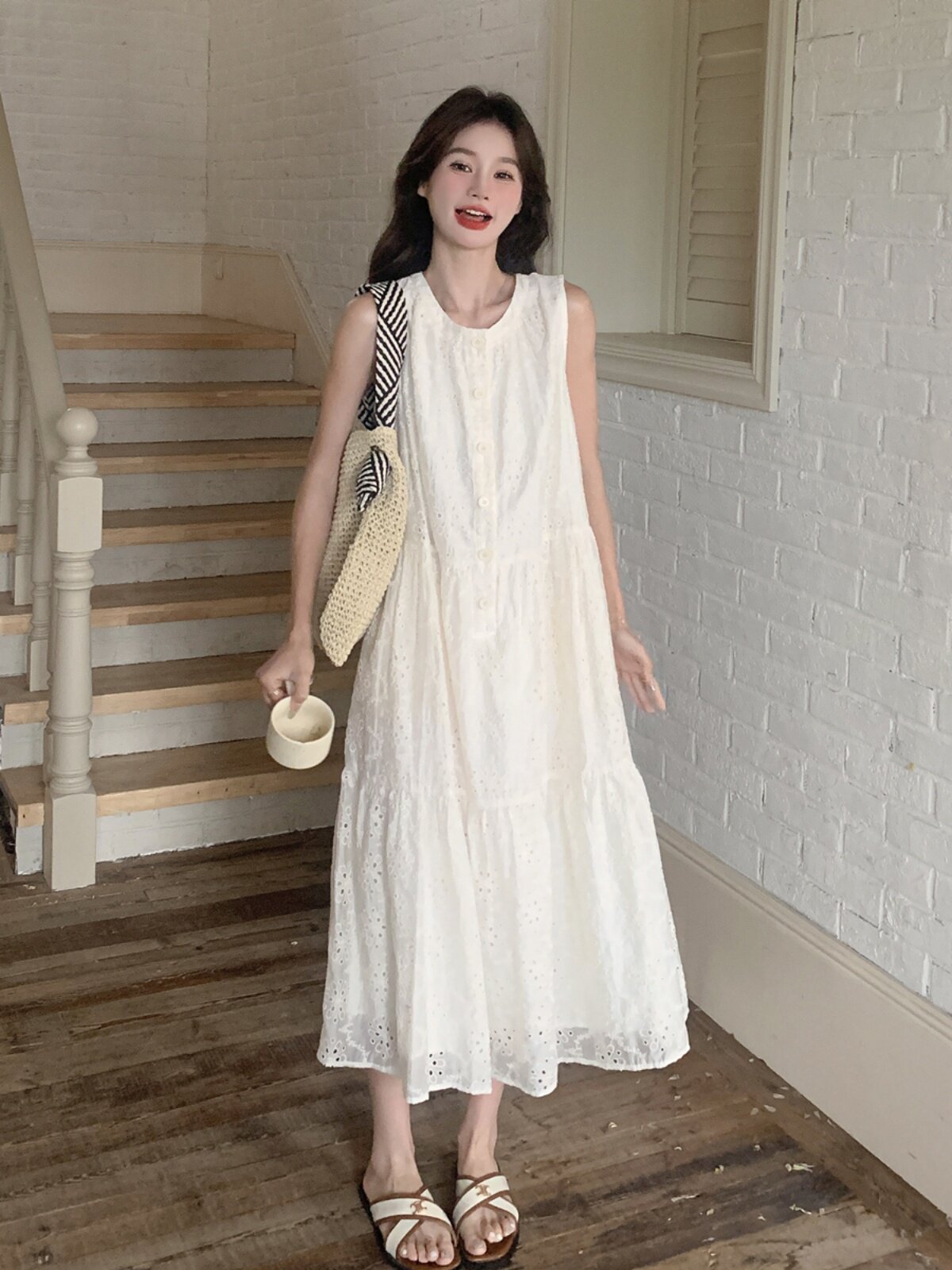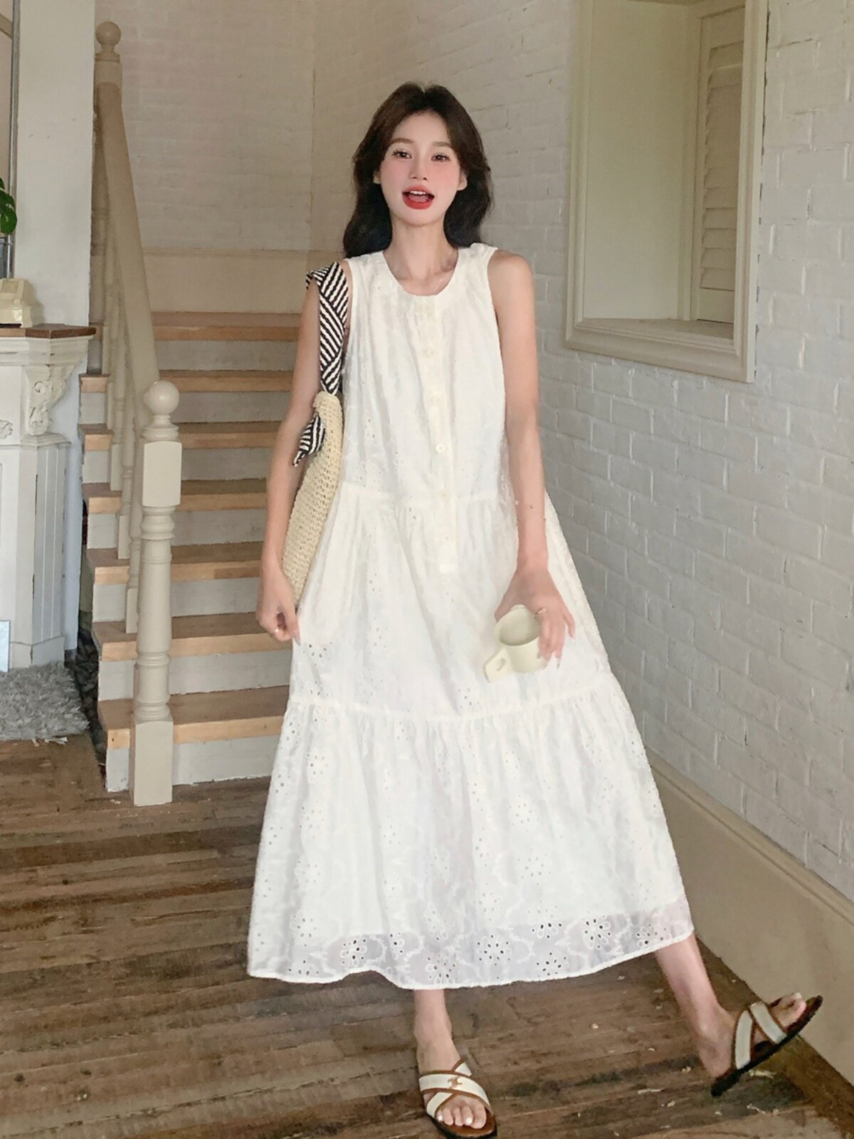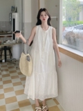 Белое платье без рукавов без рукавов, летняя юбка, французский стиль