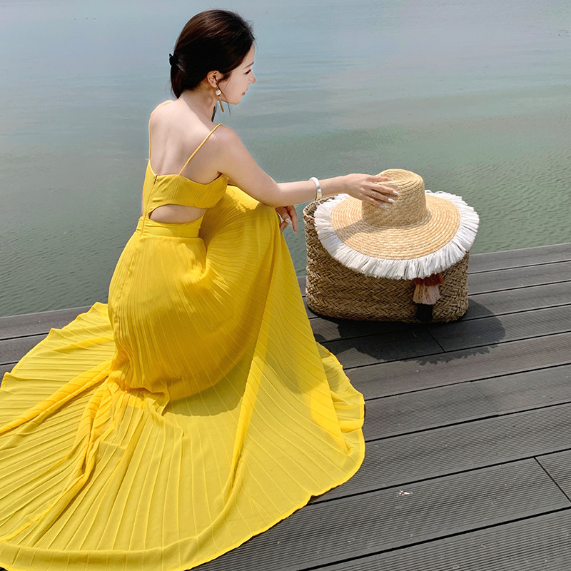 Дизайнерское вечернее платье, желтое платье-комбинация, пляжное платье, длинная юбка, тренд сезона, с открытой спиной