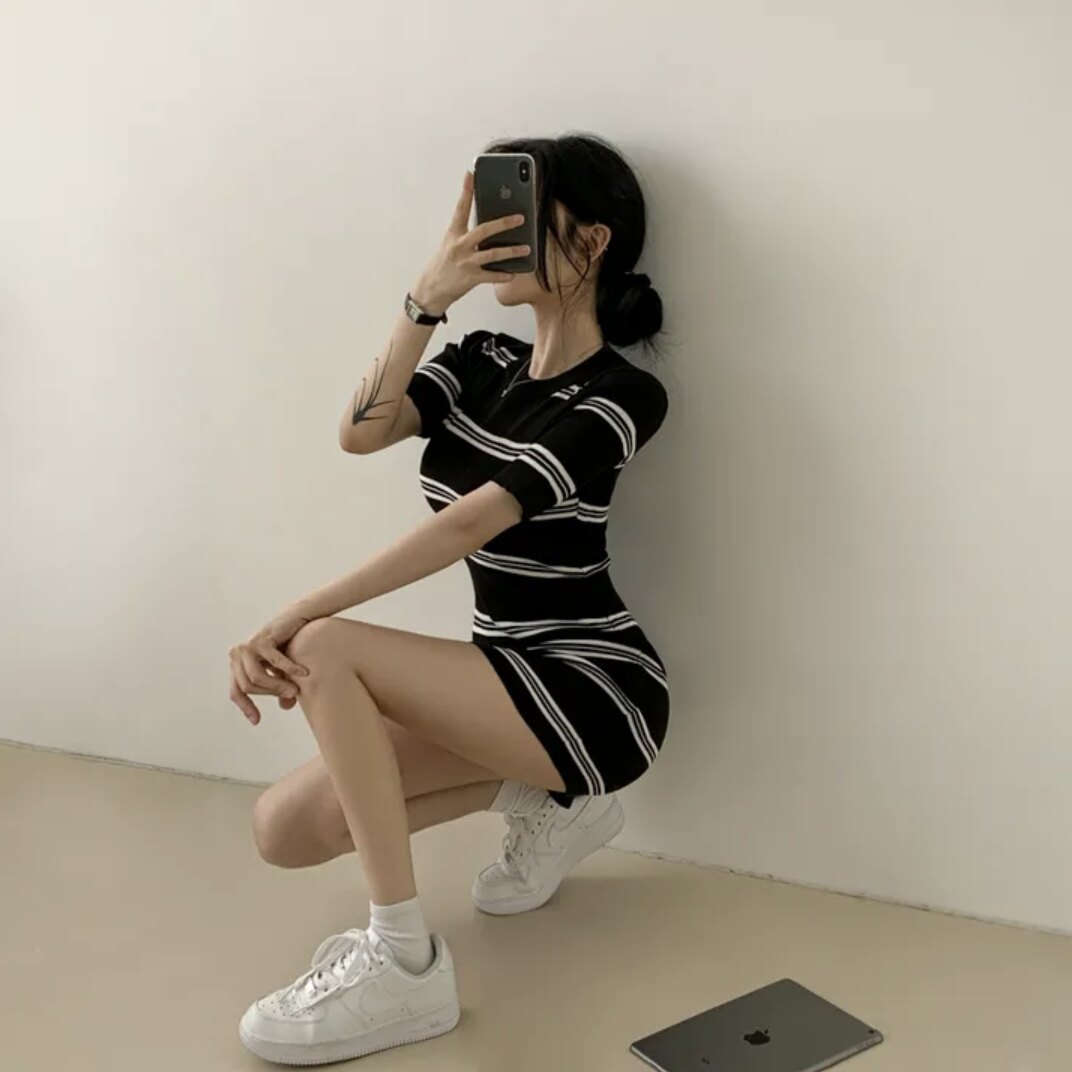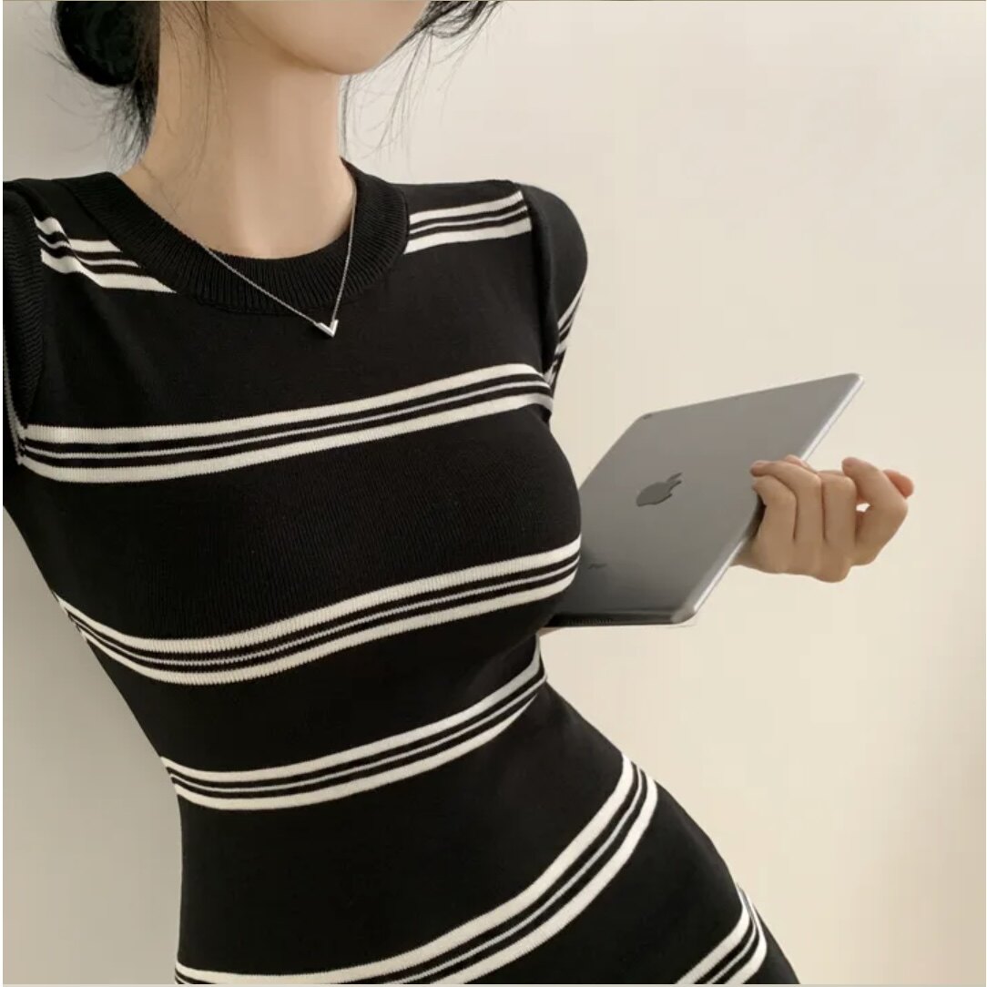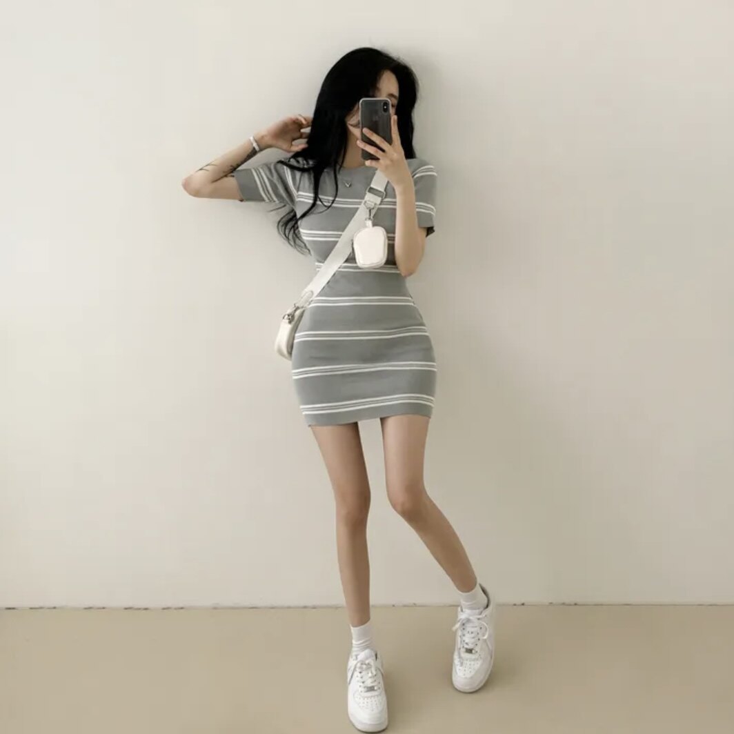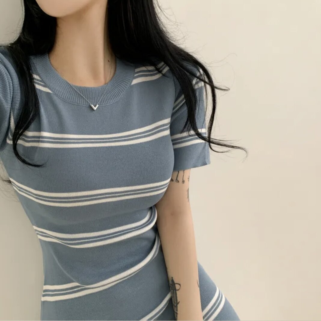 Летнее эластичное приталенное трикотажное платье, в корейском стиле, китайский стиль, с акцентом на бедрах