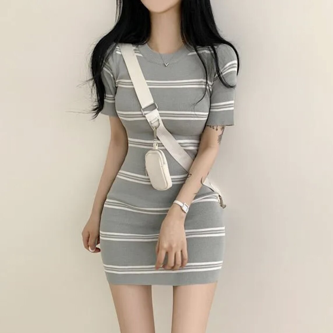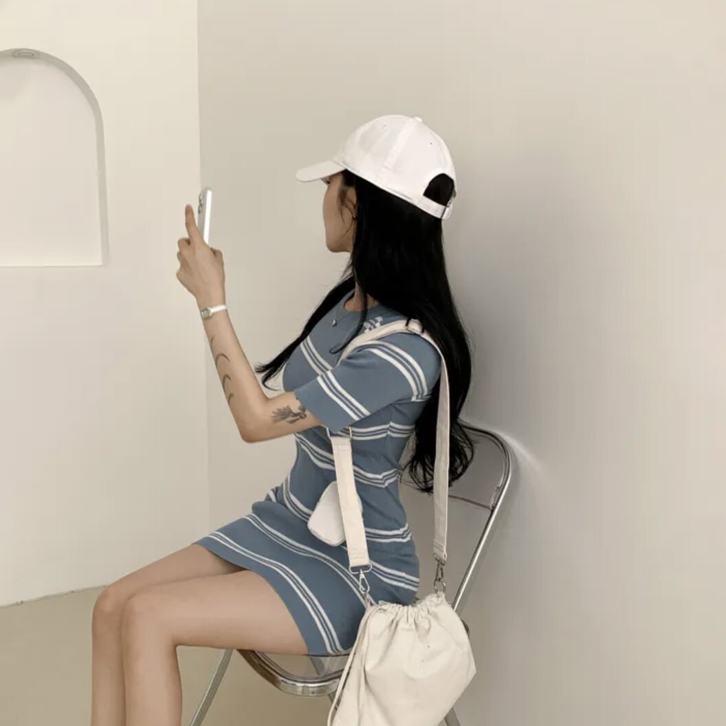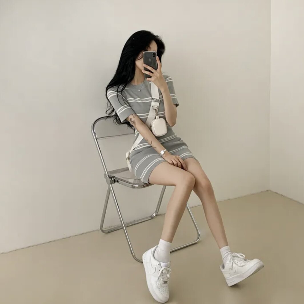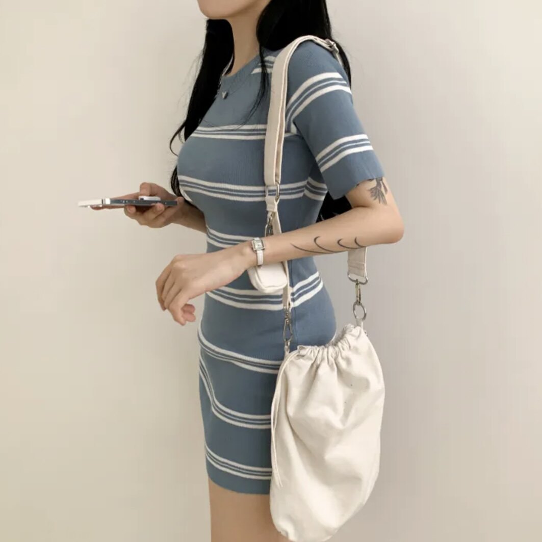 Летнее эластичное приталенное трикотажное платье, в корейском стиле, китайский стиль, с акцентом на бедрах