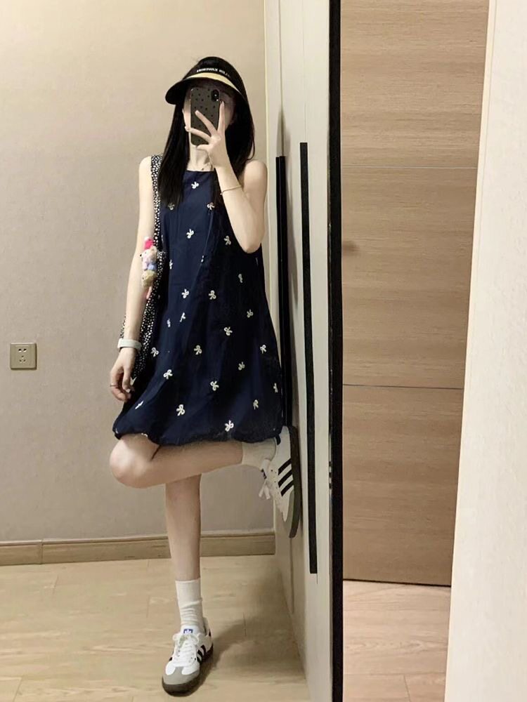 Платье с бантиком, дизайнерская кукла без рукавов, мини-юбка, юбка, с вышивкой, свободный крой, яркий броский стиль, тренд сезона