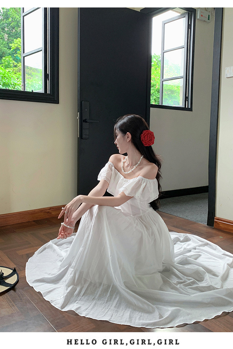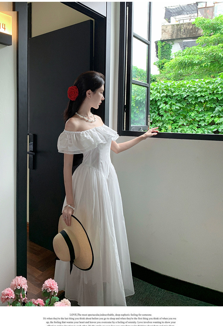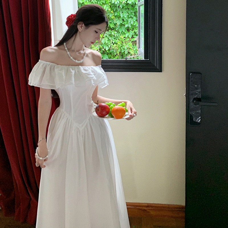 Ретро белое платье, юбка, французский стиль, открытые плечи