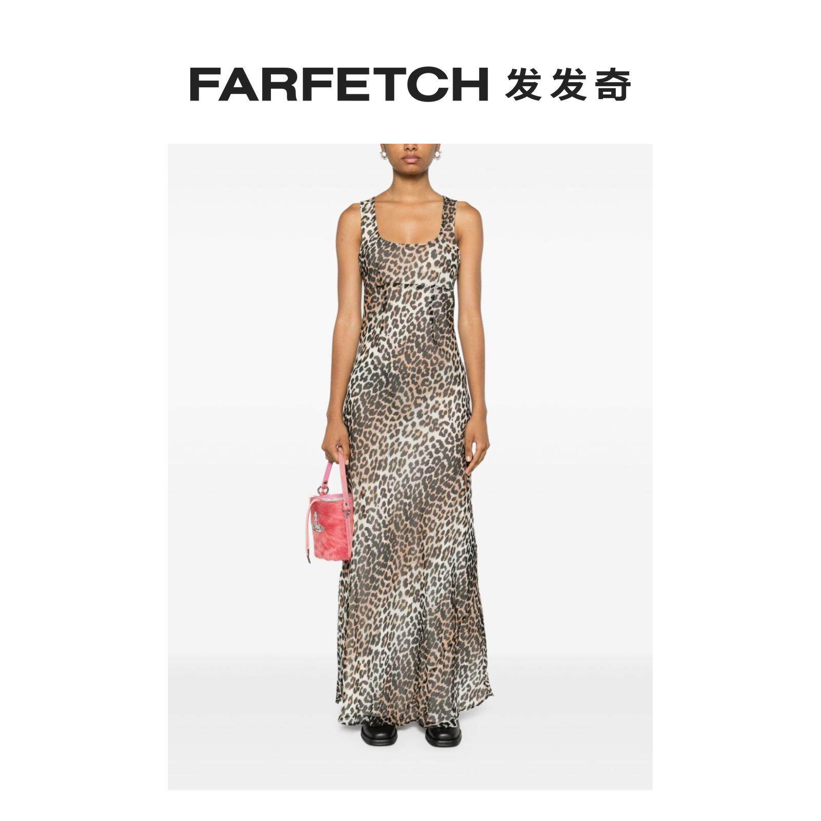 Ganni Ladies Leopard Permance Long Dress Farbetch