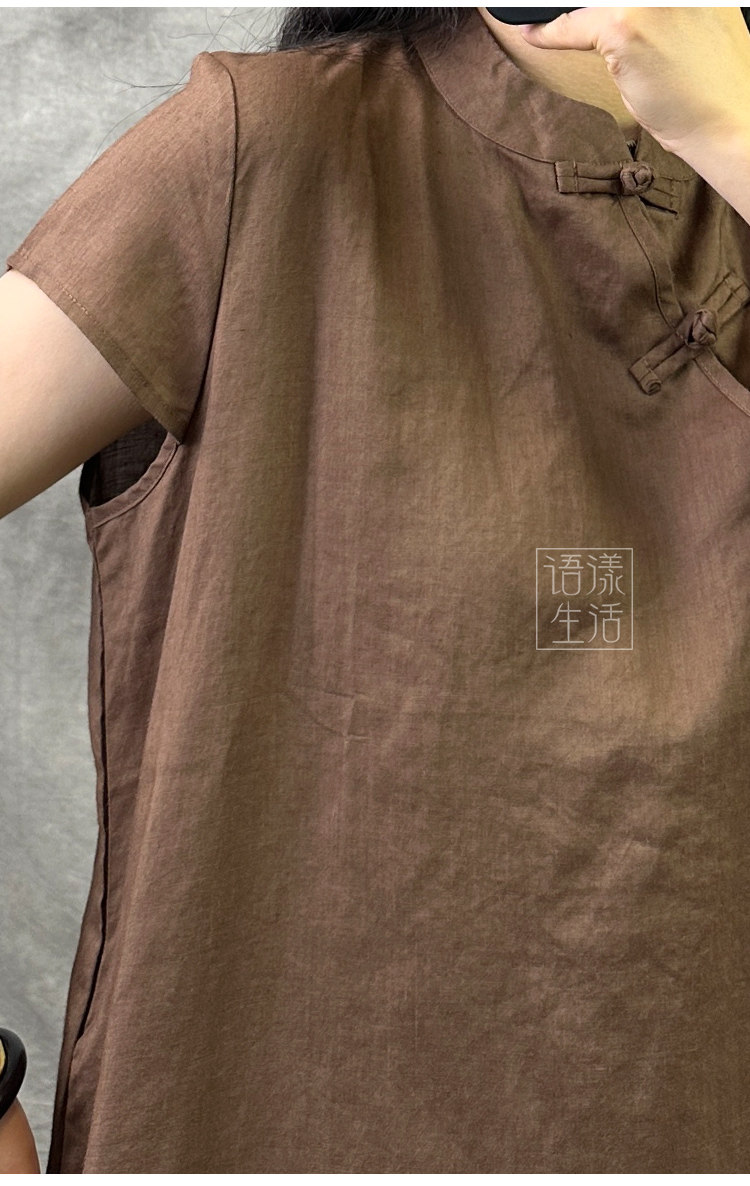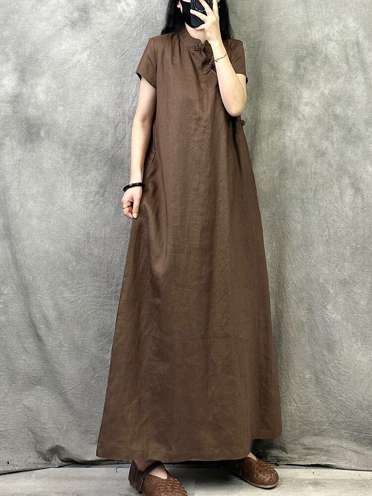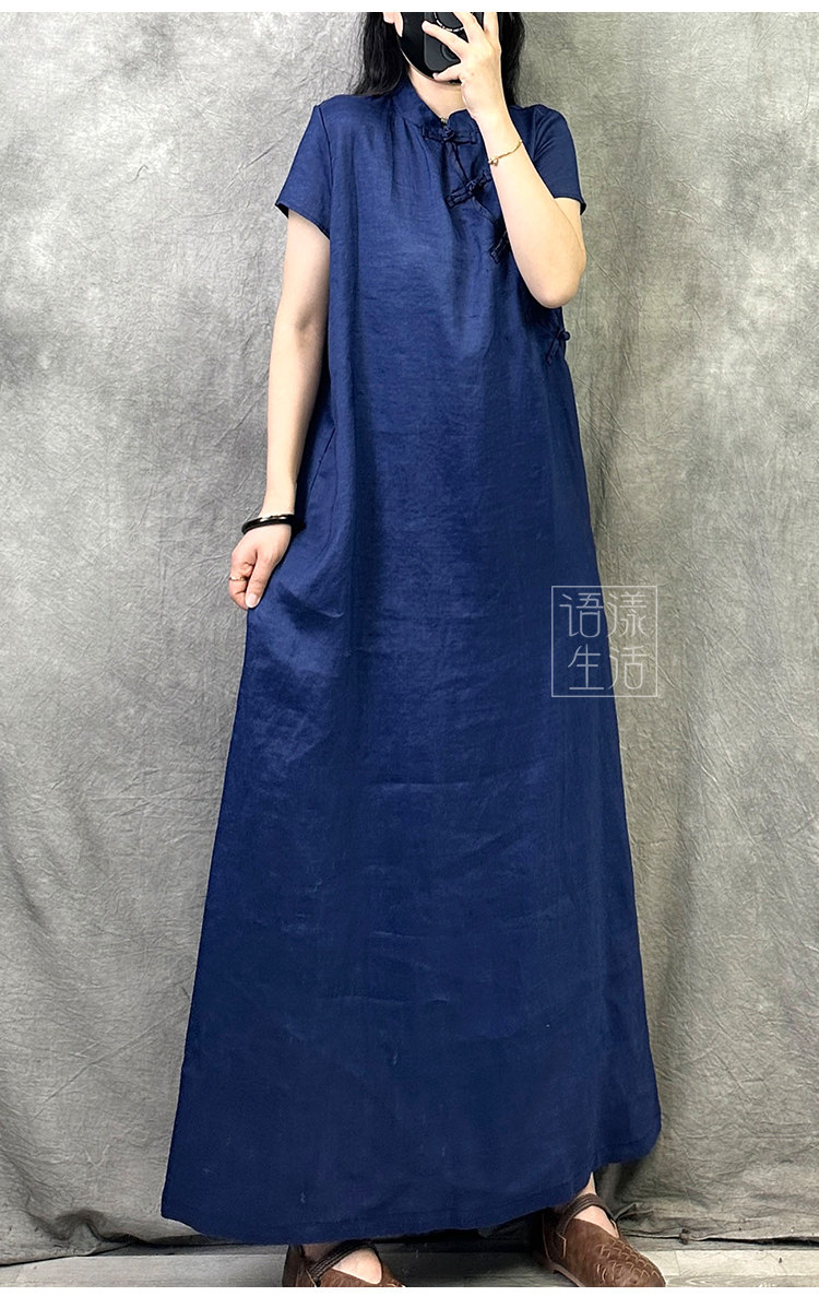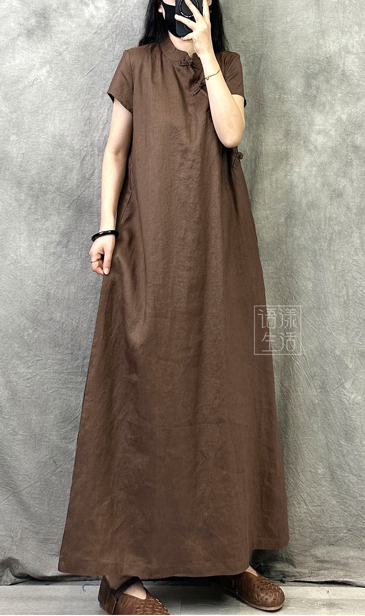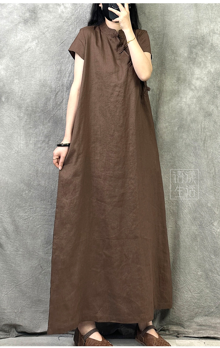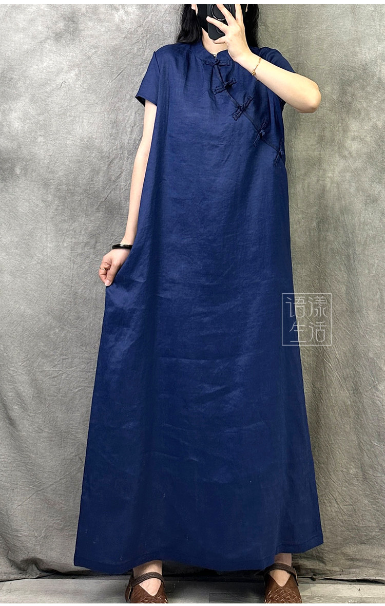 Ципао, летнее платье, ретро длинная юбка, китайский стиль, из хлопка и льна, оверсайз