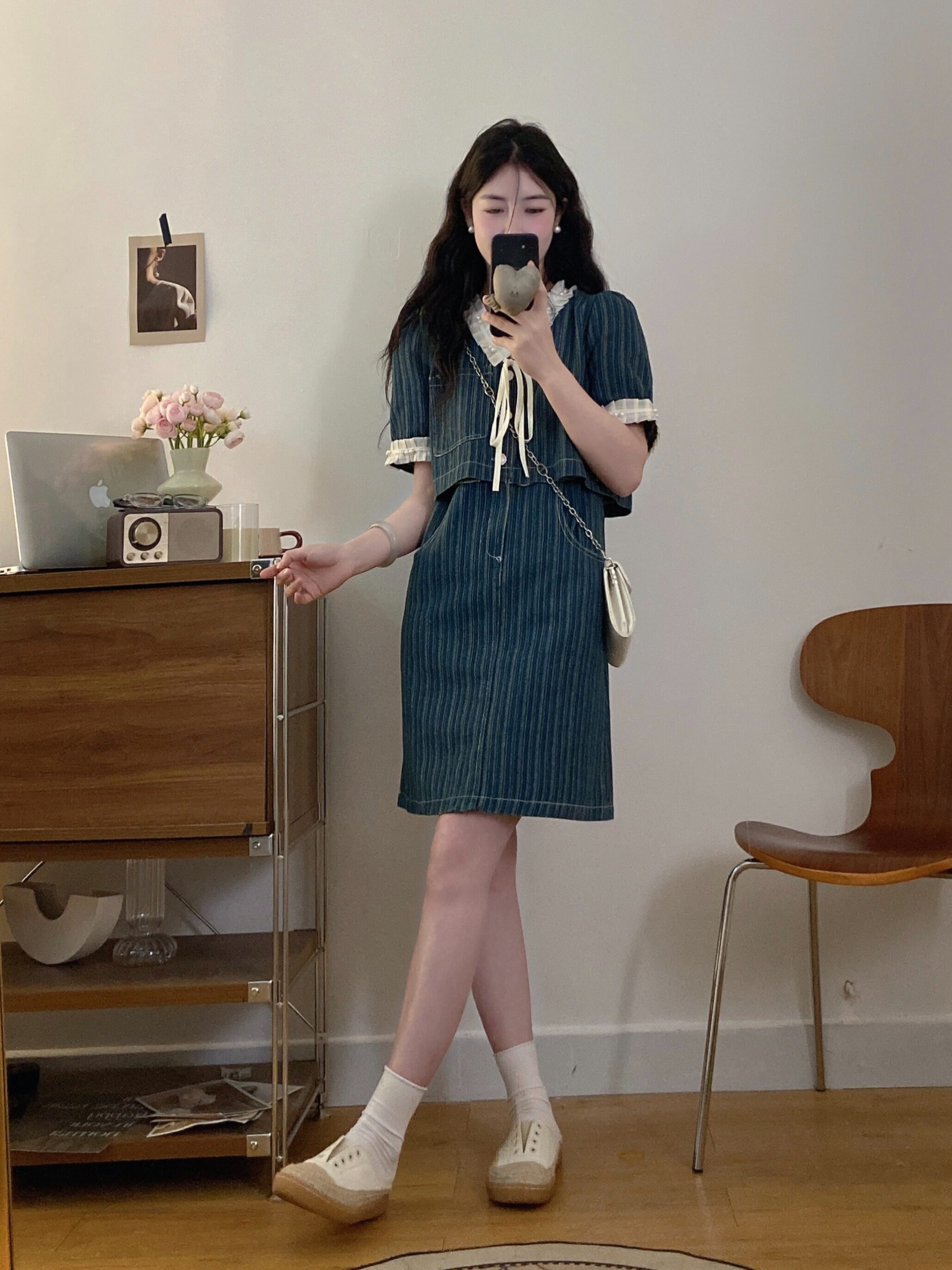Летний ретро комплект, джинсовое платье, юбка, большой размер, французский стиль, А-силуэт
