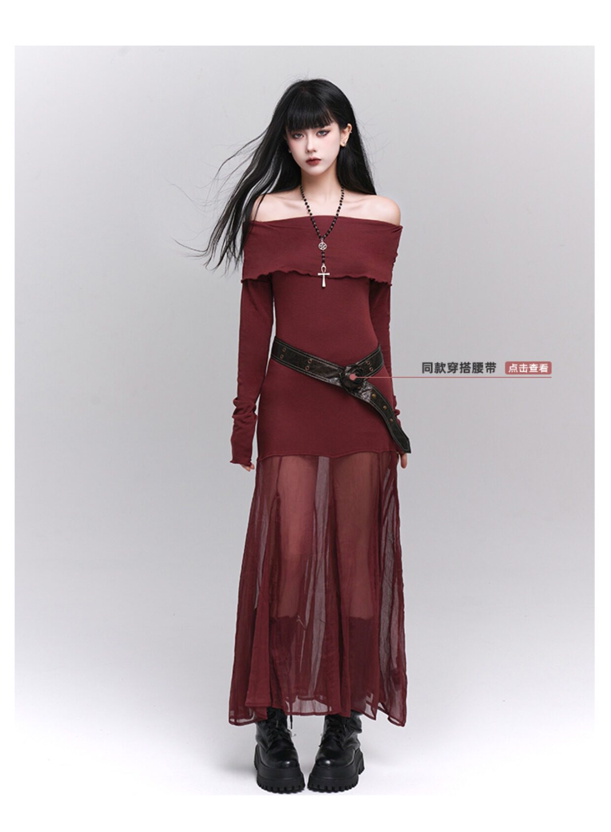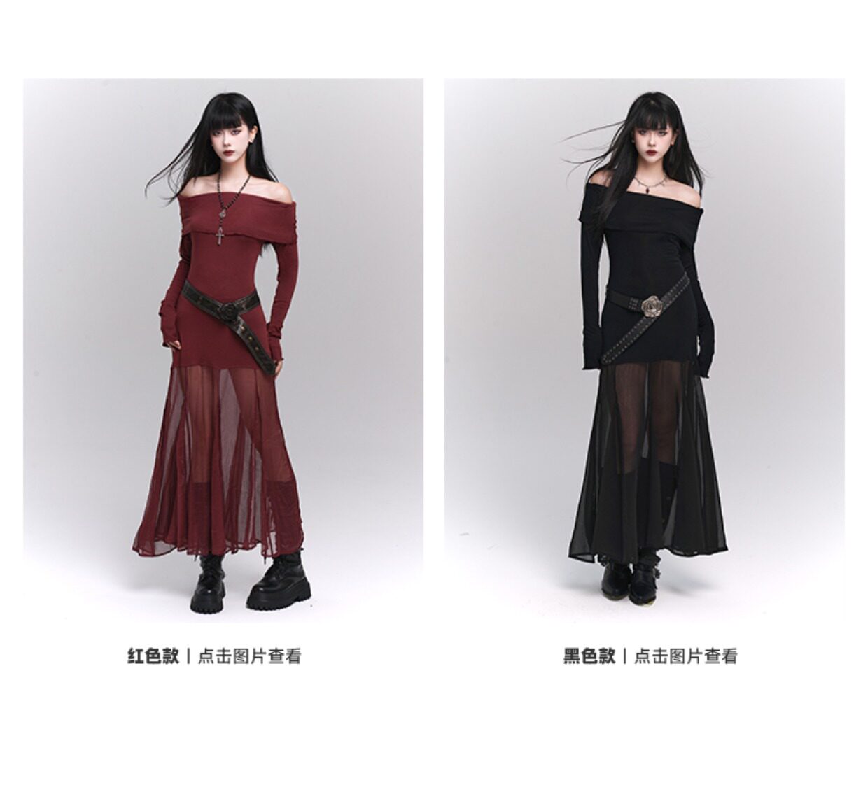 幽灵少女 Осеннее платье, длинная юбка, открытые плечи, длина макси