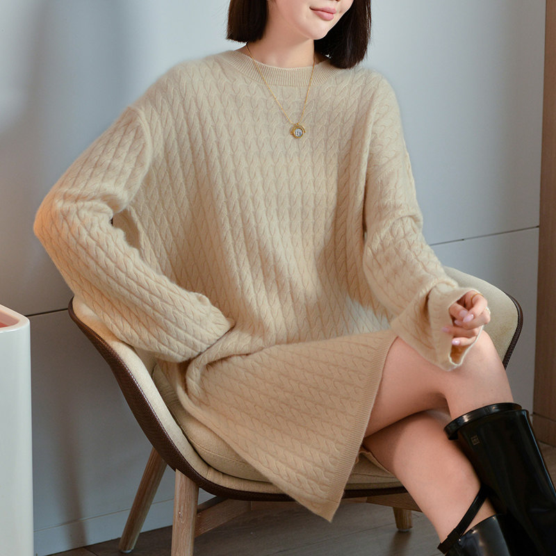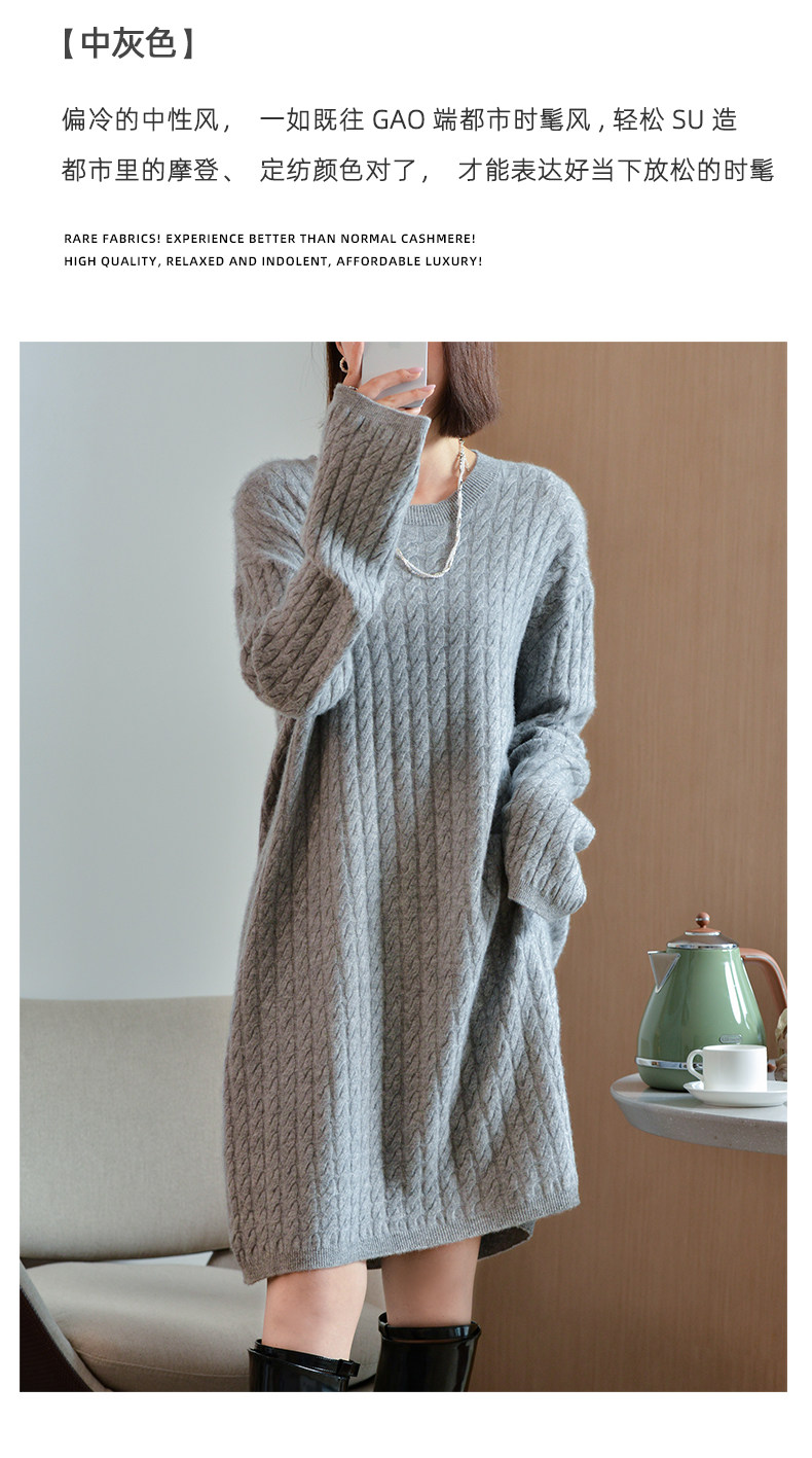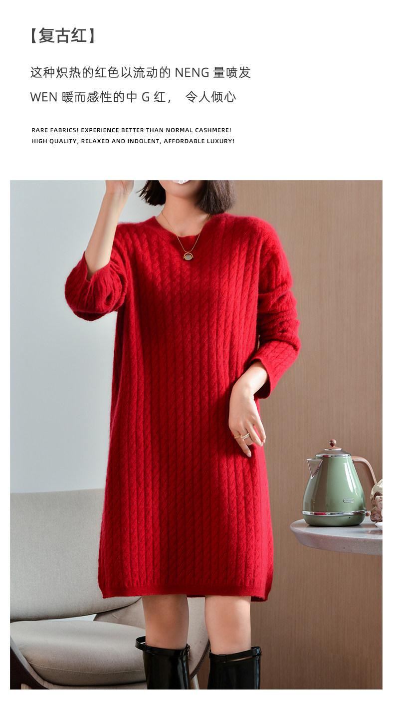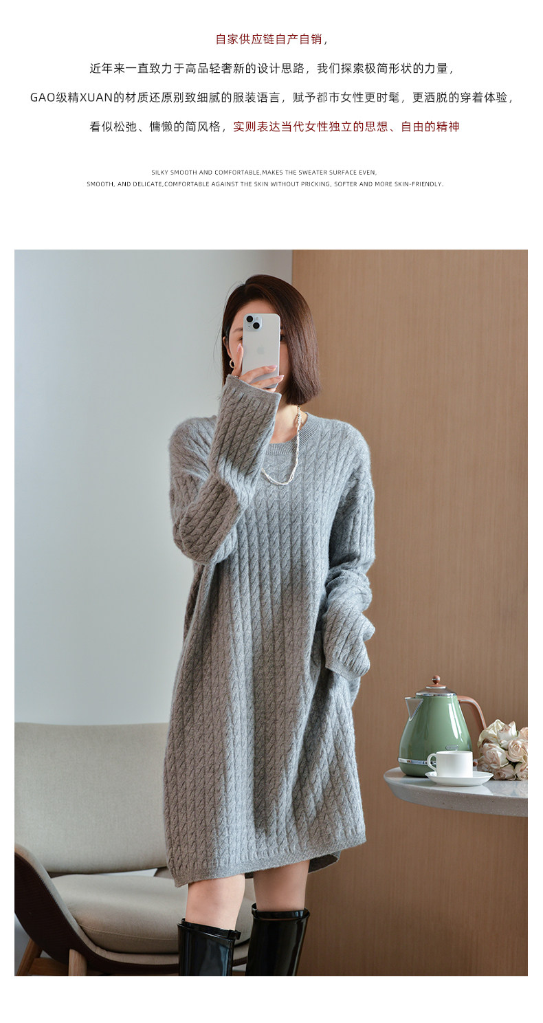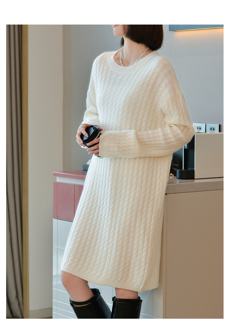 Шерстяное платье с круглым воротником, платье-свитер, кашемировая юбка, увеличенная толщина, яркий броский стиль, свободный крой