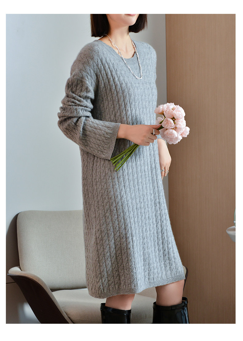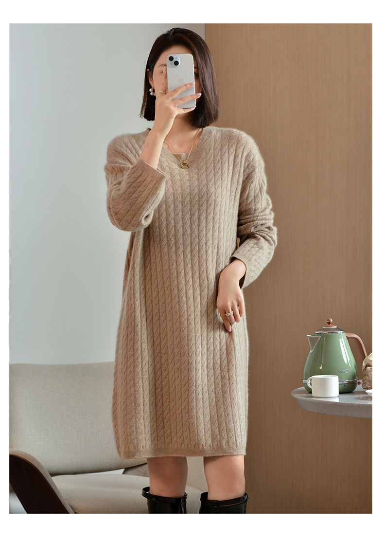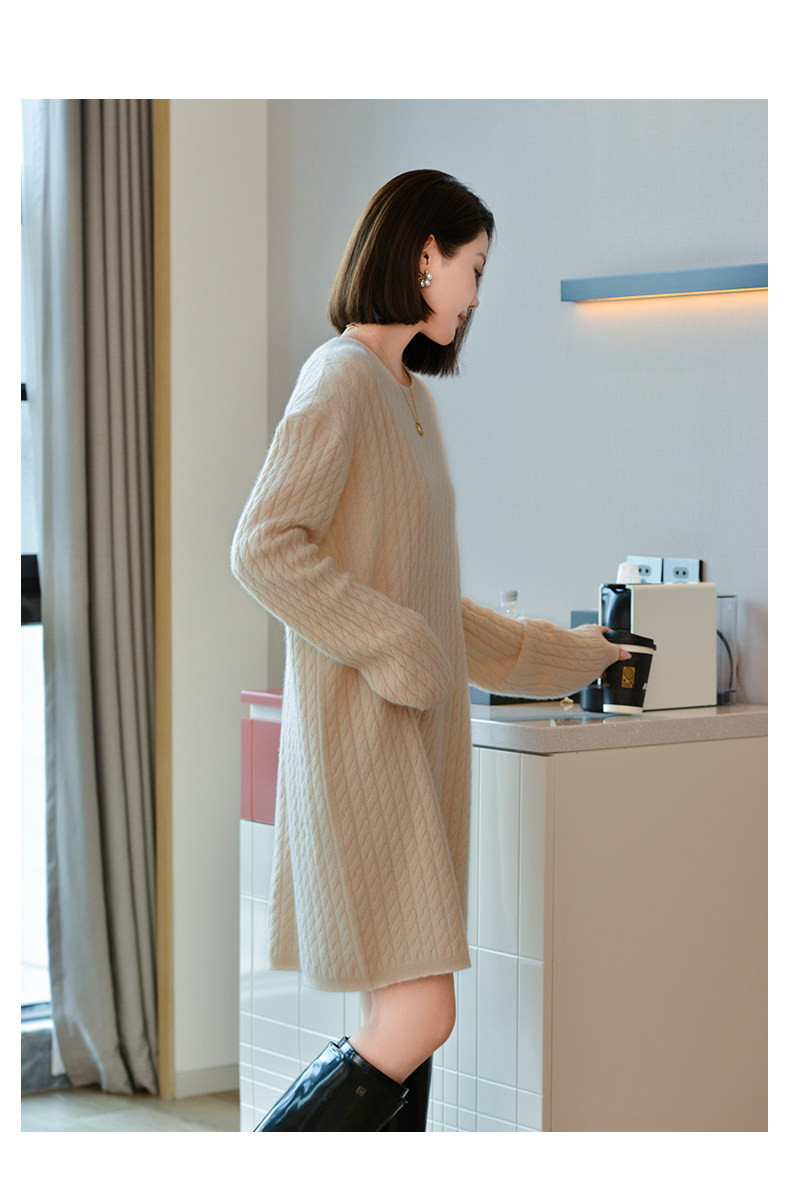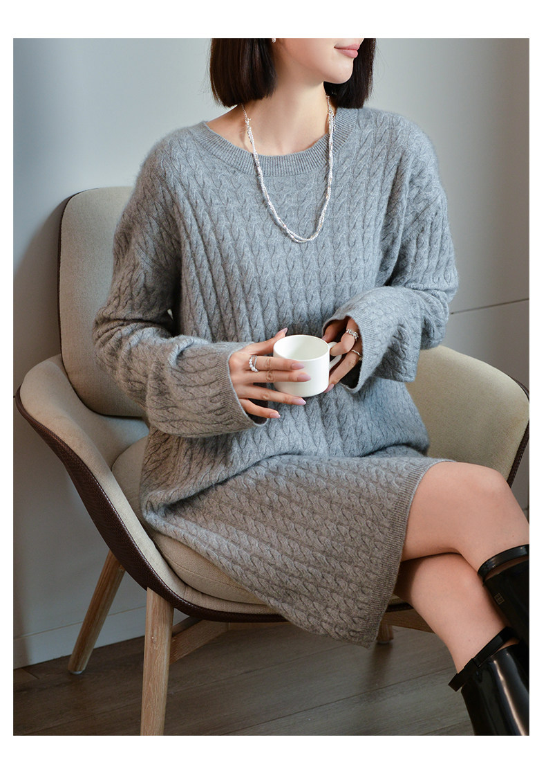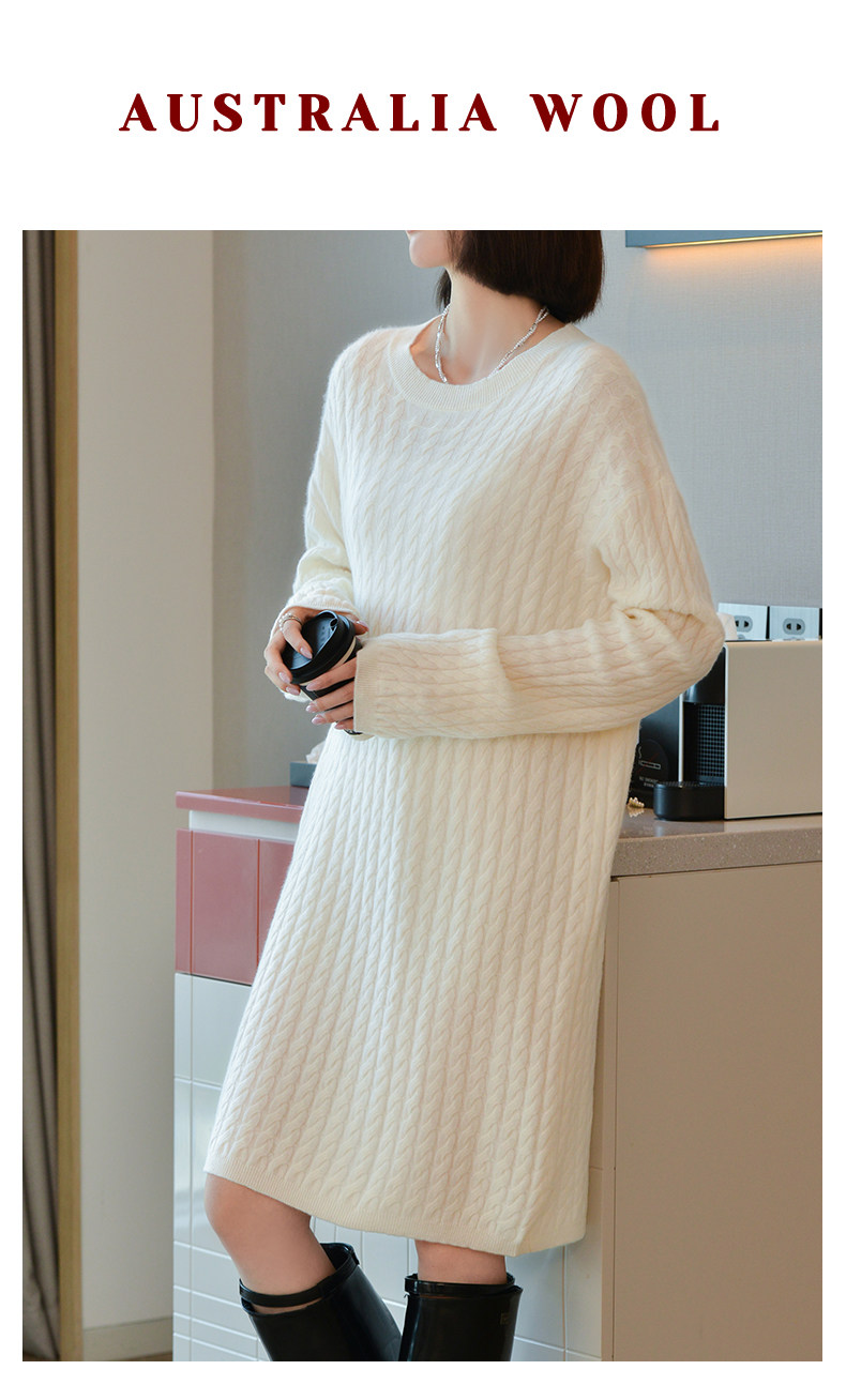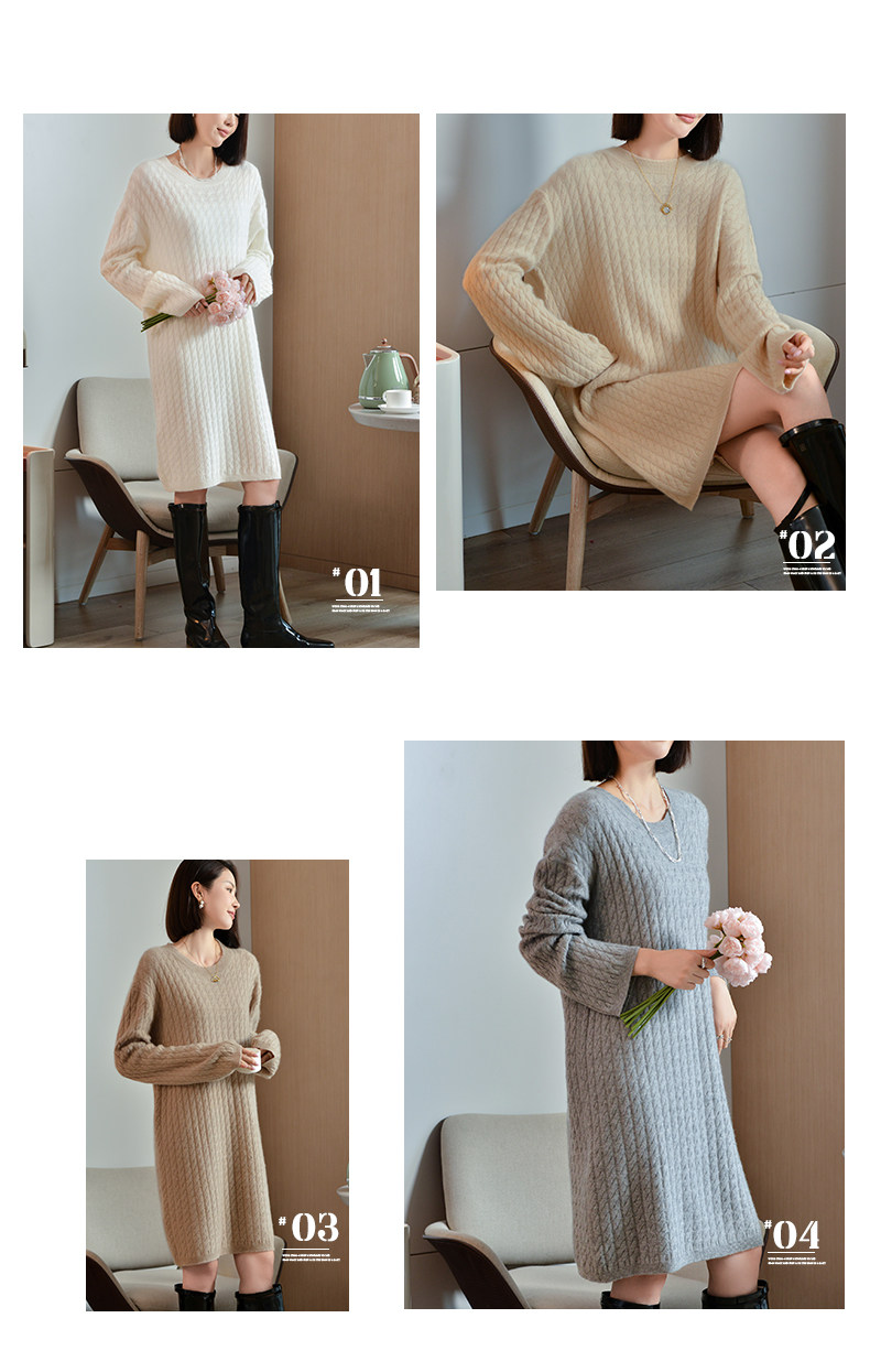 Шерстяное платье с круглым воротником, платье-свитер, кашемировая юбка, увеличенная толщина, яркий броский стиль, свободный крой