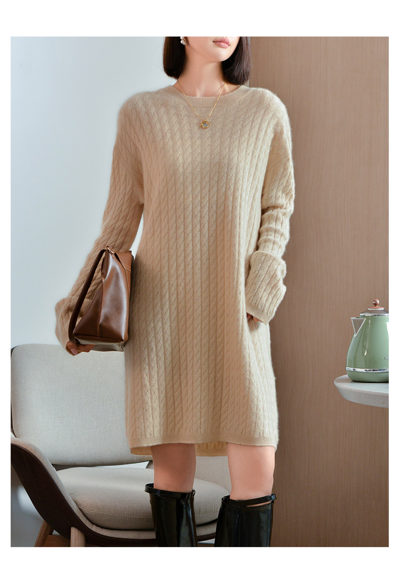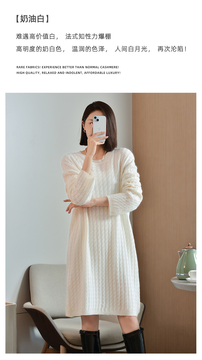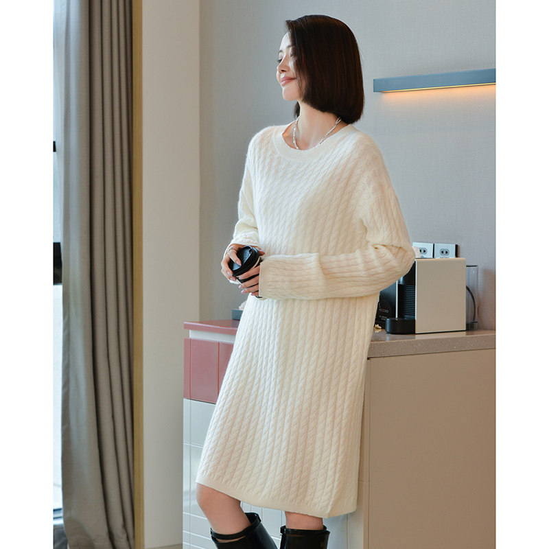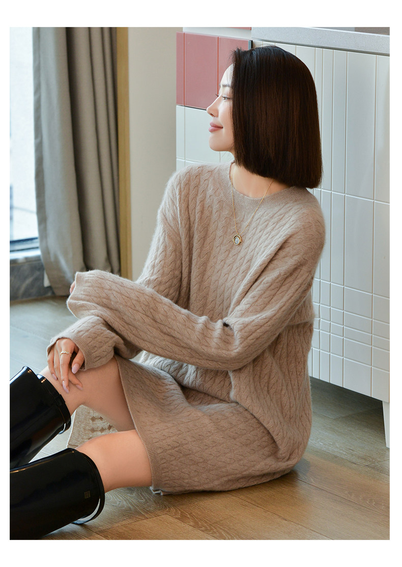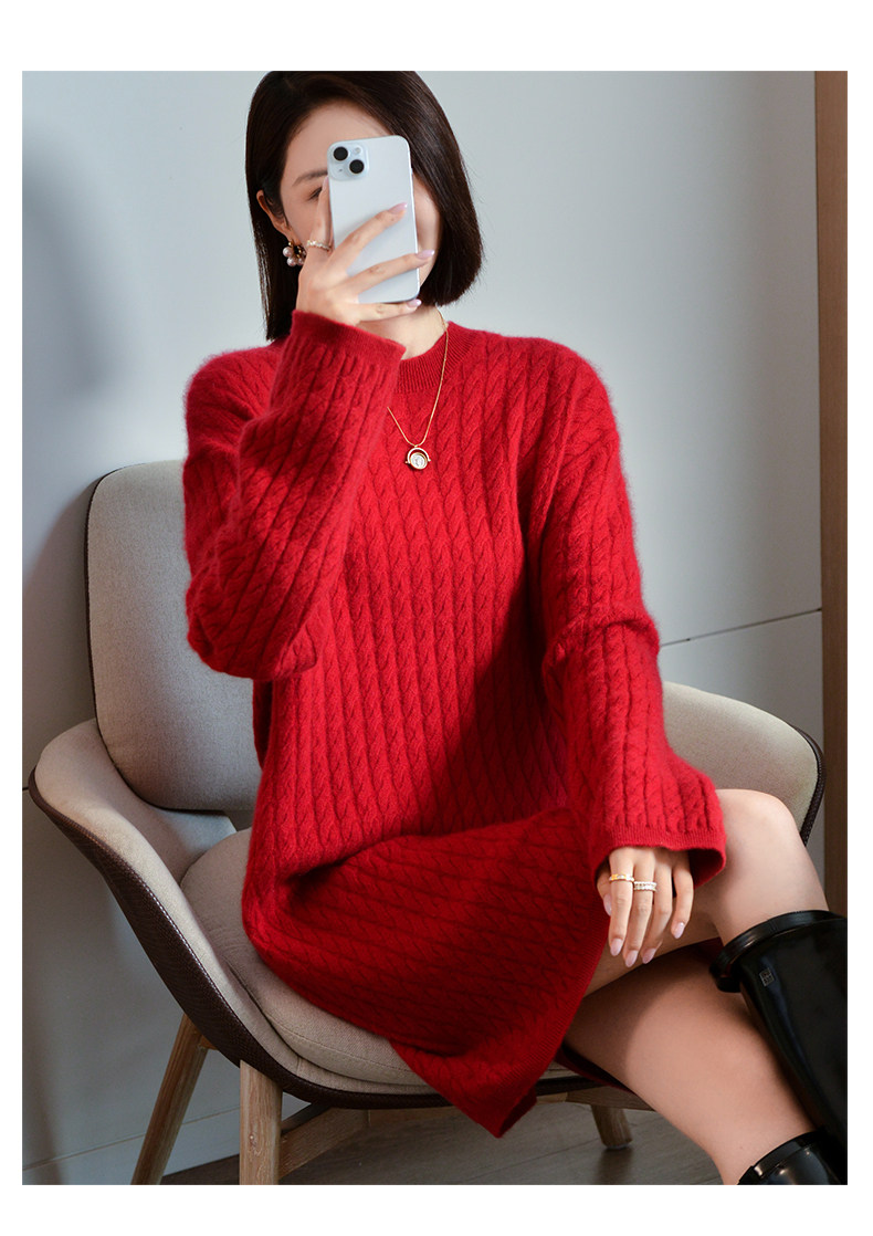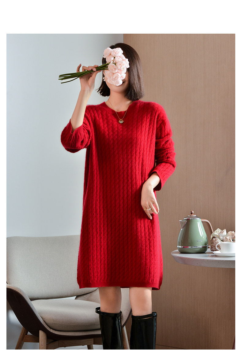 Шерстяное платье с круглым воротником, платье-свитер, кашемировая юбка, увеличенная толщина, яркий броский стиль, свободный крой
