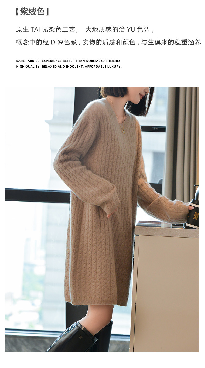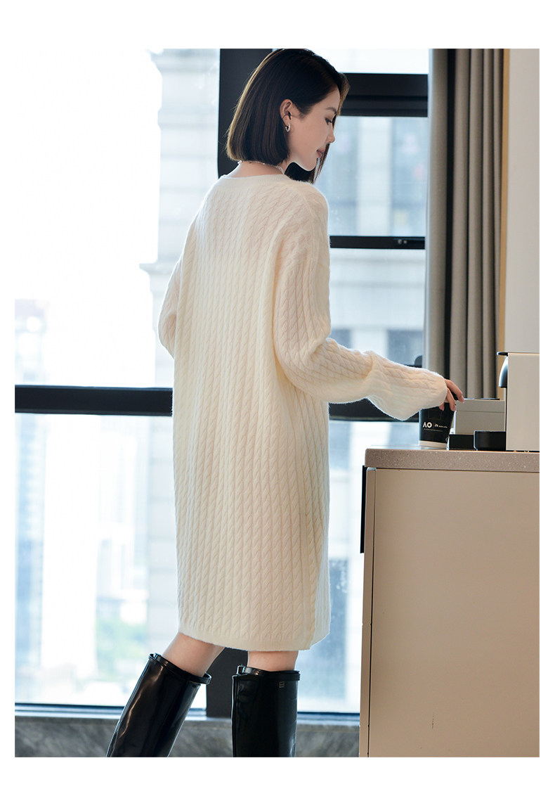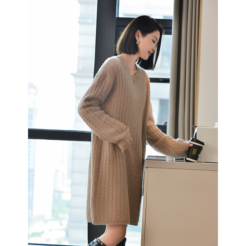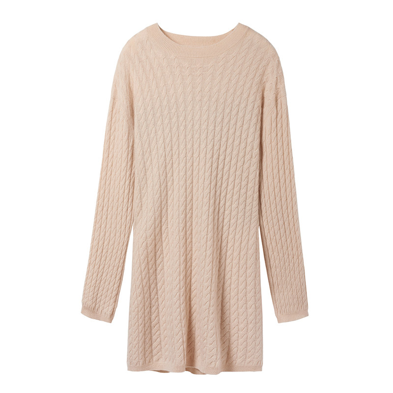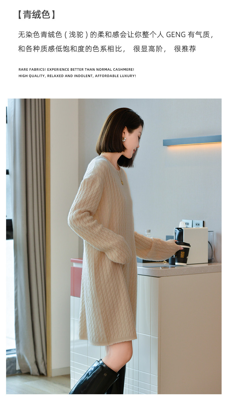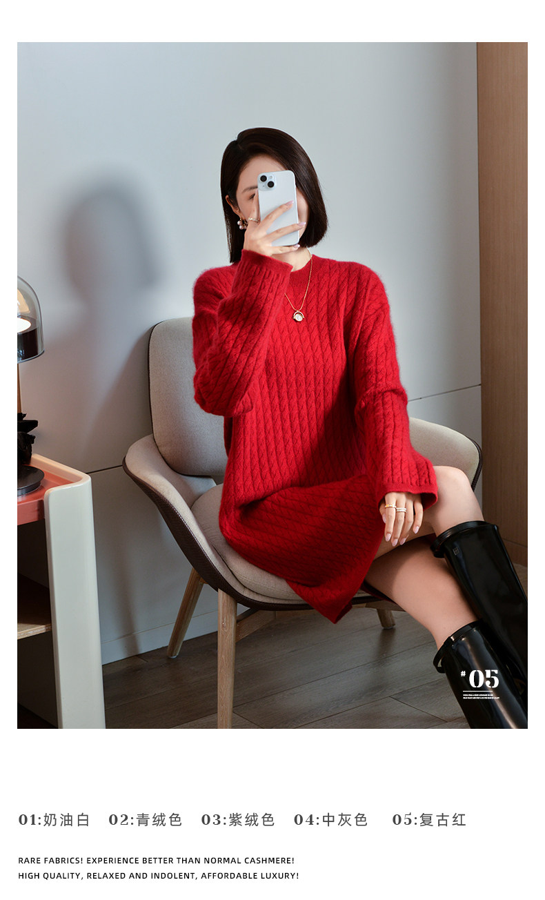 Шерстяное платье с круглым воротником, платье-свитер, кашемировая юбка, увеличенная толщина, яркий броский стиль, свободный крой