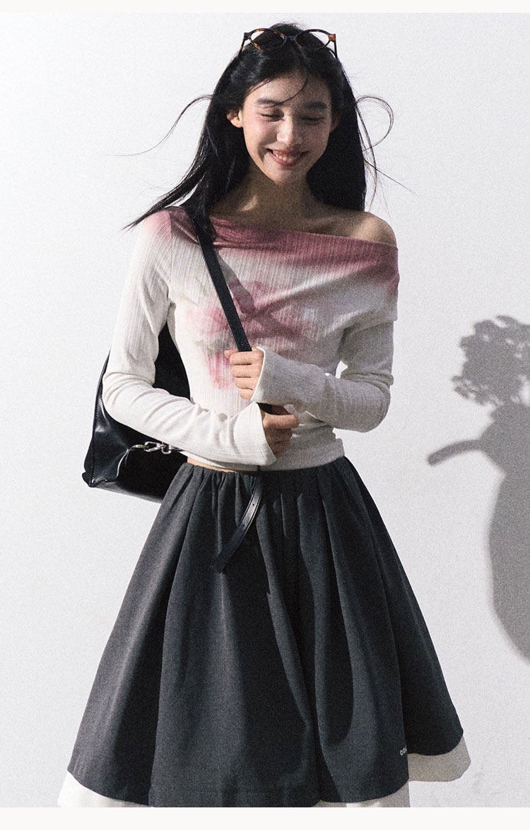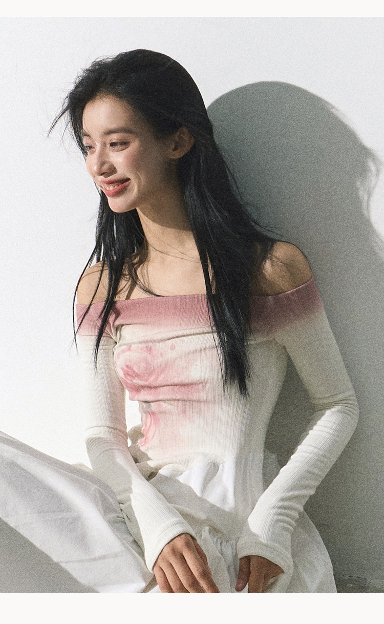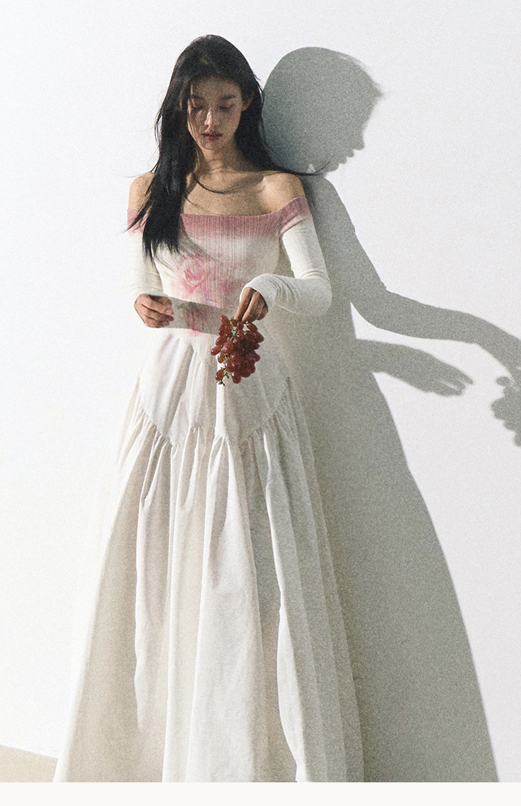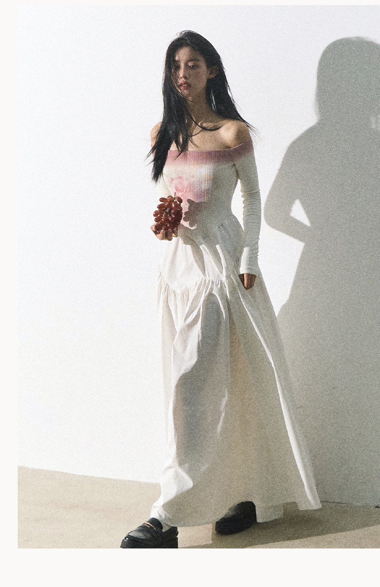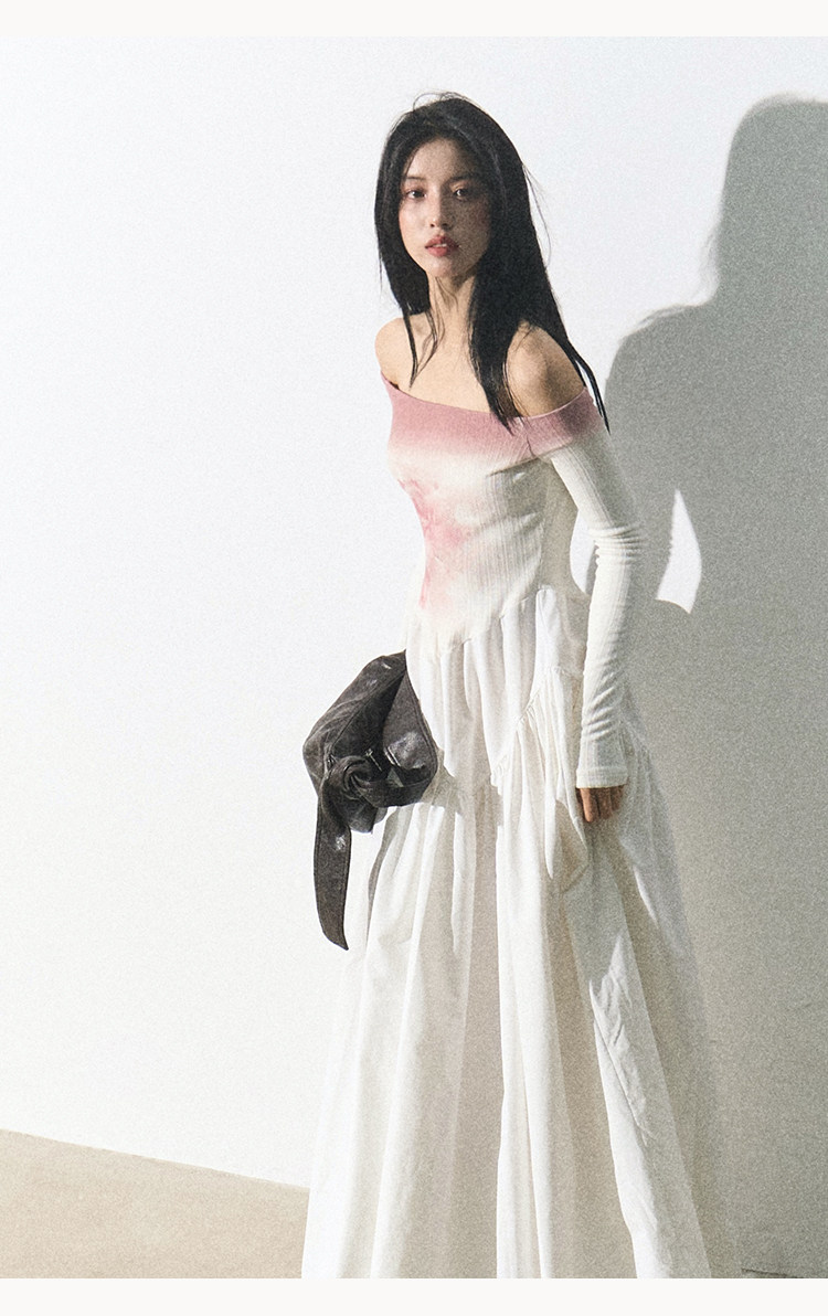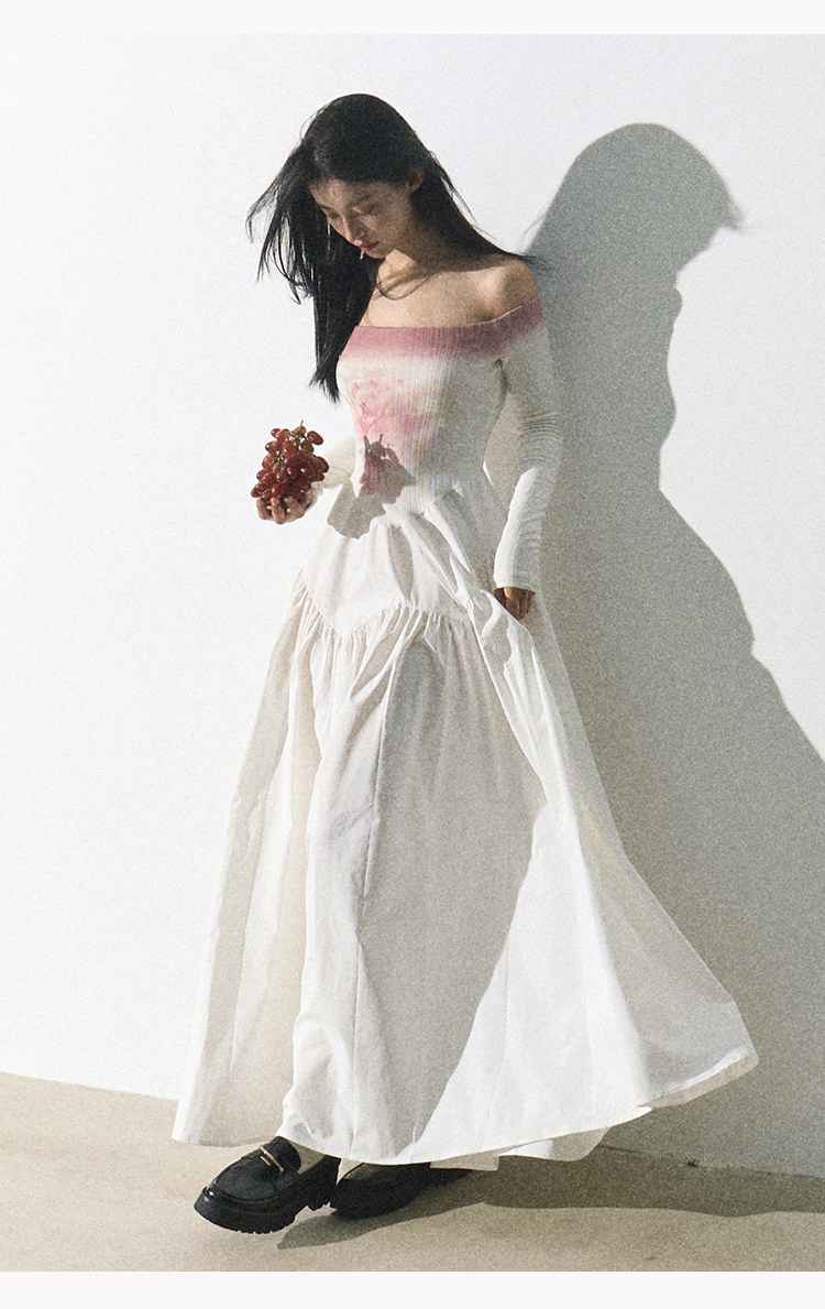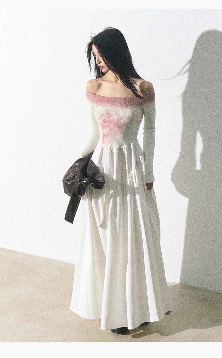 OAKMOO Платье, длинная юбка, открытые плечи, градиент, в цветочек