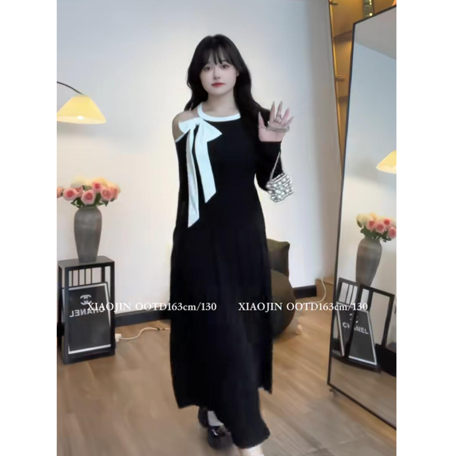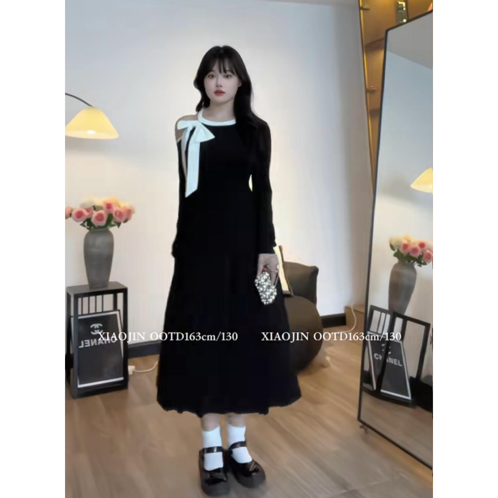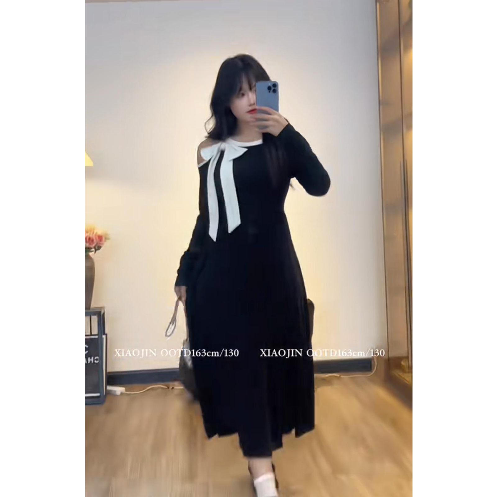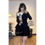 Платье большого размера с французским бантом для женщин осенью и зимой, толстые мм выглядят стройными и прикрывают тело, элегантная и высококачественная юбка-зонтик А-силуэта.