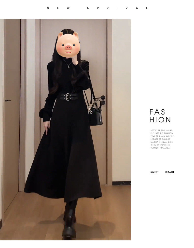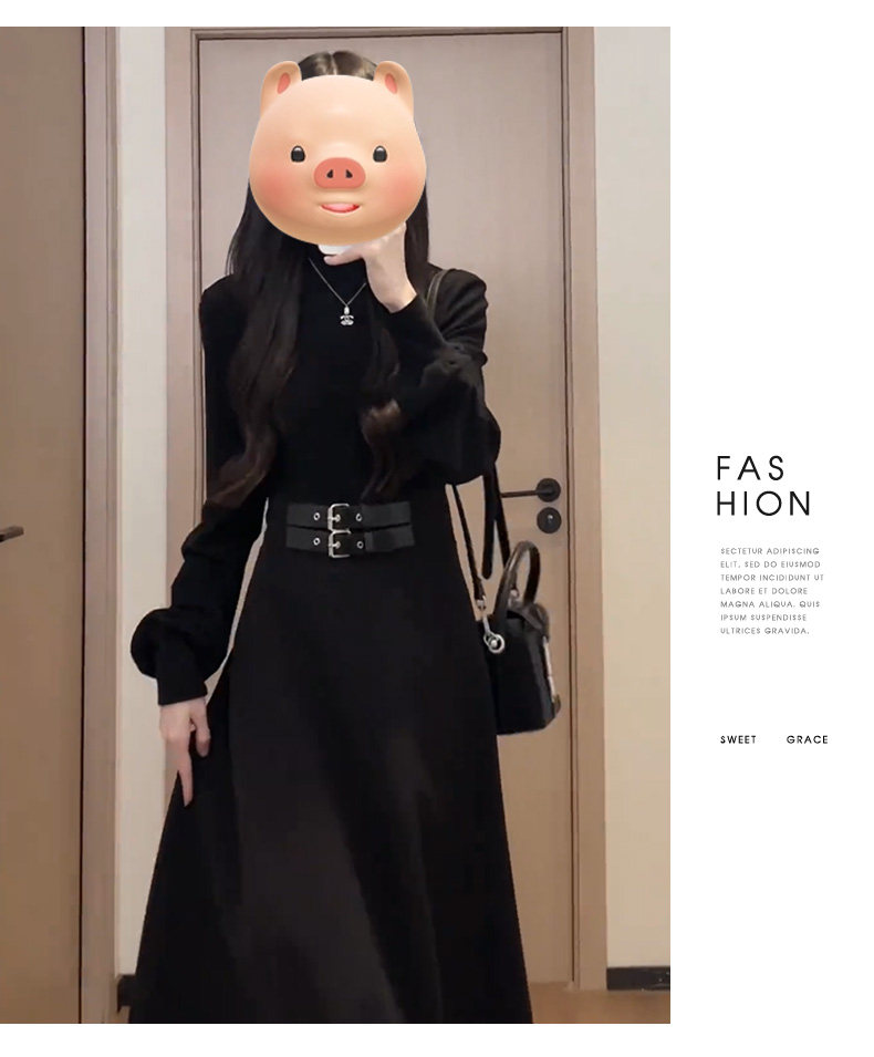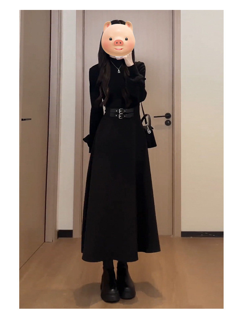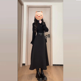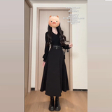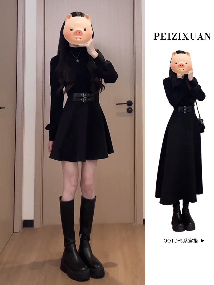 Осеннее черное платье, приталенный пуховик, французский стиль, подходит для подростков