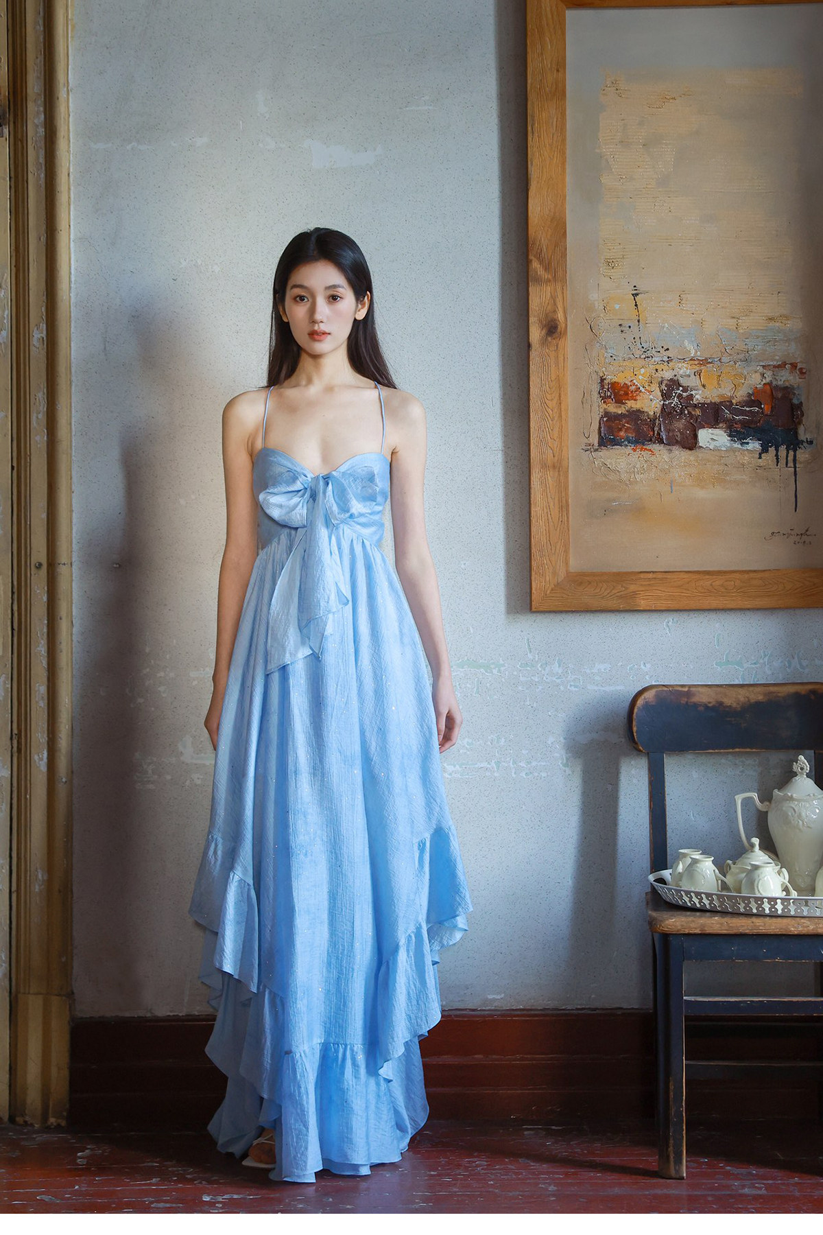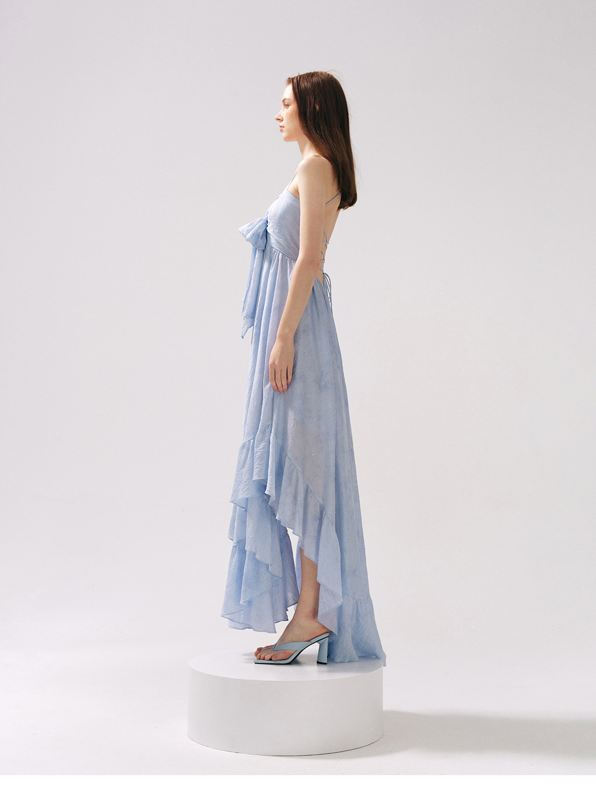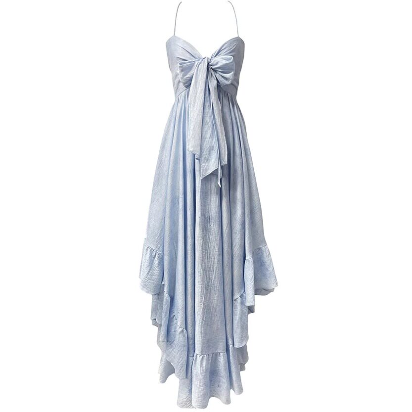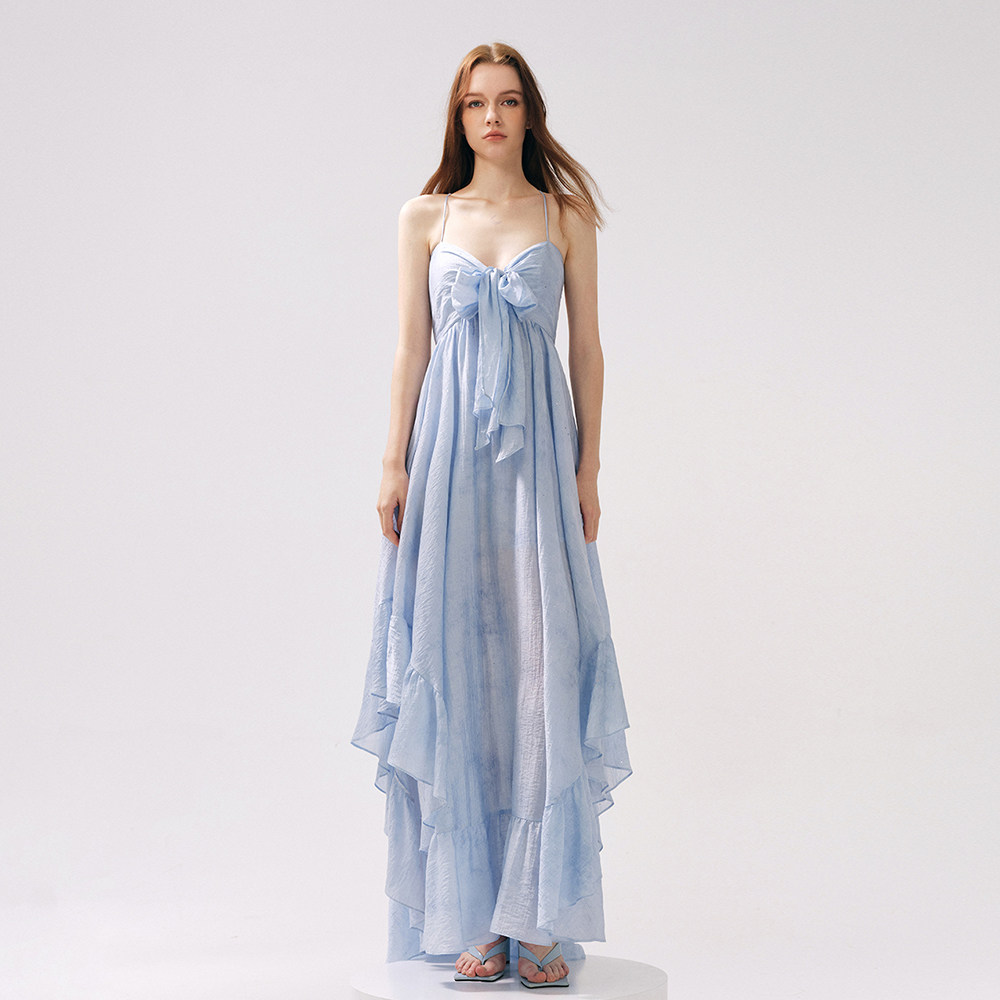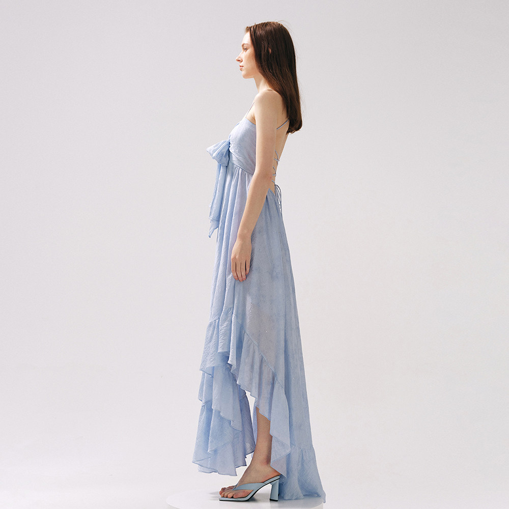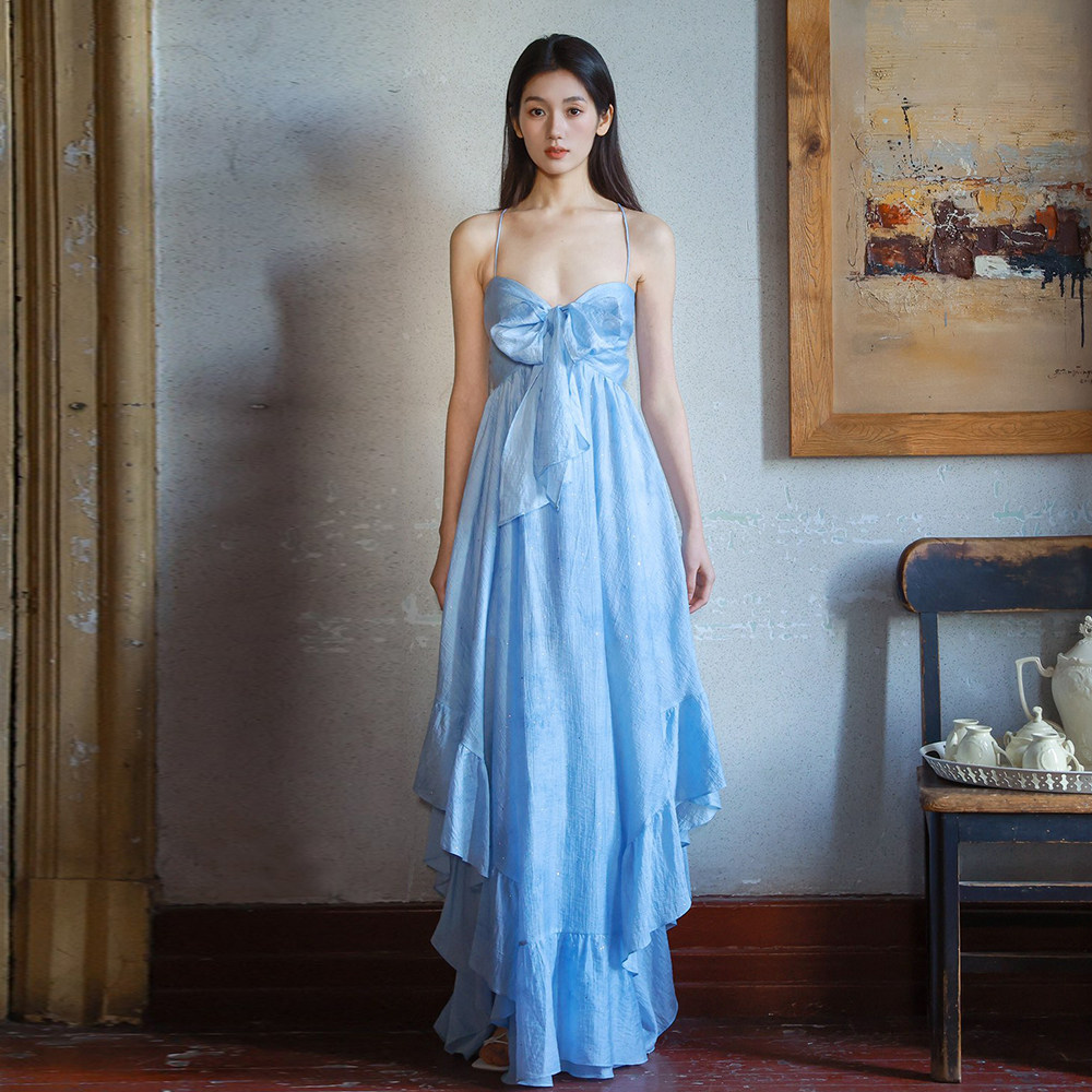 Moodxmiura платье с синим рюшатым галстуком -бабочкой без спинки 25 весенний новый магазин покупателей MISSL