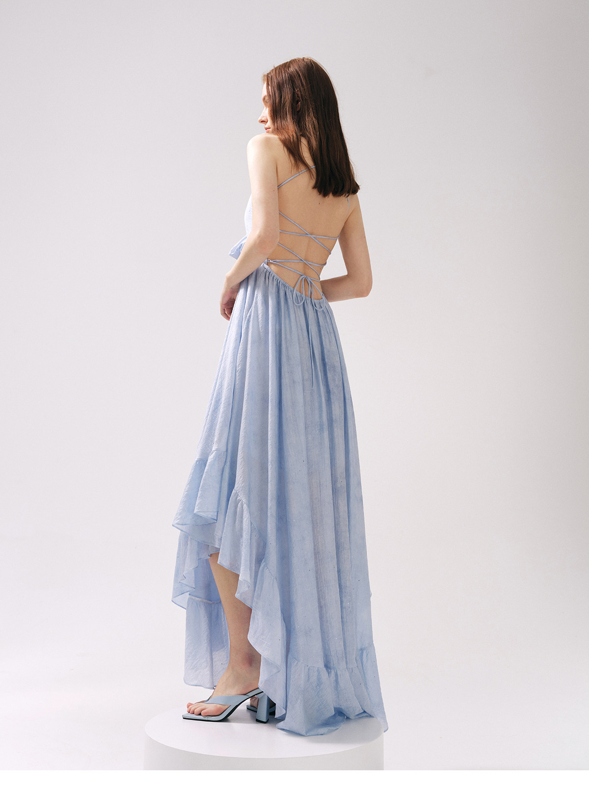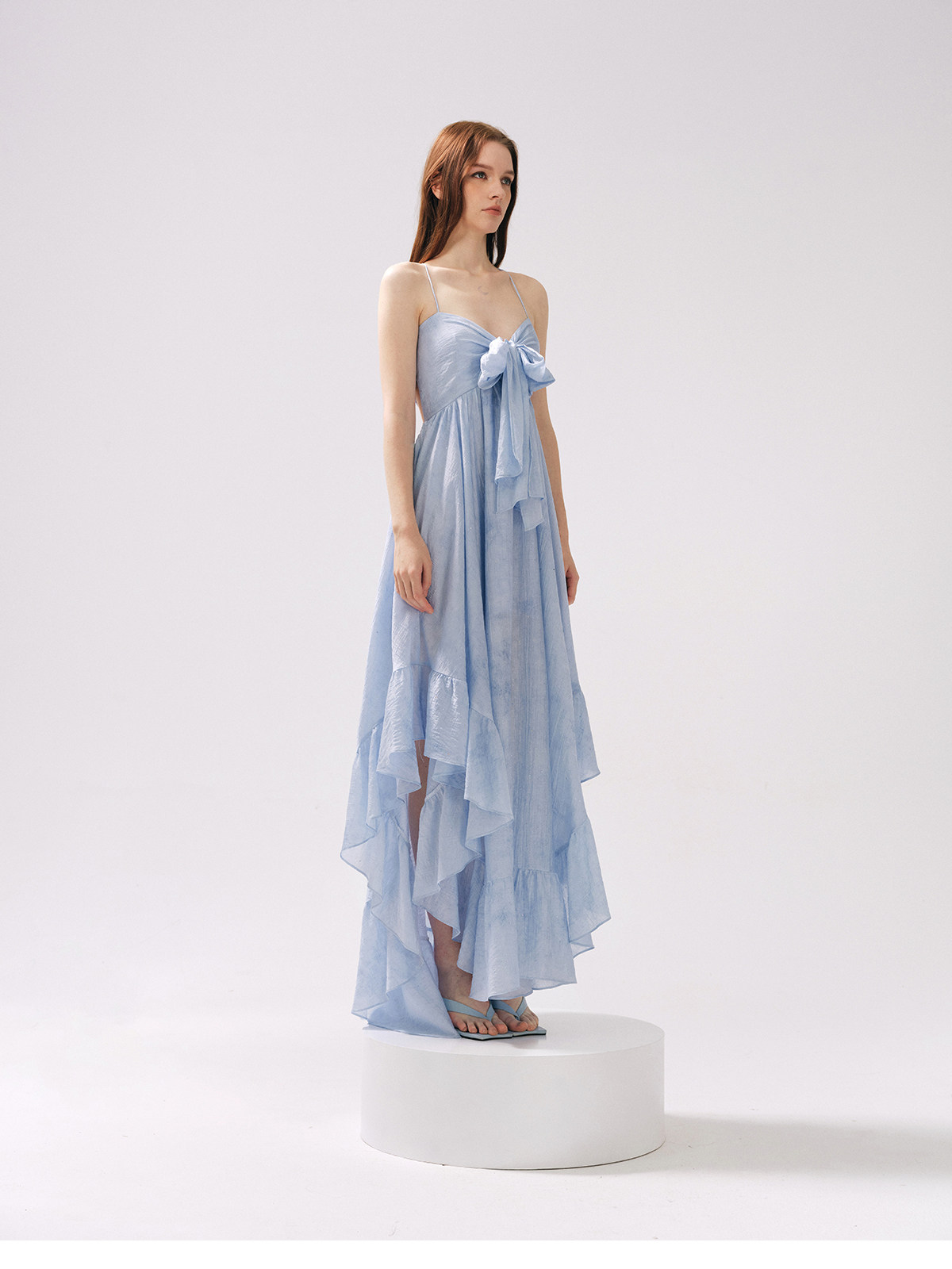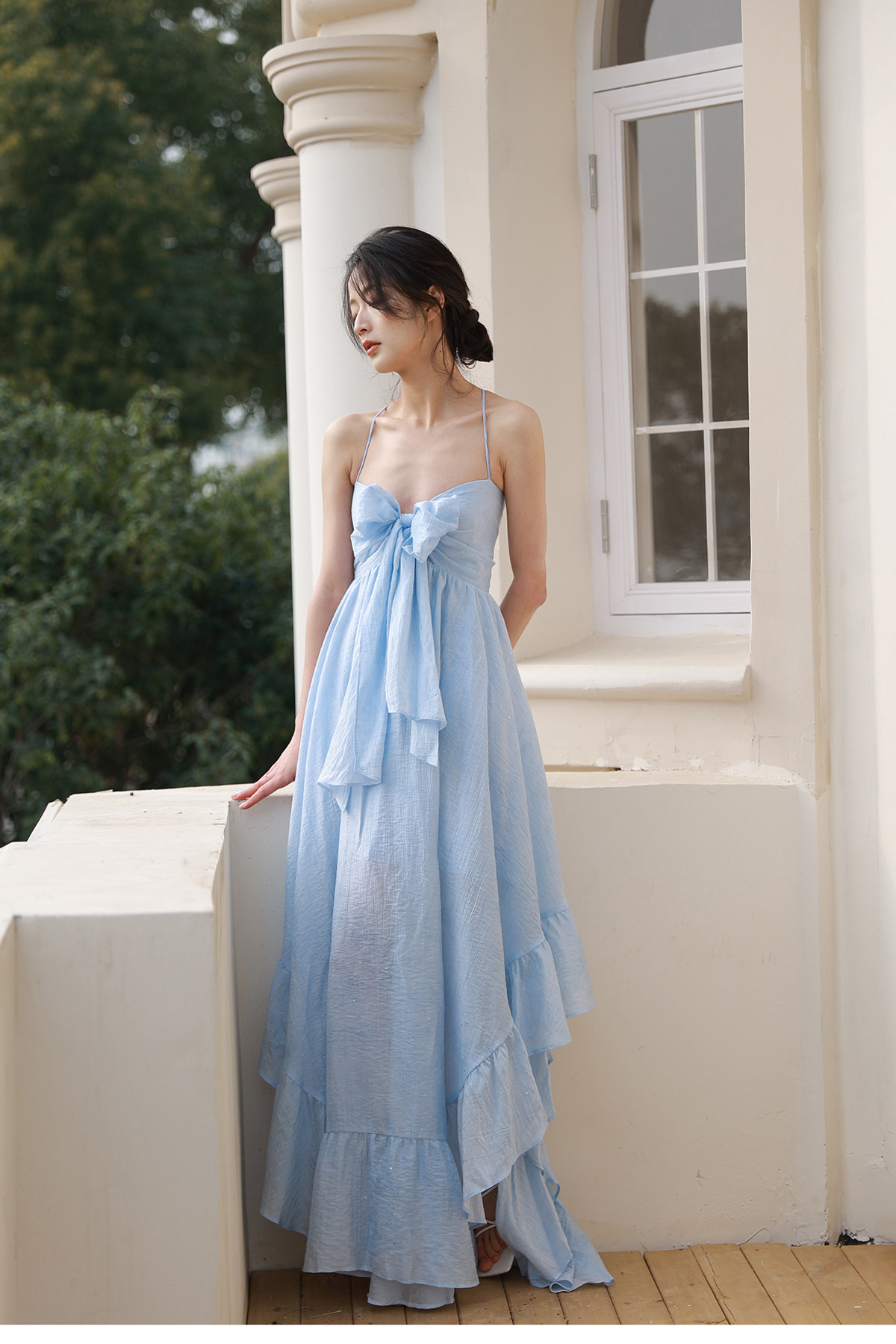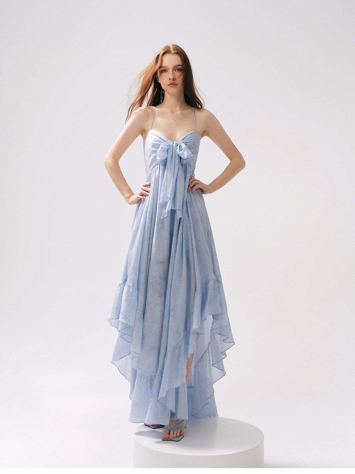Moodxmiura платье с синим рюшатым галстуком -бабочкой без спинки 25 весенний новый магазин покупателей MISSL
